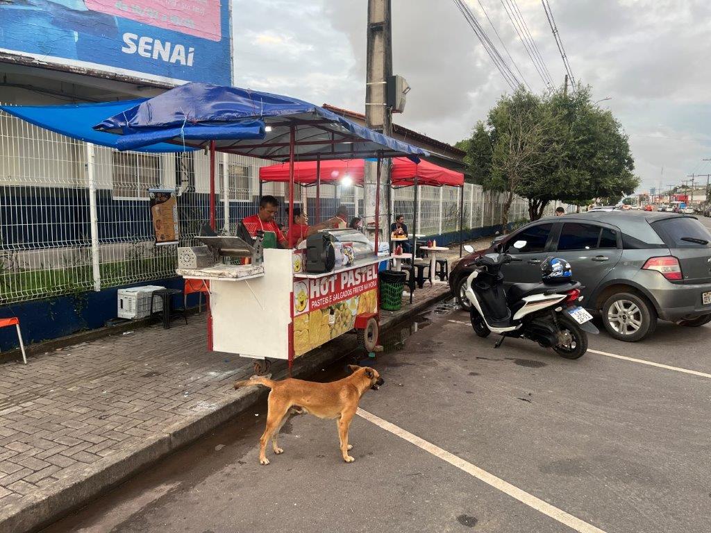 The second night I walked a couple of kilometres to a flash fish restaurant on the shores of the Amazon and had a lovely fish dinner. It was huge and poorly photographed but was delicious and had nice veggies. It was enough food for two people. At nearly $40AUD for dinner and a beer, it was a big night out for me. I compensated by dining in with the fresh hot empanada things for dinner the following night. I was also eating well at the hotel breakfast with lots of fruit and fresh juices. I was a bit short on veggies, but I am in Brazil! Also a pic of an unusual pothole and a usual car stereo system that I passed on the way.