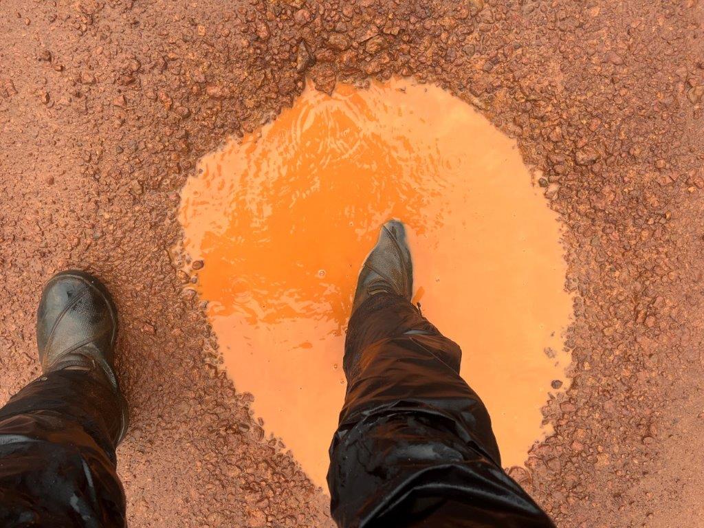 I approached yet another bridge, but it had kinked boards on the first bit with wheel width gaps and a few holes. I was doing about 20kph and made a slight change of direction to avoid a gap, but the board was super slimy and my front wheel just gave way and slid into a gap and dumped me on the bridge. I was pinned under the bike by my right leg, and it was facing backwards. Probably being pinned saved me from getting dumped over the edge of the bridge into the river. I was able to spin my body around to face the same direction as my leg and just lied there for a minute. It gave me a fright, but I felt okay and nothing seemed damaged. The bike had shut itself off.