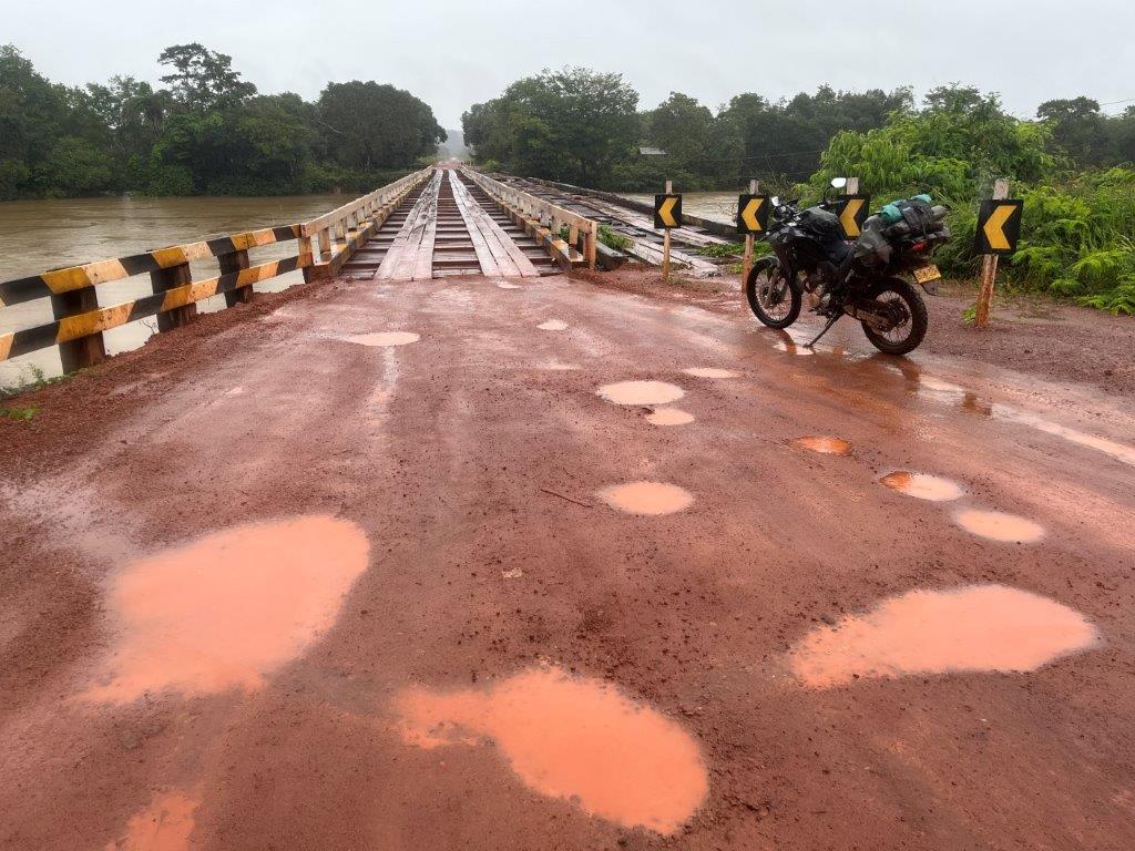It rained a lot in Macapa and I was ready to leave. The next leg was nearly 600kms and took me to the most northerly coastal/river town in Brazil, Oiapoque. Sorry spellcheck. That is the correct spelling. This road was mostly reasonable bitumen with lots of tree plantations but had that bloody 110kms of unpaved/roadworks stuff happening in the middle. I really don’t need that sort of stuff on a long day. And it was raining. On and off all day. I left around 7:00am and made good time for the first 350kms until I got near the crappy bit. It was bucketing down so I stopped at a little roadside restaurant hut thing and had a reasonable feed. I didn’t want to slip off the road in the mud somewhere and lay there for days feeling hungry until someone found me.