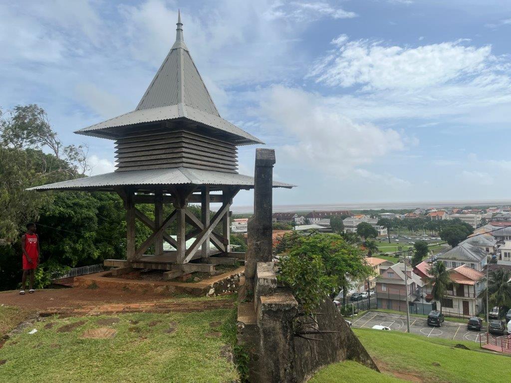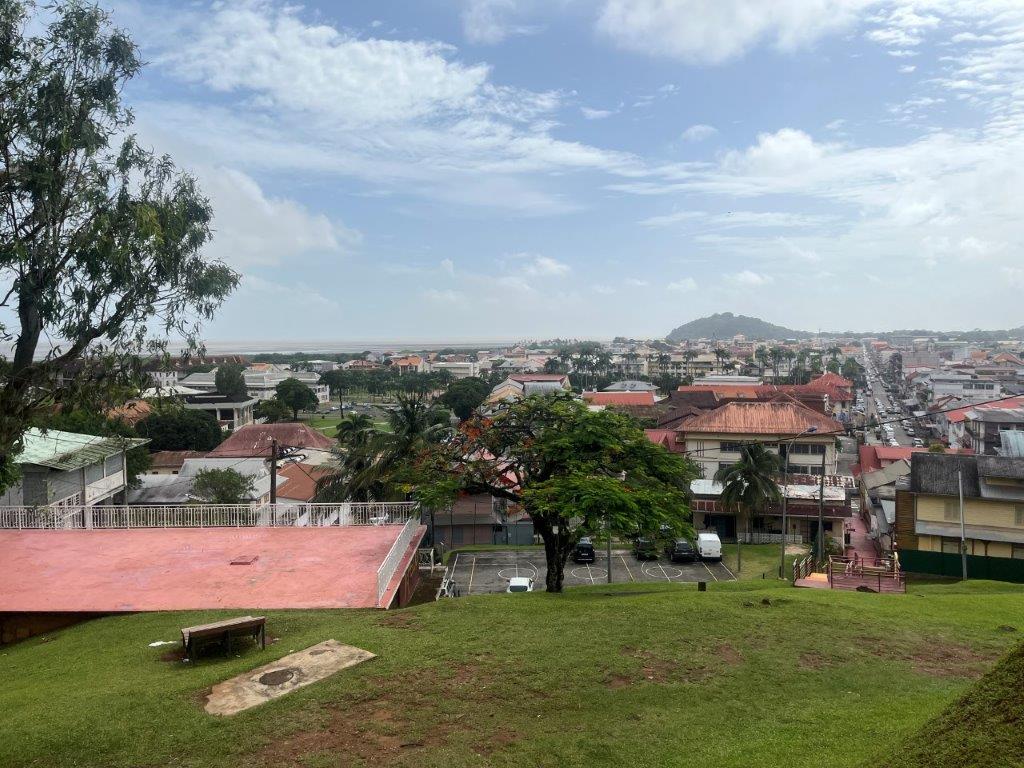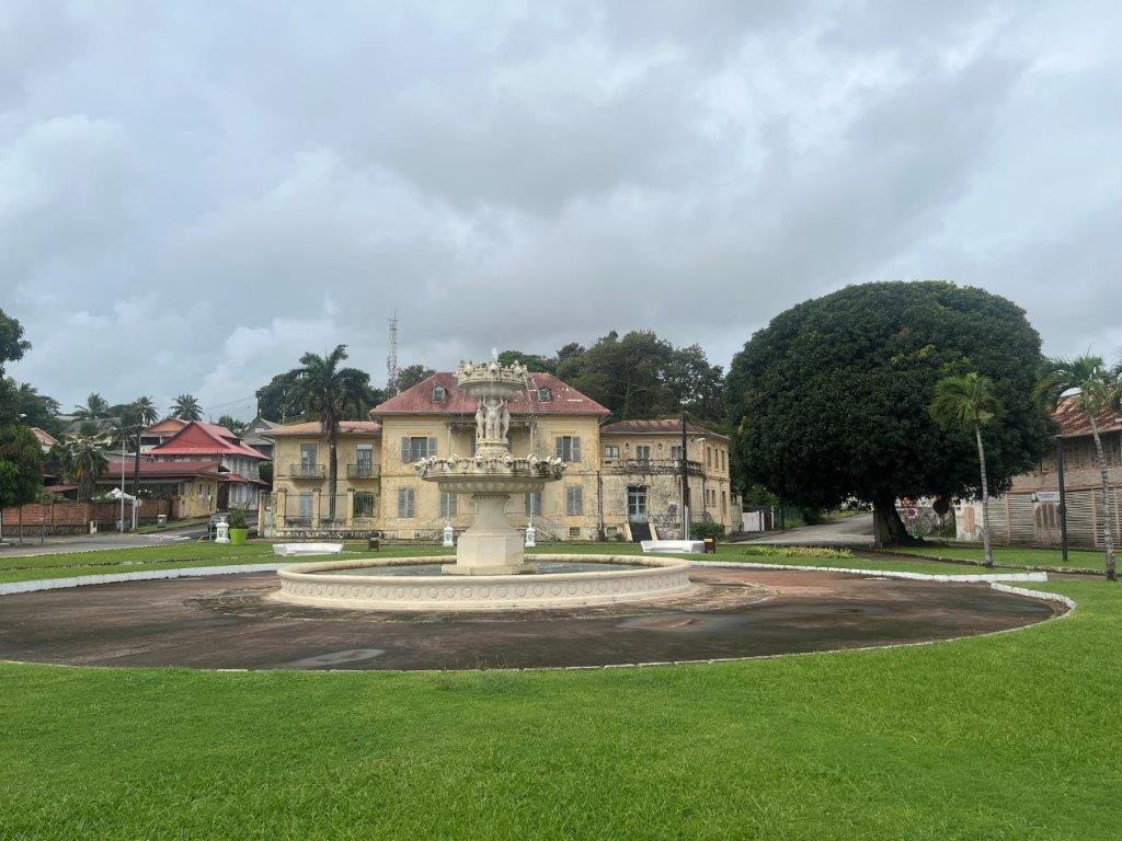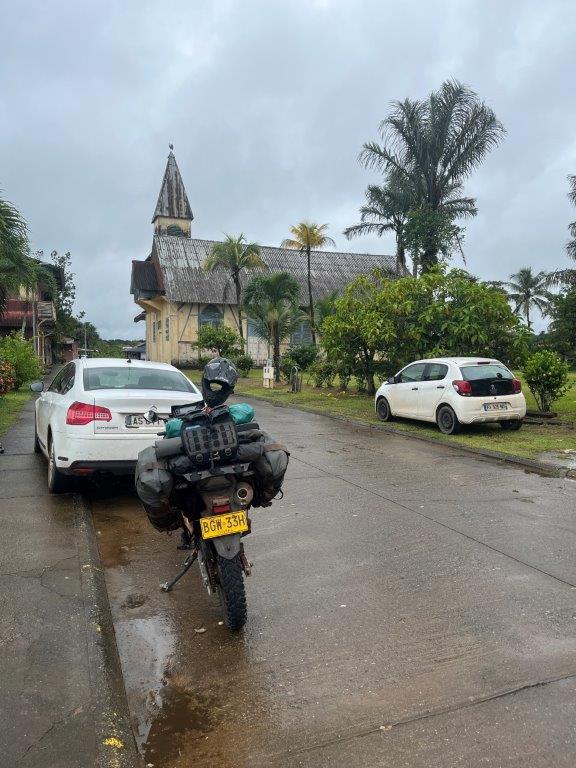 The ride to Cayenne the capital of French Guiana was only 200kms and went through some nice jungle on good roads. For some reason they leave all the car wrecks on the side of the road. I’m not sure if it is a reminder or a memorial but there were lots of them. I stopped in at a little town to have a break and get a drink and an ice cream. Interesting little place on a river with a nice old church and a regional French feel about it. There seemed to be only one shop and there were several little groups sitting outside the shop or across the road in the park, enjoying early afternoon drinks. I ate my ice cream with an old guy who spoke a little bit of English. I’m sure he was angling for me to buy him a beer.
