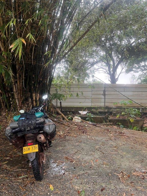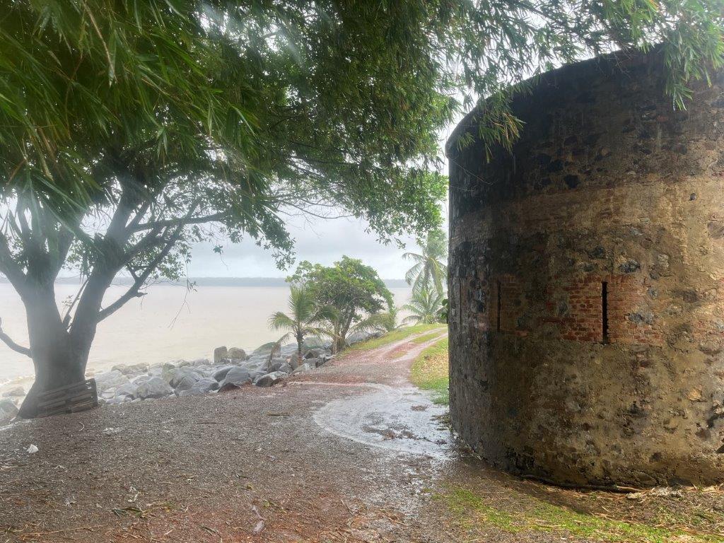 245 kilometres. 3 hours and 5 minutes. According to Google Maps. Rain all the way according to the weather app. Both turned out correct. There was fort thingy on the side of the road on the outskirts of Cayenne. It was small but cool and made me think more about what it would have been like being around the area in the era of slavery and colonisation in these terrible conditions. It was closed and there was no one around so I didn’t bother getting off my bike. I just rode it around the ruins instead of walking.