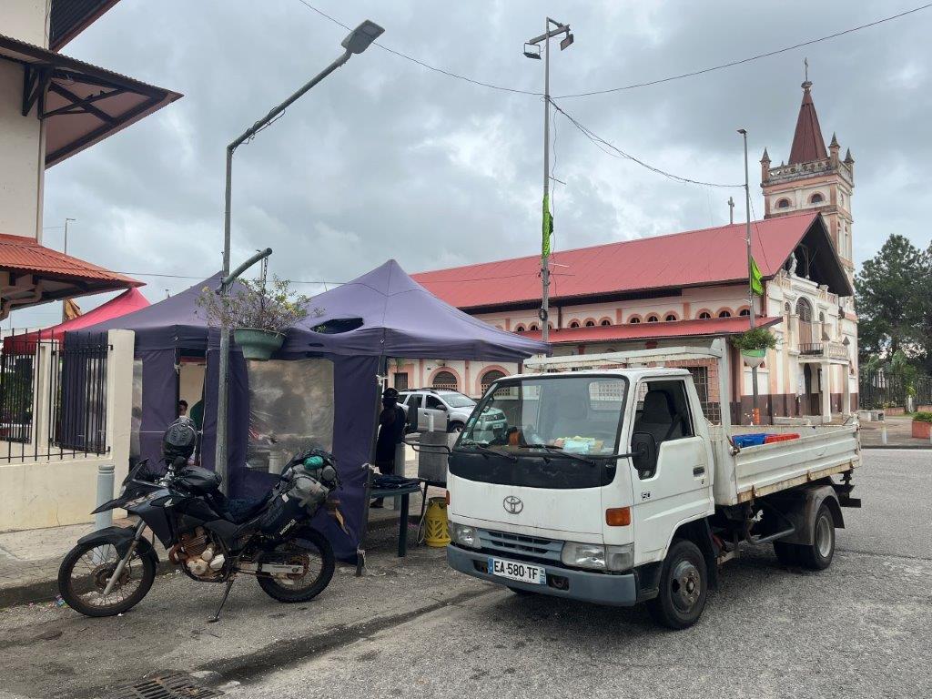 I then got back through the crowd outside the bank, past security and got my ticket to pay the fee. After that I went back to the office for more paperwork and an online form thingy and after only 2 hours I had my insurance paper for the bike and was free to go back to the immigration office. Once I got back there I tried to get my bike into Suriname but turns out you need to have a bike to show them. And pointing at it across the river wasn’t going to cut it. So I found another little boat and went back to French Guiana without checking out of Suriname and without checking back into FG. And I was hungry.