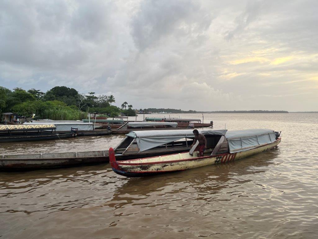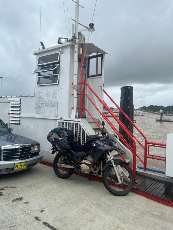 I asked if I could leave my bike in the ferry terminal and go over in the small boat and do all my paperwork to get into Suriname and then come back to FG and catch the afternoon ferry with my bike. This was done with me speaking Spanish to another person who then translated it into French. What could go wrong. They said it was fine and stamped me out of FG and I jumped in the next available boat. It was about $10. And he said he would wait for me. I tried to explain I would be a long time? Anyway I crossed the river and went to immigration. They checked my tourist card and stamped me in to Suriname. And then it got complicated.