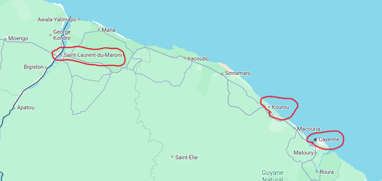 SLdM is a smallish border town of 50,000 people and it is located on the Maroni River about 30 kms upstream from the ocean. The river is quite wide and serves as the border between FG and Suriname. There is no bridges and the only way to cross is by ferry, and finding out information about ferry times seemed difficult online.