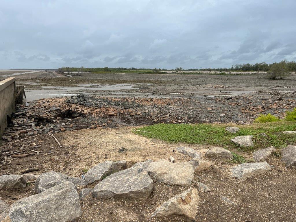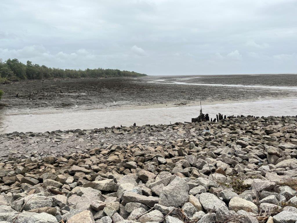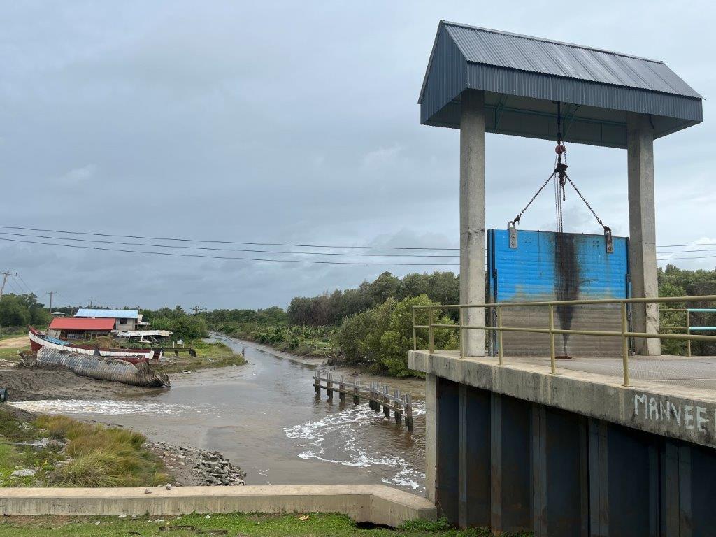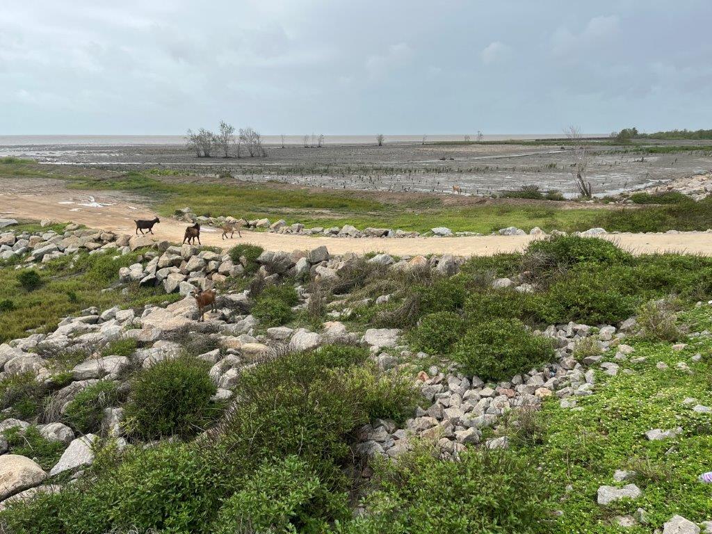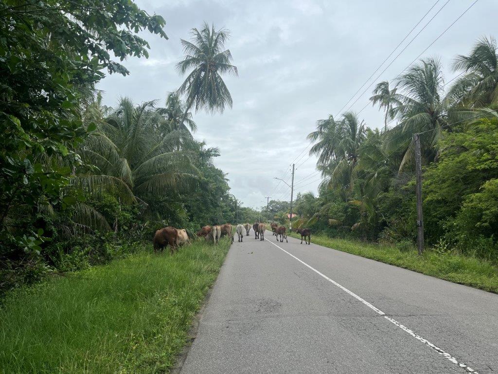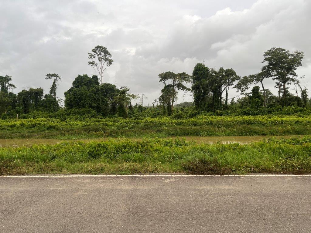 It was a nice ride, and I stayed dry. Lots of jungle and river crossings. I found it interesting how the vines were trying to reclaim the road signs. And some cows. No jungle wildlife. I could see from the map that I was following along the Caribbean coastline and thought it was strange that there were no towns on the coast. I saw a crappy dirt road heading north and only a few kilometres long and so I went for a ride. The joy of having a good off rode bike. There were a few scattered dwellings and a canal and some fishermen and boats but it didn’t take me long to see why there were no towns along the Suriname Caribbean coastline.
