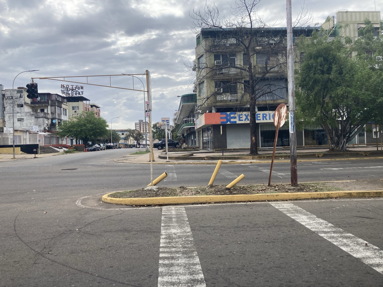 I was hit by a bus in a big intersection! I should have seen it earlier and rode accordingly. The hotel was in sight, and I had mentally but not physically arrived there. I still have strong visions of slamming into the car. It wasn’t pleasant. I went back and checked it out in the daylight. I’m obviously not the first to have an accident there. I don’t know how I didn’t end up hitting one of those bollards. I was in Porto Ordaz which is about 800kms north of where I entered the country from Brazil.