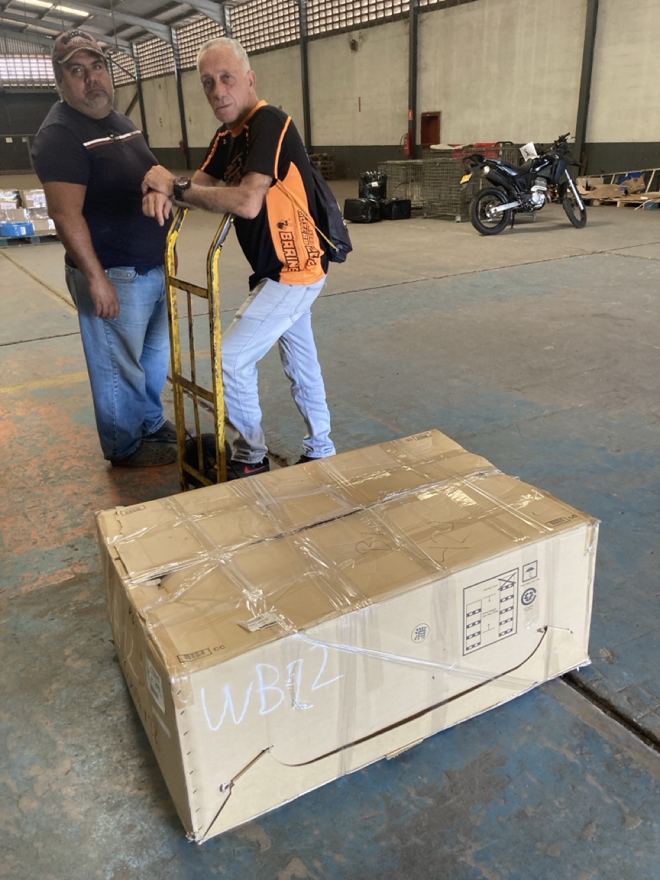 Next day was a bit confusing. We had to go to the freight centre to get the bike and my gear. We went there in a cool old car and after a brief discussion and a phone call and inspection, I was allowed take the bike. It had all arrived intact and the son or grandson drove it back to the workshop.