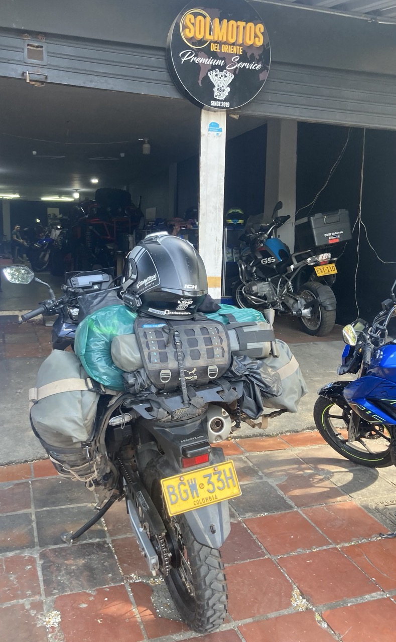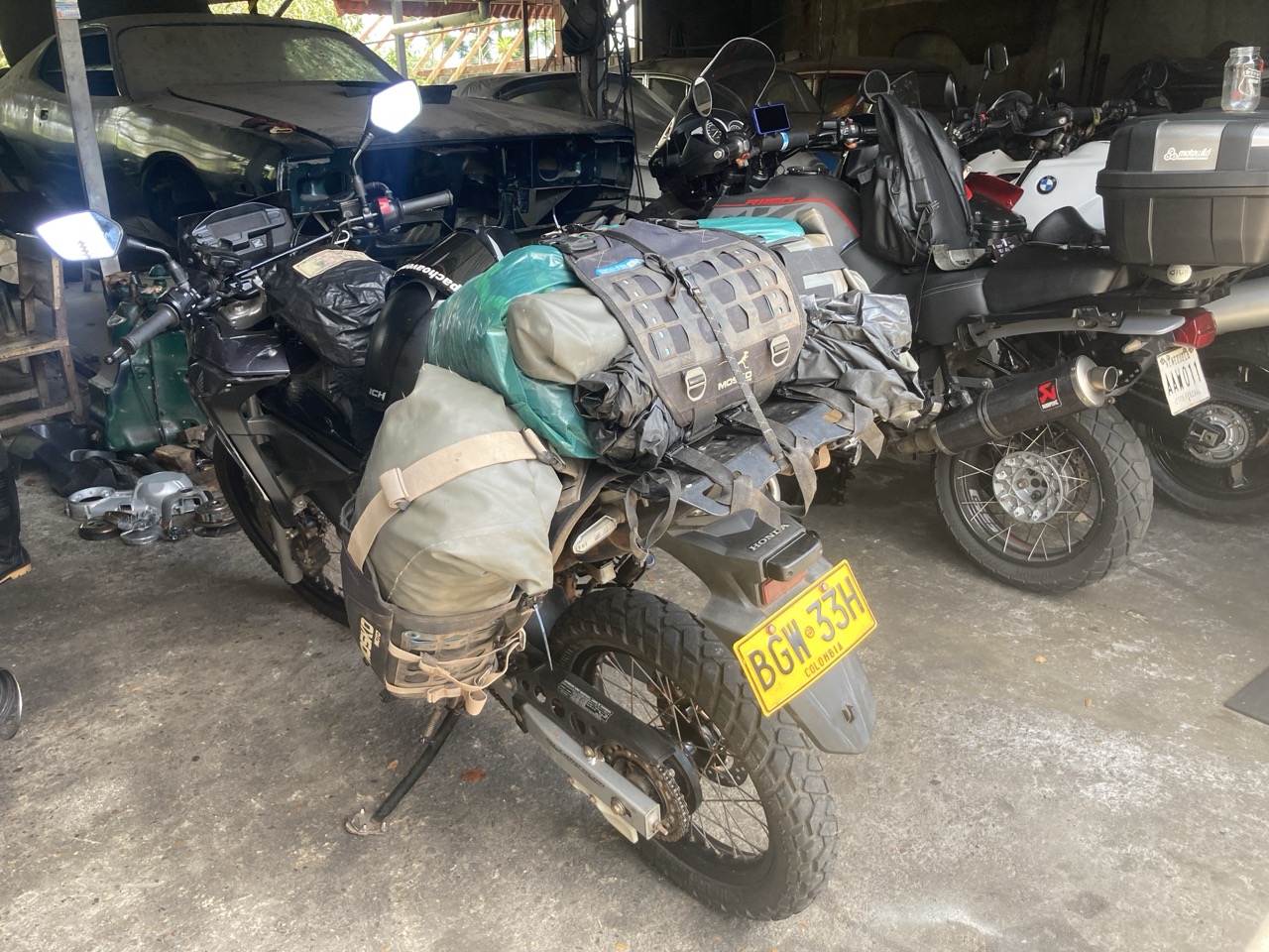 It was no problem exiting and then I had to check in on the Colombian side. It was easy. And the best part was that because my bike is Colombian it didn’t have to do all the temporary import stuff I normally have to do at borders. From there we drove to yet another contact from the WhatsApp group. It was a motorbike workshop, and he was going to look after my bike and fix a few things, ready for my return. The owner wasn’t there but we left the bike with one of the guys and then the rider jumped in the taxi with us and we all went to the airport so I could book a flight out.