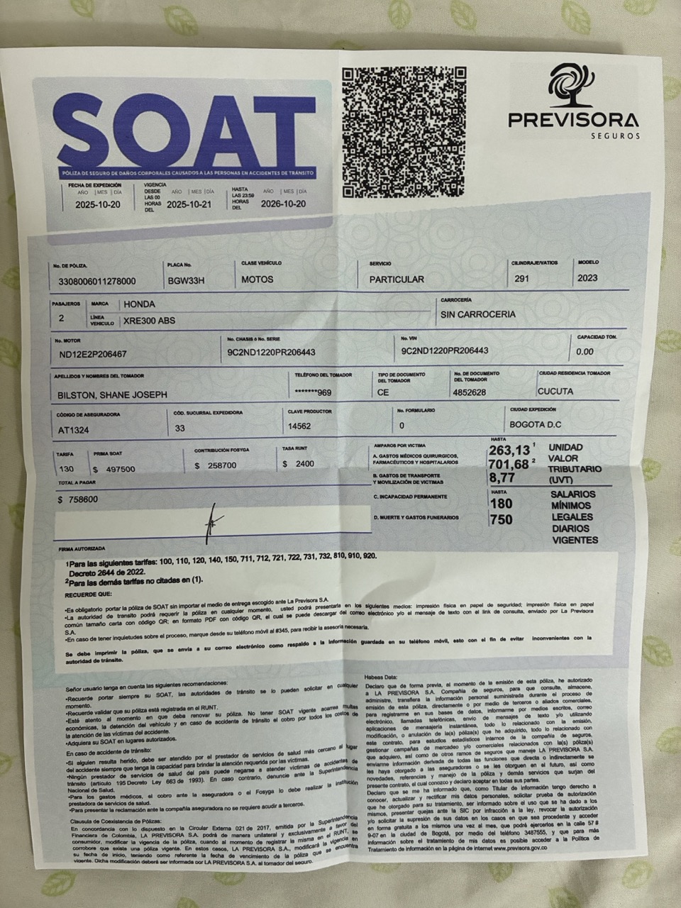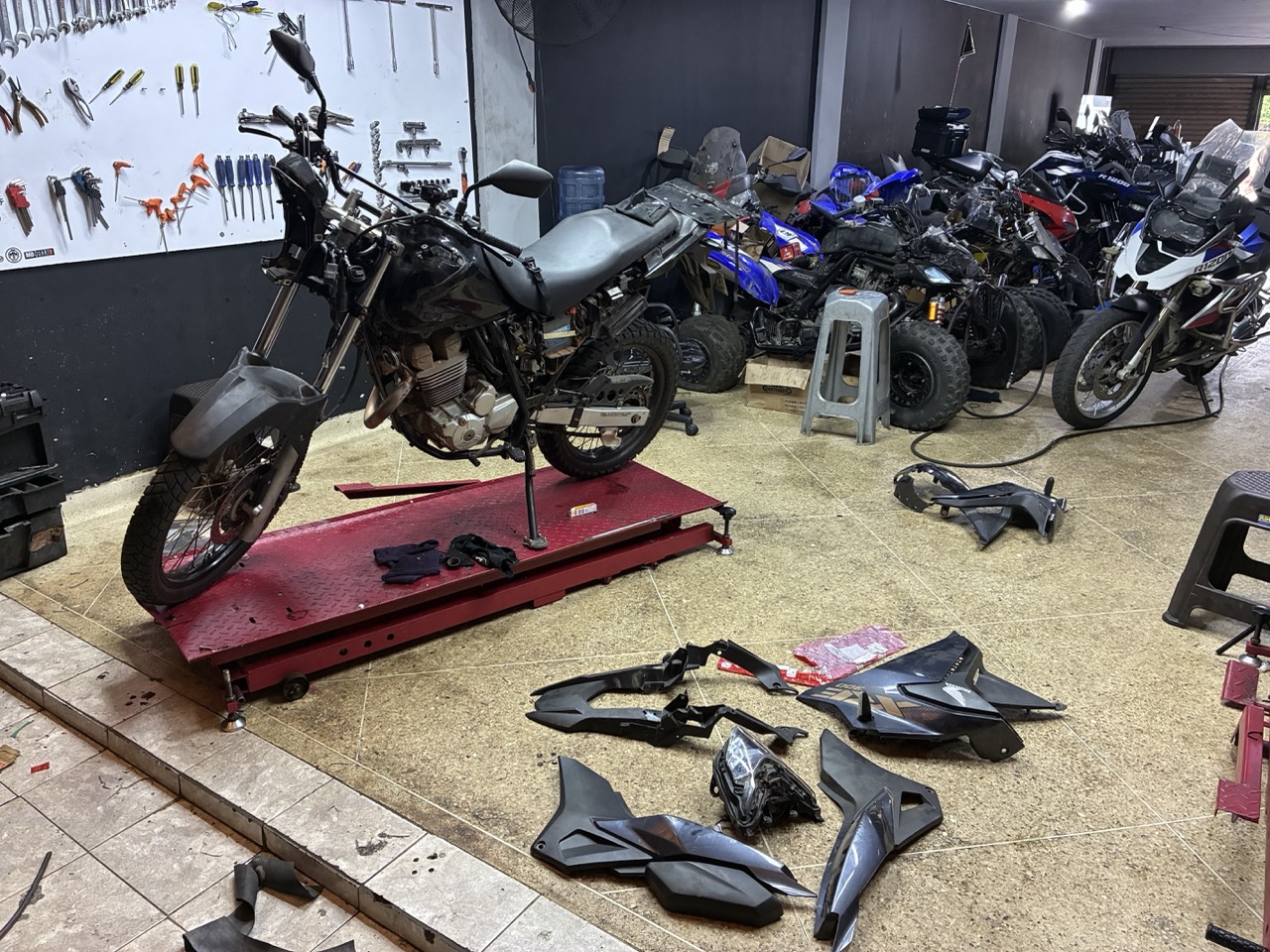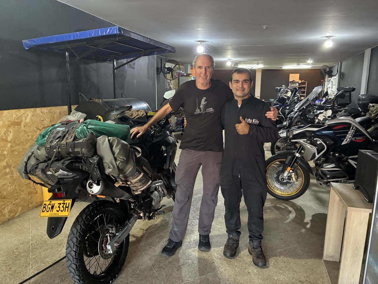 I found the bikeshop and it was a bit emotional seeing my bike again. It was stripped down with all the plastics on the floor next to it. The mechanic and his sons were lovely guys but only spoke Spanish. At first I thought nothing had been done to the bike and then he said it would take 12 days once I paid him. Turns out he had straightened the left front fork which had received a slight bow in the accident. He was very proud of his repair job and showed me lots of photos of it being straightened. He also had to reweld a couple of lugs that held the plastics on. But he hadn’t ordered the new plastics yet as they were 1.5 million pesos ($600AUD) and was waiting for the money to order them. Fair enough. After a bit of a discussion we were able to organise that I would go and get the money and he would order the parts and then put the damaged plastics back on with clips, tape, and cable ties and I could leave Colombia and then on my way back through in 6 weeks I would go in and swap out the old plastics for the new ones. Great plan. But nothing is ever that simple.