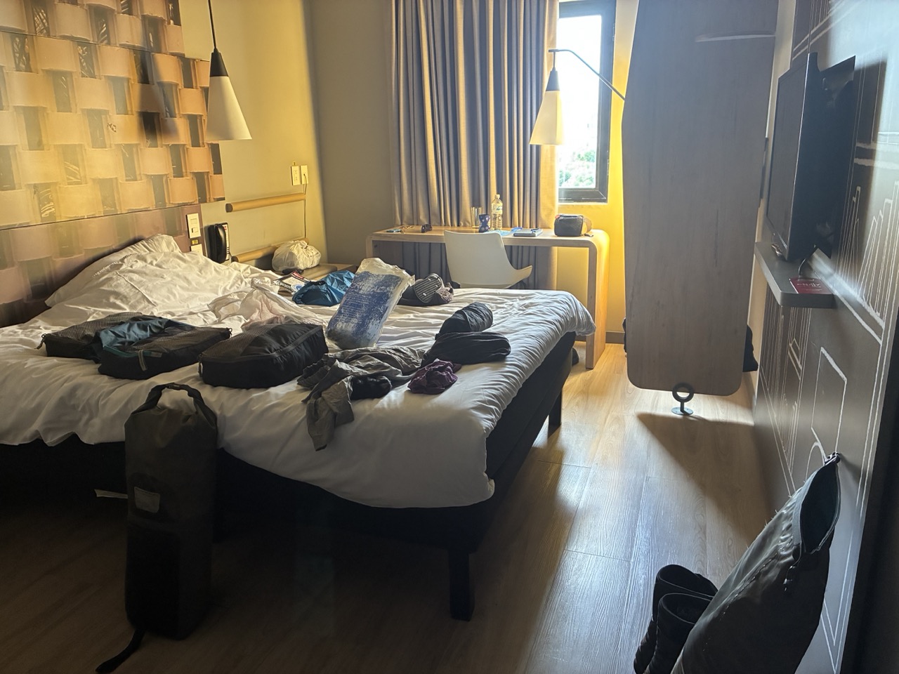 And then I saw an Ibis Hotel. They were my favourite mid price luxury hotel chain in South America. I had to queue behind the hordes checking in and when I got to the desk with my fingers and legs crossed they told me they were booked out. I stepped back from the counter to think what to do and then the lady came over and told me that someone just phoned and cancelled, and I could have their room. She said it was expensive. But in my predicament, $120AUD sounded a bargain. And it was ready to go.