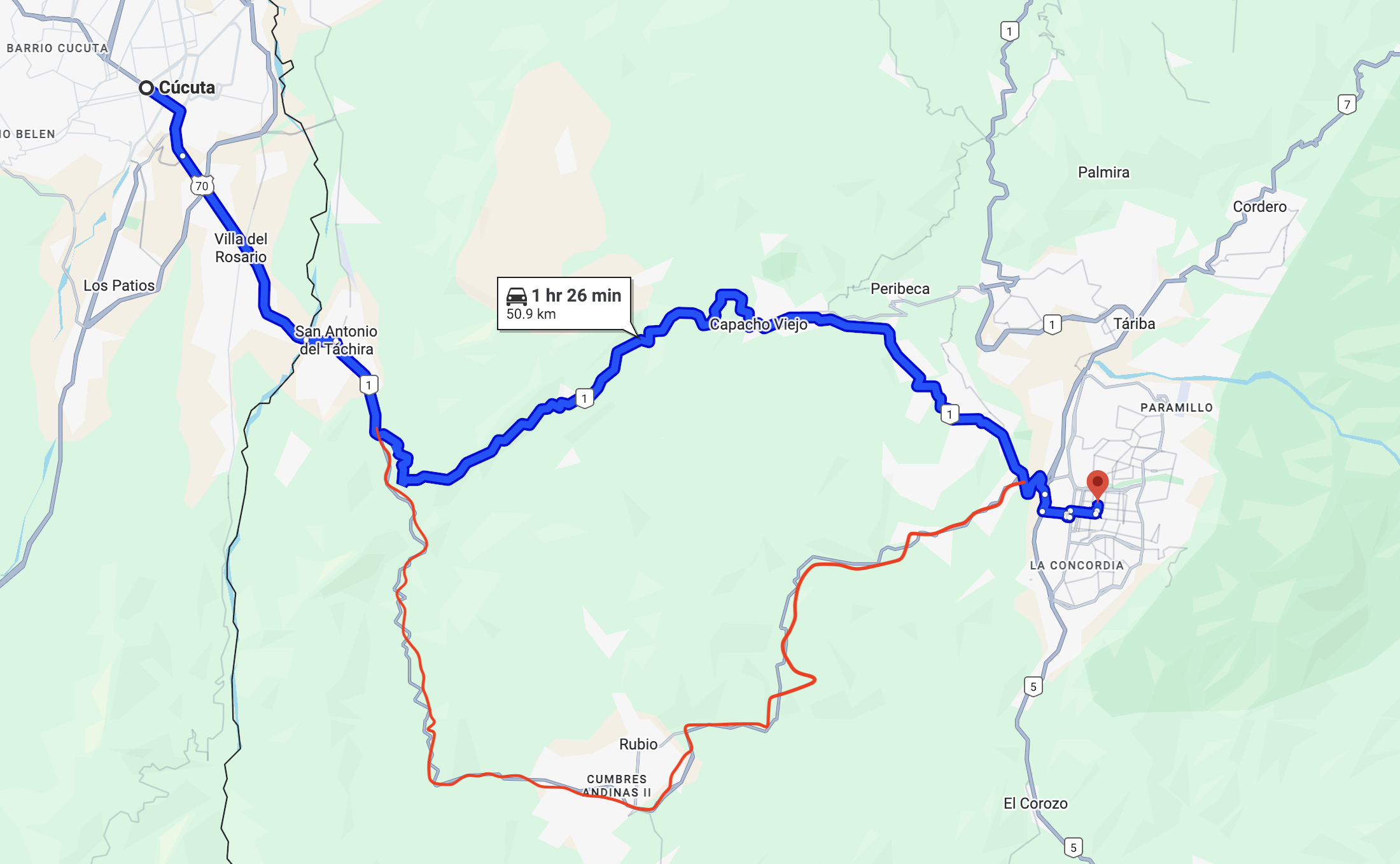 I saw a nice little hamburger cart and so I had a burger and coke and a chat to the friendly young lady working there. They accepted Colombian pesos which was good as I still had a few hundred dollars worth of them. San Cristobal also accepted pesos. I enjoyed my burger, got my fuel and headed back to the hotel. I put the fuel in my room which was a mistake as it had no ventilation so it then spent the night out next to my bike in the car park. The aircon here was also only on or off. I had a cold shower, not that I had a choice and then climbed into bed, grateful that I was on my way and I had a ten litre tank of fuel. Hopefully tomorrow would go a bit more to plan.