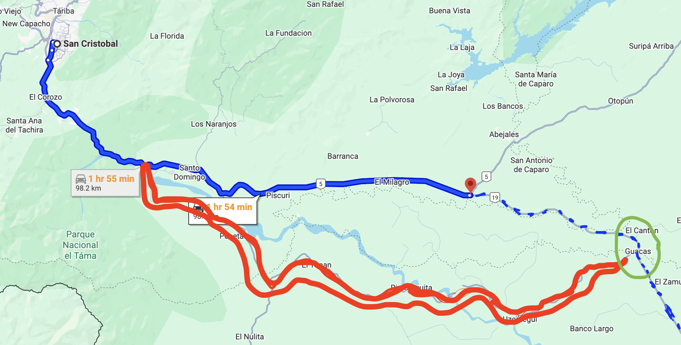 San Cristobal is set amongst hills and probably get a lot of rain. My plan is to ride across the southern part of Venezuela about 1700kms to get back to the city of Porto Ordaz, where I had my accident and continue on my trip from there. I was hoping to get about 300kms a day if my shoulder and butt were up to it. We had discussed the route and google kept redirecting me to other roads and saying that a particular bridge was closed. My local friend assured me that the bridge was open so I just believed it was. My plan was to ride to Guasdualito about 265kms and 6 hours and maybe a closed bridge.
