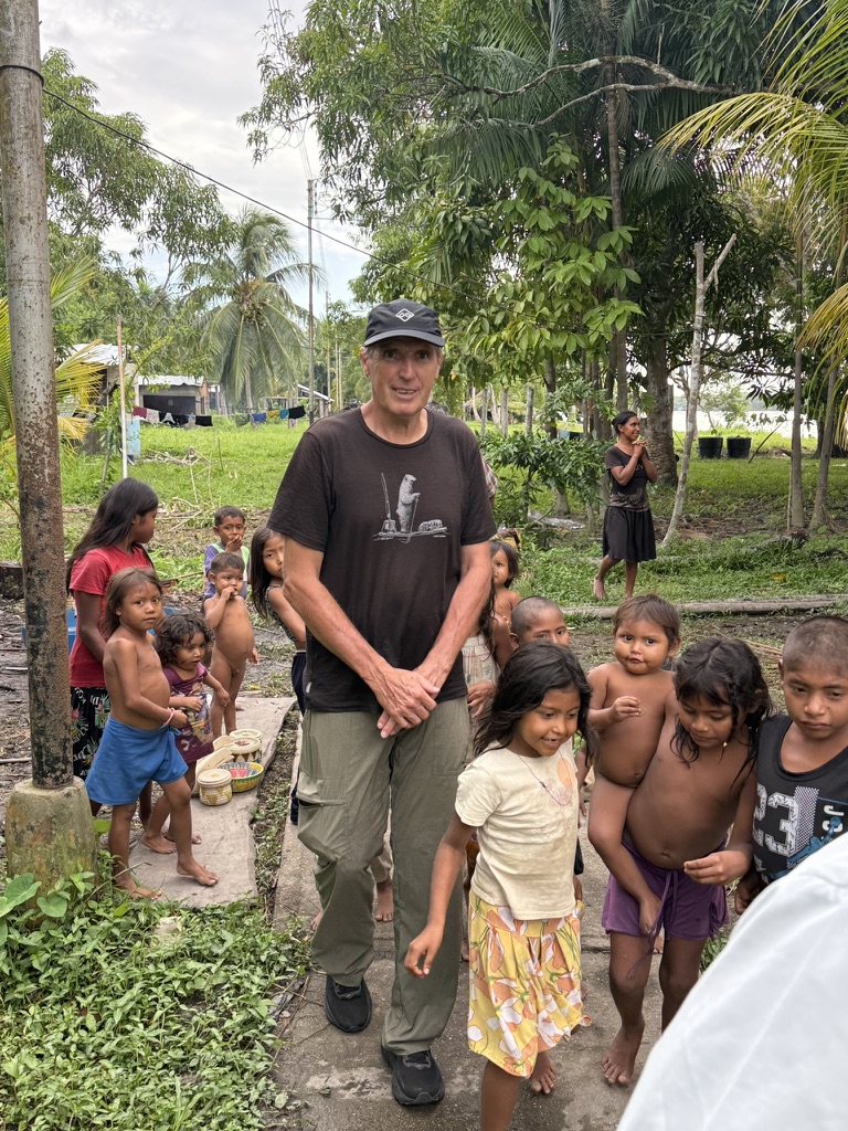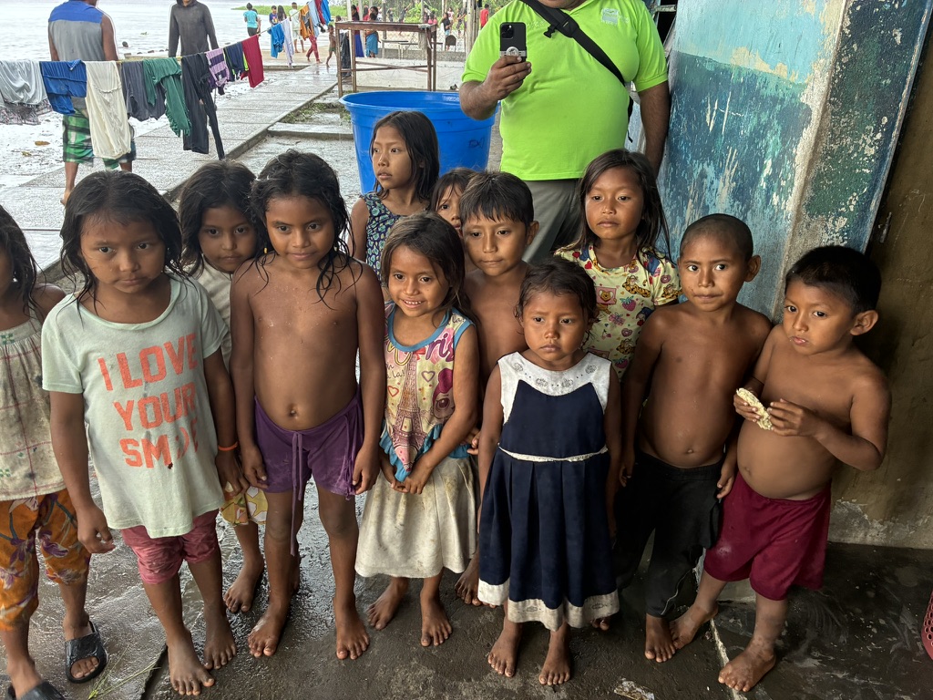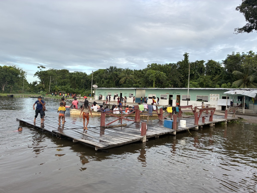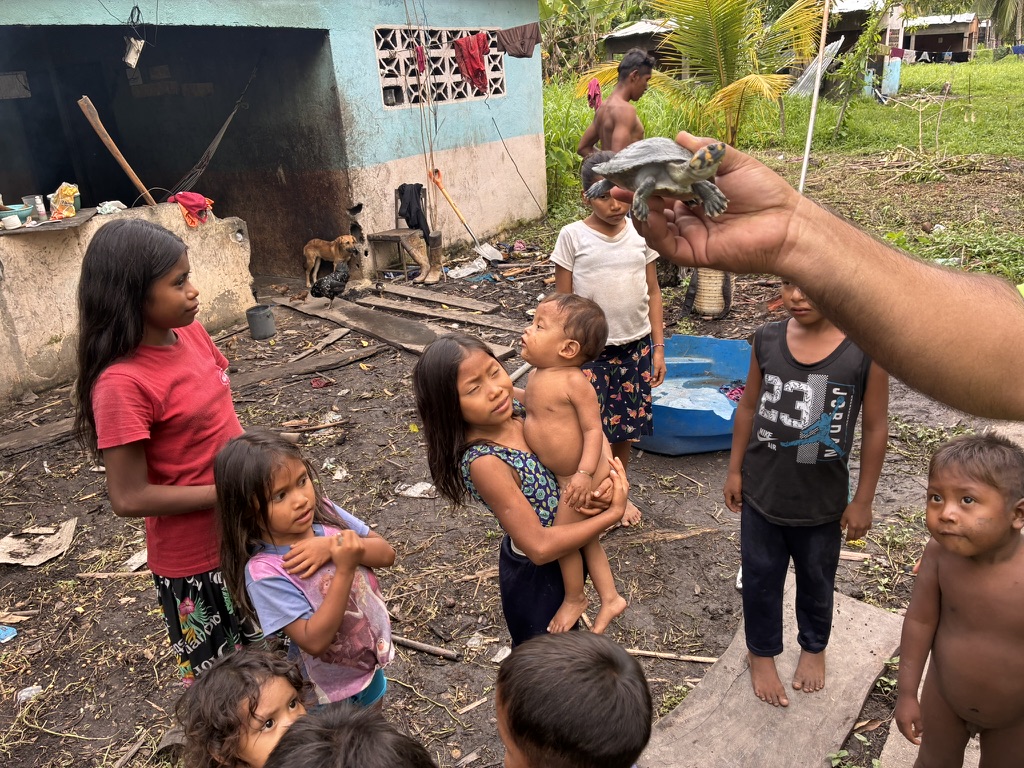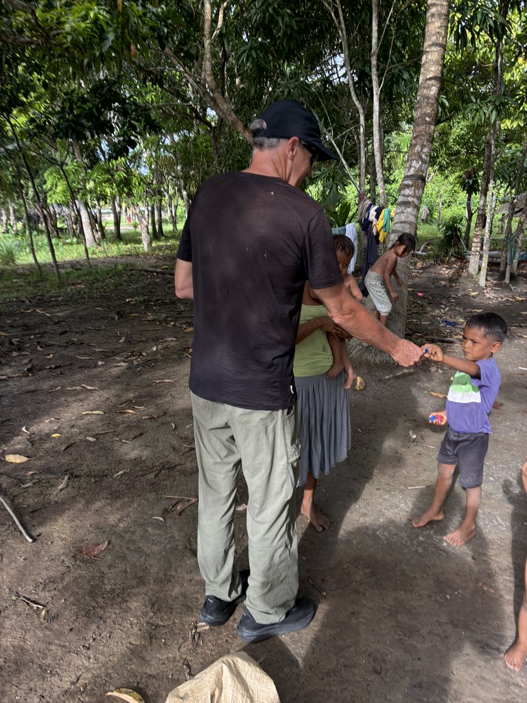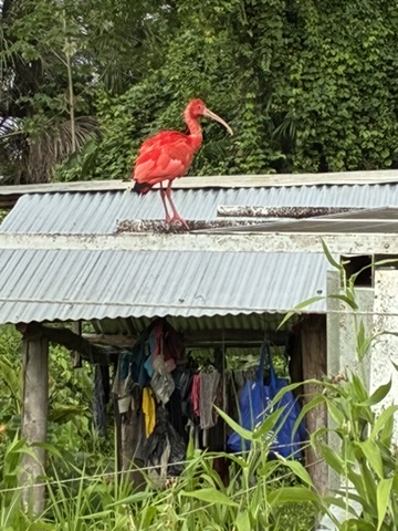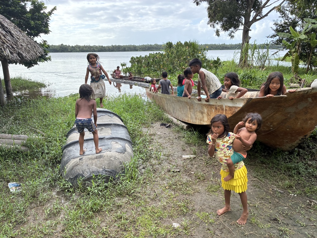 The local indians produce a few trinkets to sell but the thing they produce most of is kids. So many. And it was almost kids carrying kids. And they were lovely. Our guide had brought a big bag of biscuits for them. They politely took them one by one. No pushing or shoving. A couple of them had baby tortoises and a small crocodile. Once the biscuits ran out, they were back playing games and having fun. No phones. No internet. Just things to climb and jump around on. A jetty to jump off and all different sorts of ball games. There was a small school and a clinic (empty concrete room). The guide said half of them won’t live to double figures due to the fact they drink the river water. But they looked blissfully happy. And they had a bright coloured bird.