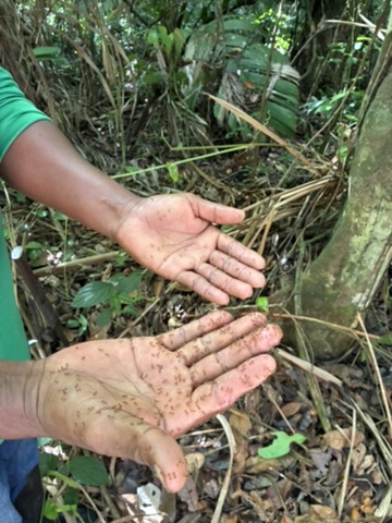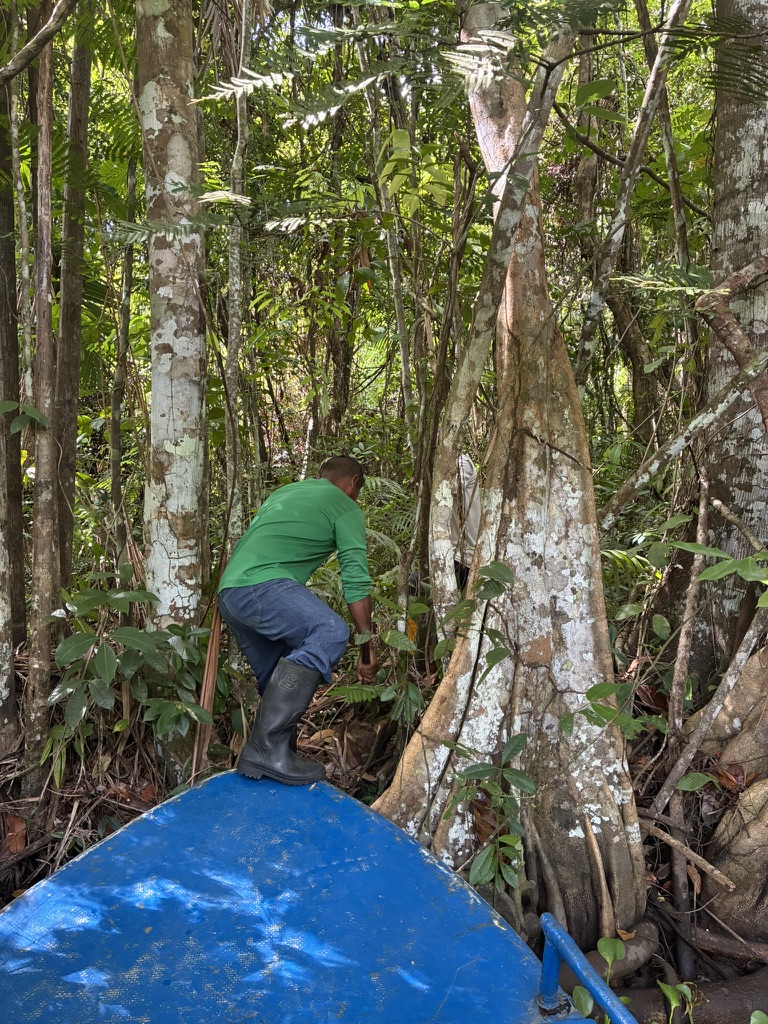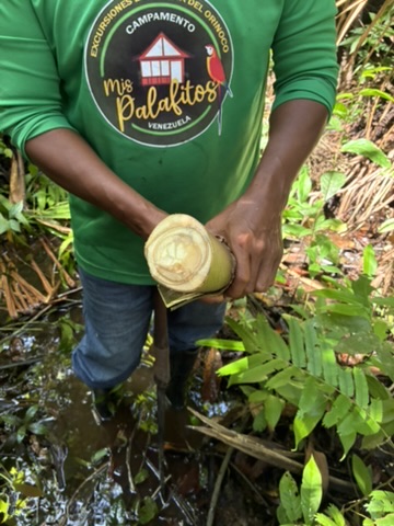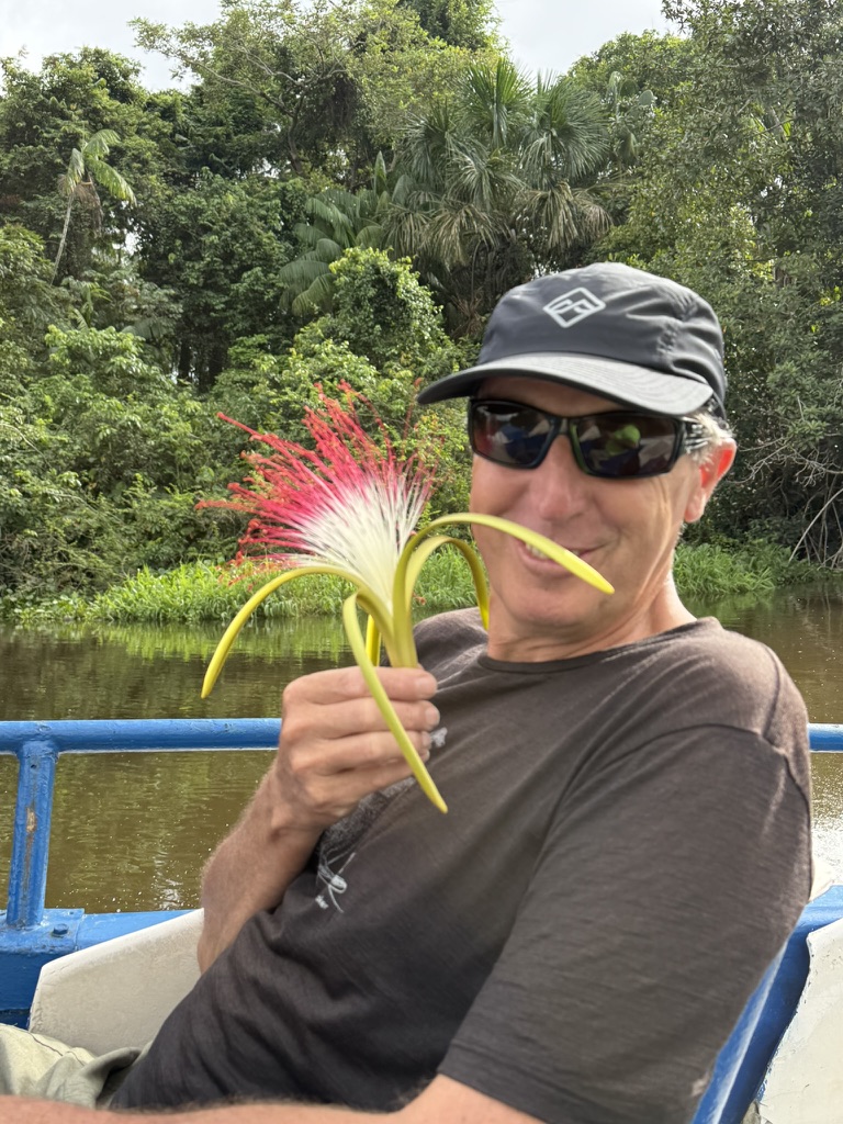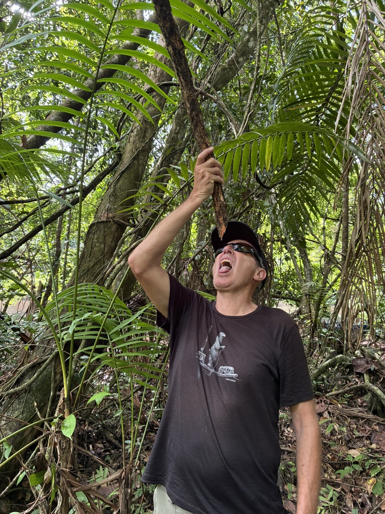 They then gave us some rubber boots and took us for a jungle walk. 100 metres from the boat and I’d be lost forever. But we learned how to get water from one tree. And food from another. And a bark you could write on with a carved stick. Just in case you wanted to leave a last message. These guys are very handy with a machete. Fortunately I had eaten so much I didn’t need to eat the ants.