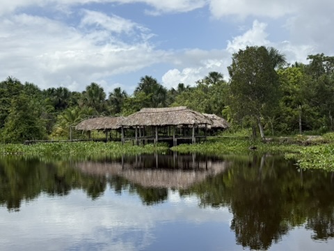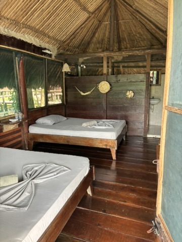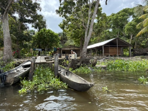 Next day I was off on a tour to the Orinoco Delta. The guy who looked after me after my accident ran tours. He had one going that day with a Swiss couple. It was a fancy overnight trip with everything included. And at $500AUD was well above my usual budget but I was happy to do it to pay back some of his kindness. It was a 3 hour road trip and then an hour in a fast boat. Almost 60kph past small dugout canoes and indigenous river villages. We took a couple of turn offs into smaller arms of the delta and somehow missed the rain and arrived safely at Camp Mis Palafitos.