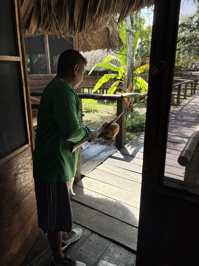 We had our welcome coconut drink and ate the soft kernel. The rooms were great. After a nice lunch we went back upstream to a local Indian village.