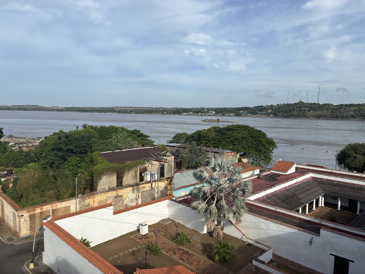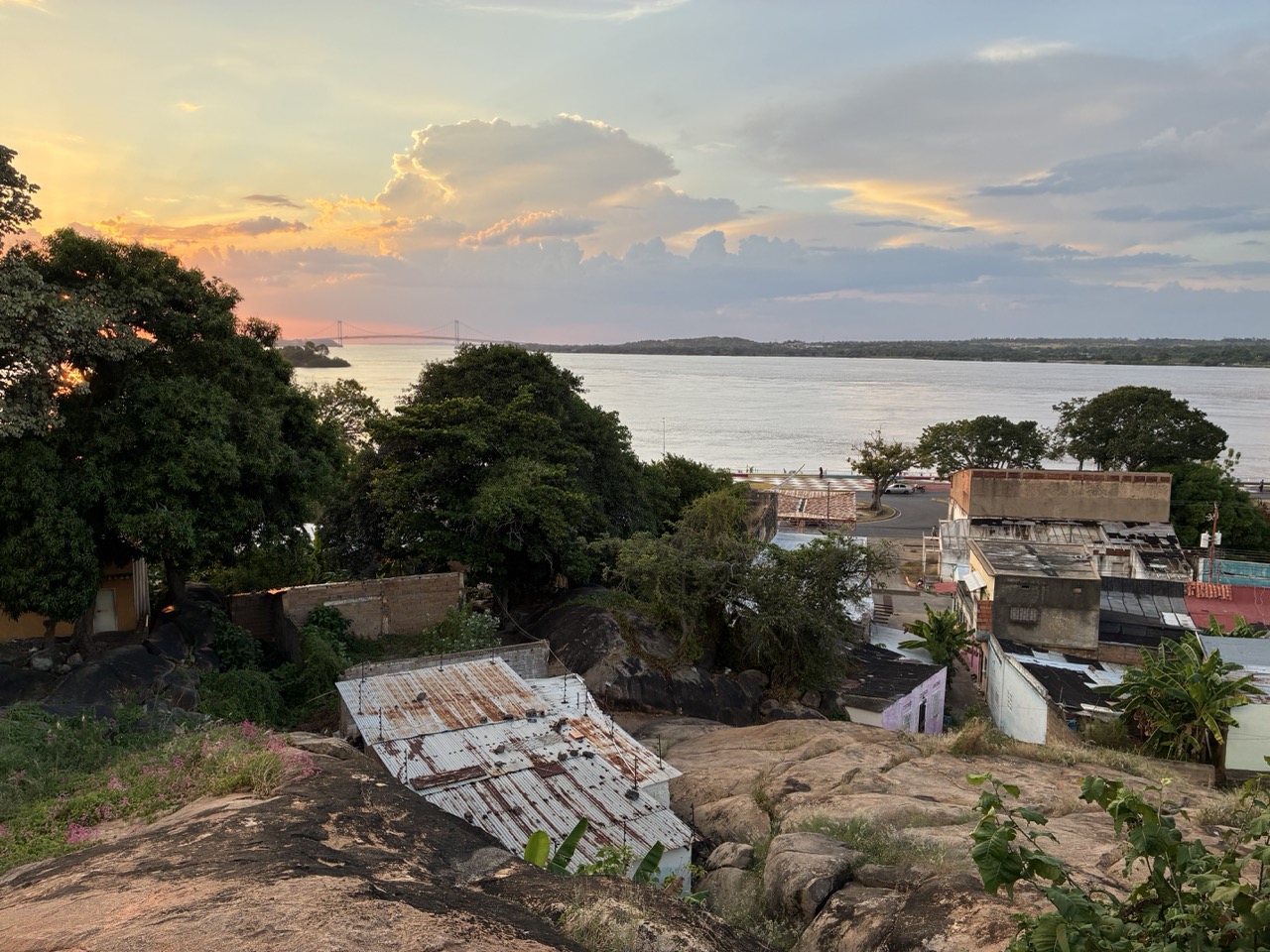 The city started out as a Spanish settlement on the banks of the Orinoco River in 1576. After being attacked by the local Carrib indians it moved upstream a bit and was then destroyed by the Dutch then the English. It moved a bit further up to get destroyed again. Pirates. Eventually it managed to survive and grow in its current location on the narrow part of the river. Narrow being 1.6 kilometres wide!