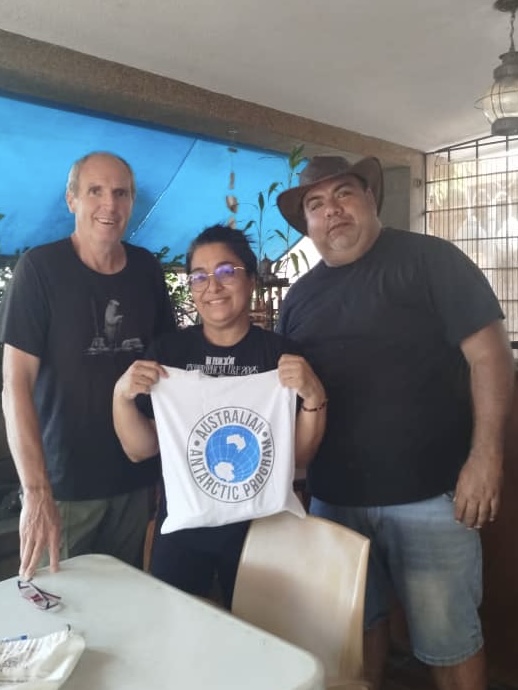 I was up early and ready to go when my mate arrived at the posada (B&B) to take me to the airport. Then we hung around. Everyone here is chatty and there’s always time for a shot of coffee and there’s always one available. It made me think about the tortoises that were wandering around in the garden next to me. I had bought my mate a couple of Aussie souvenirs that I knew he wanted. The main one was a kangaroo leather hat. I gave it to him. He was stoked. I put all the other things like the belt and flag and patches into an Antarctic tote bag and he was like a kid at a Royal Show. (I was happy to get all that excess stuff that I had been carrying out of my luggage). After a few photos with the owner of the posada we were off to the airport for another wait. Fortunately for me I have been trained in “hurry up and wait “when I worked for the Australian Antarctic Division.