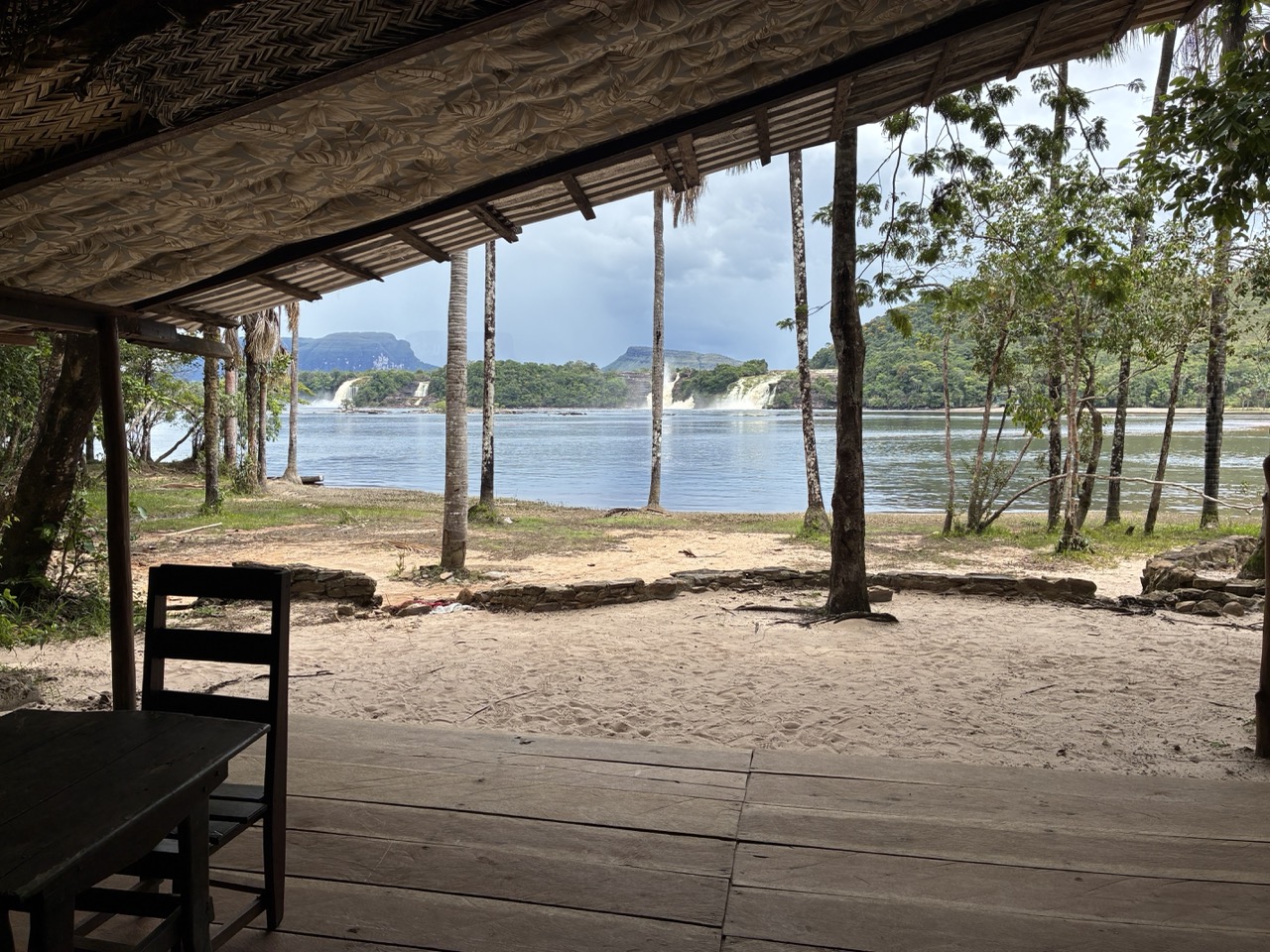 The young girl spoke very little English and had a bit of trouble with my accent. But it seemed like I needed to eat my food and then we were off on a tour to see some waterfalls. I just nodded and followed along. We walked for 5 minutes to a flash looking hotel and then we had to wait a while. It was a pleasant wait as Canaima is on a big wide section of river, probably a lagoon, which is filled by several large waterfalls. It almost looks like it was digitally manufactured for a movie.