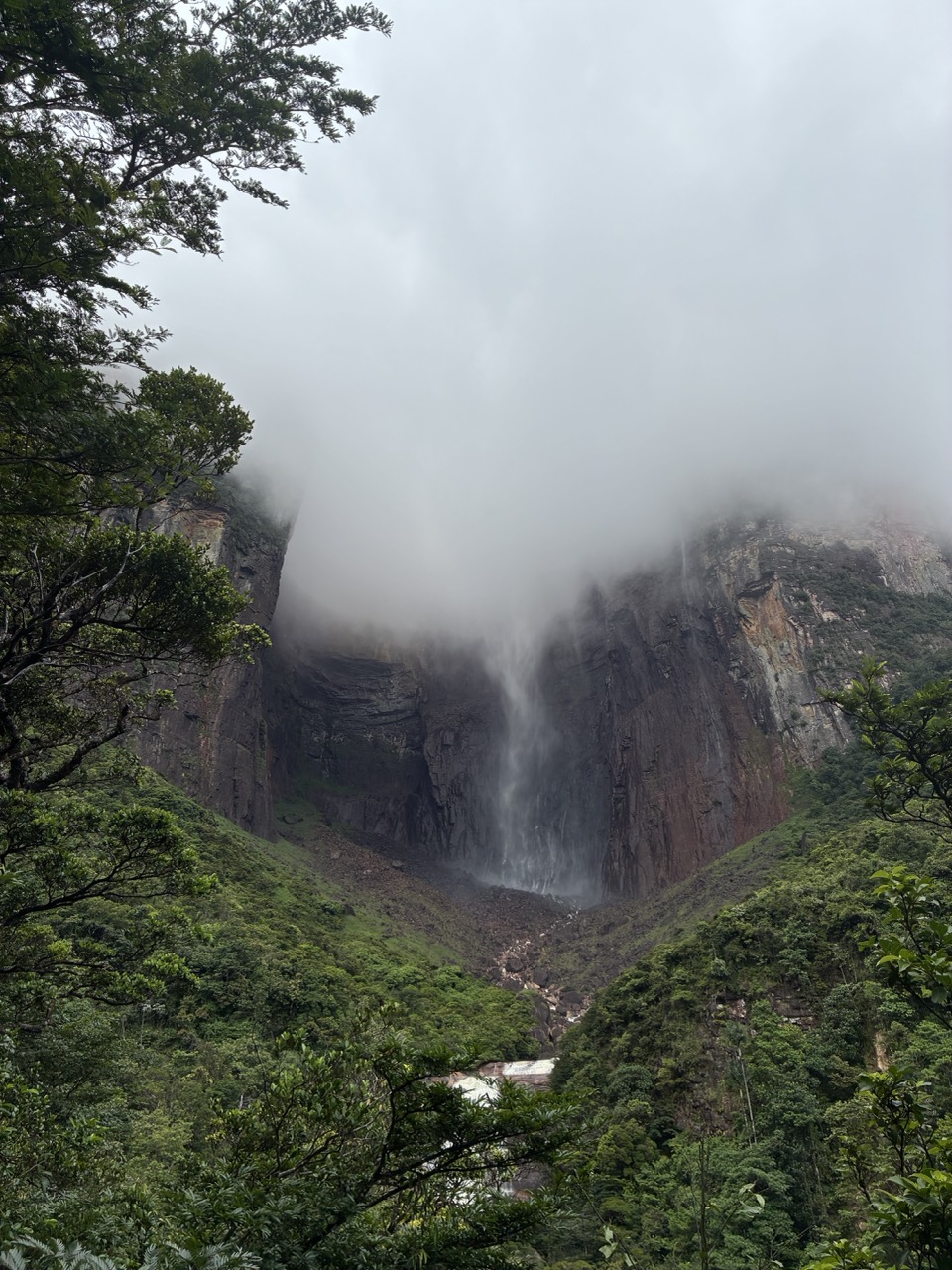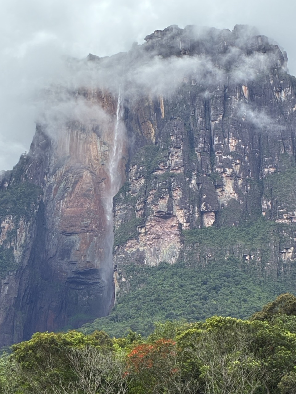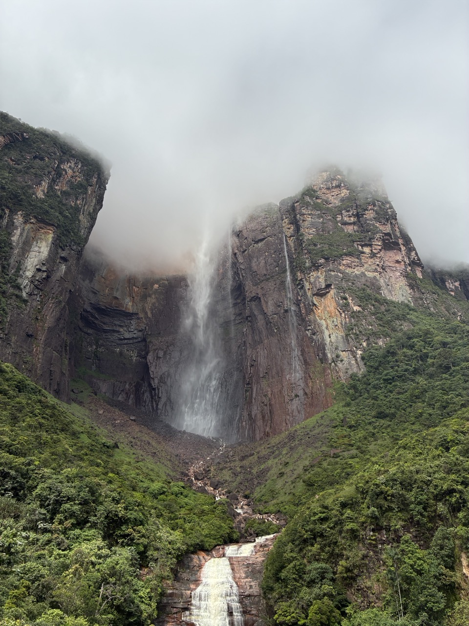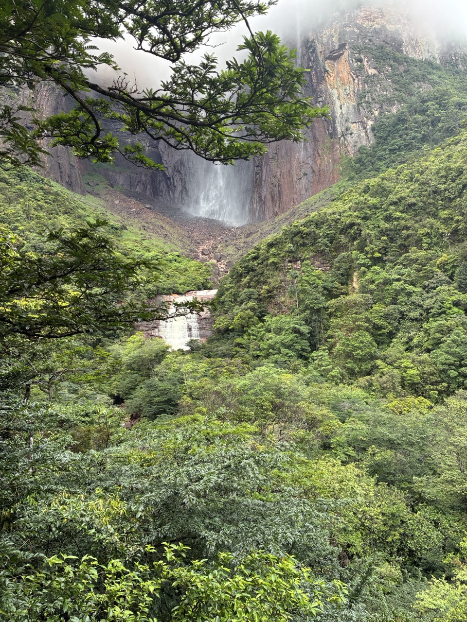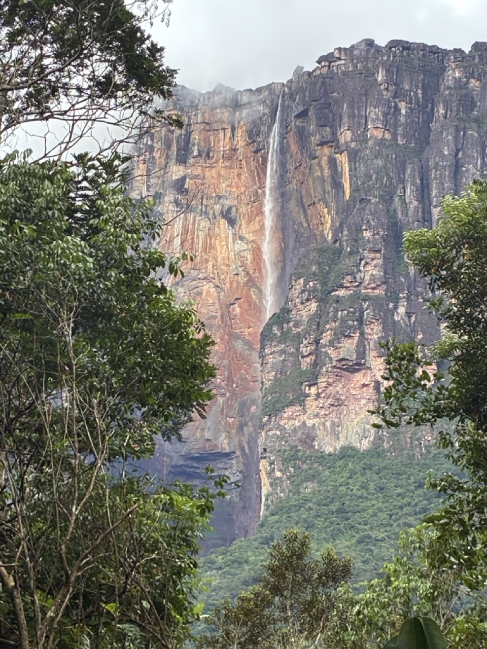 Up on top of Auyantepui (table top mountain) you could see Angels Falls. It was about 2kms away and to be honest it was so high that it was hard to get it into perspective. It is the highest waterfall in the world. It is 979 metres. But. I think it’s only 807 metres because that’s the distance of uninterrupted fall. The water starts at the top as water but less than halfway down it just becomes falling mist. It lands on some rocks and becomes water again and then heads over a more traditional looking waterfall into a pool and then resumes its journey as a river. And joins the one that I arrived on.