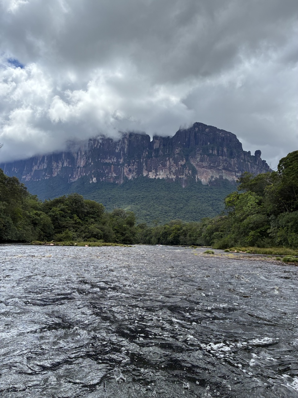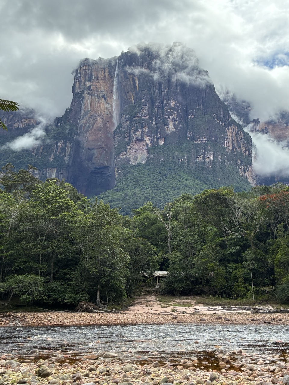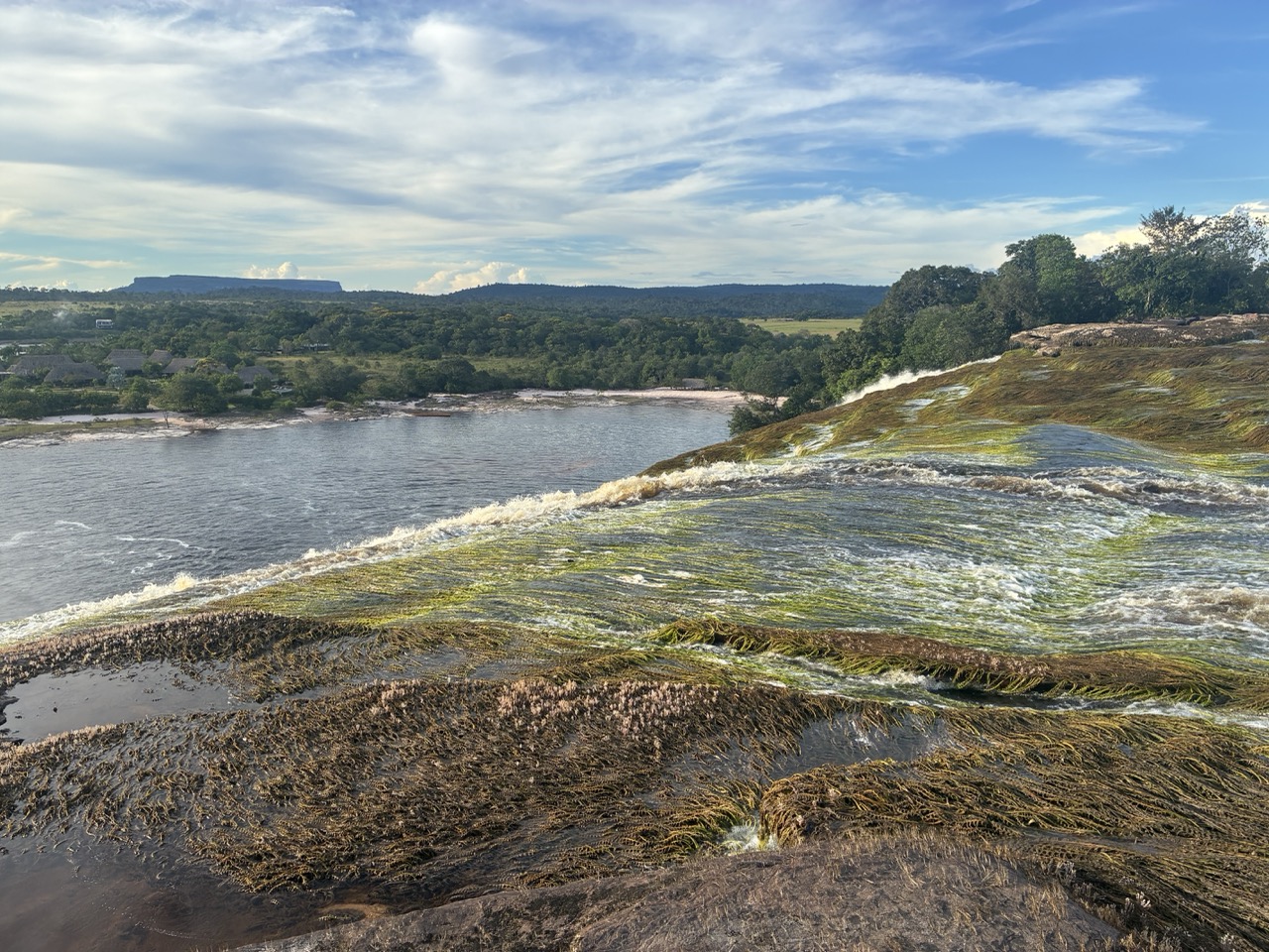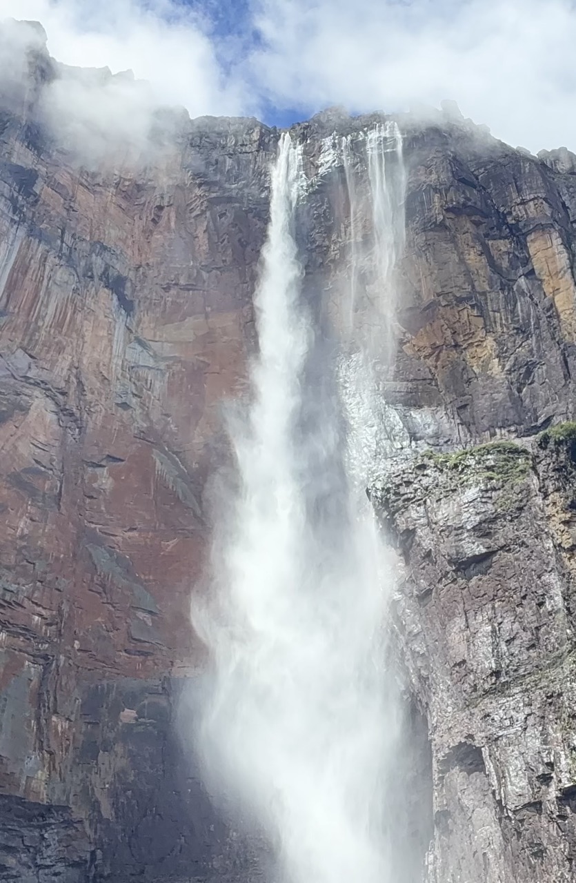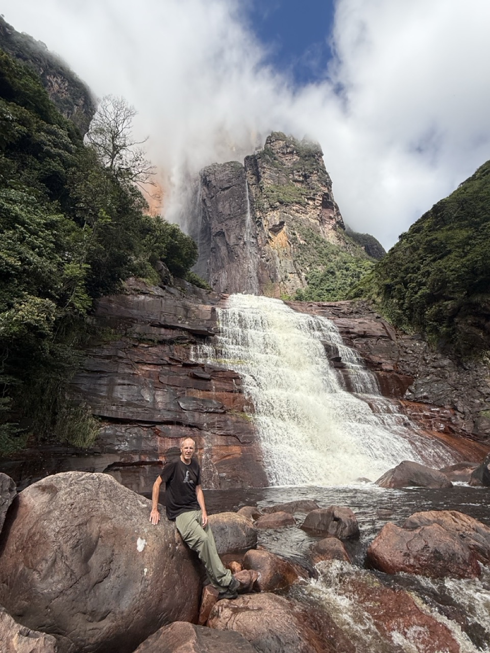 Up on top of Auyantepui (table top mountain) you could see Angels Falls. It was about 2kms away and to be honest it was so high that it was hard to get it into perspective. It is the highest waterfall in the world. It is 979 metres. But. I think it’s only 807 metres because that’s the distance of uninterrupted fall. The water starts at the top as water but less than halfway down it just becomes falling mist. It lands on some rocks and becomes water again and then heads over a more traditional looking waterfall into a pool and then resumes its journey as a river. And joins the one that I arrived on.