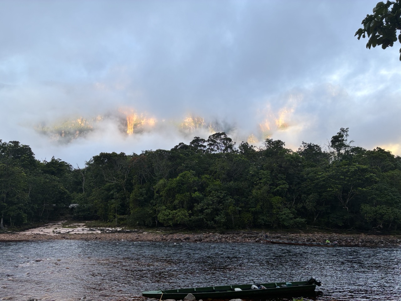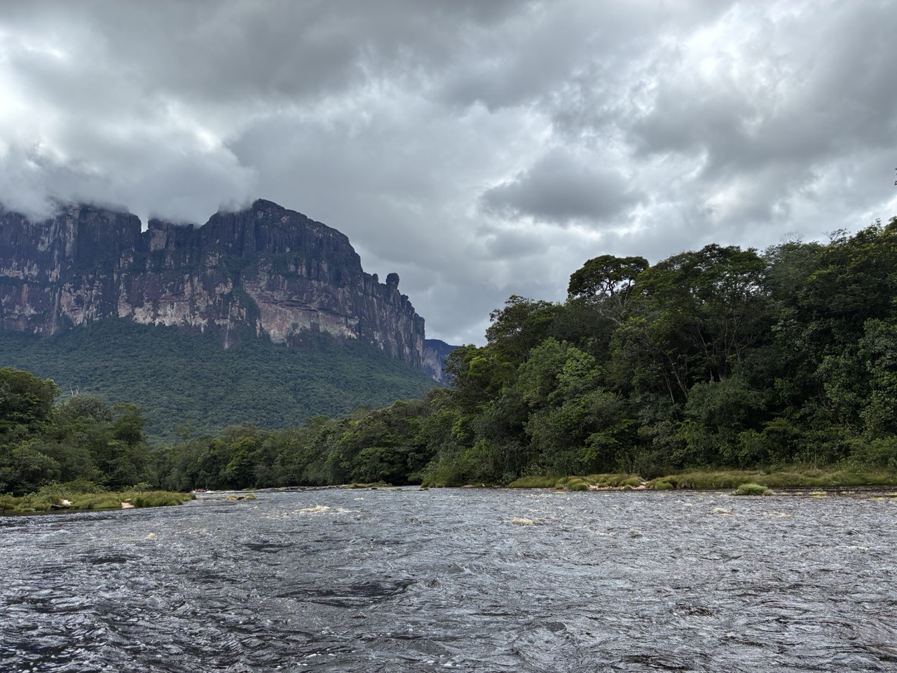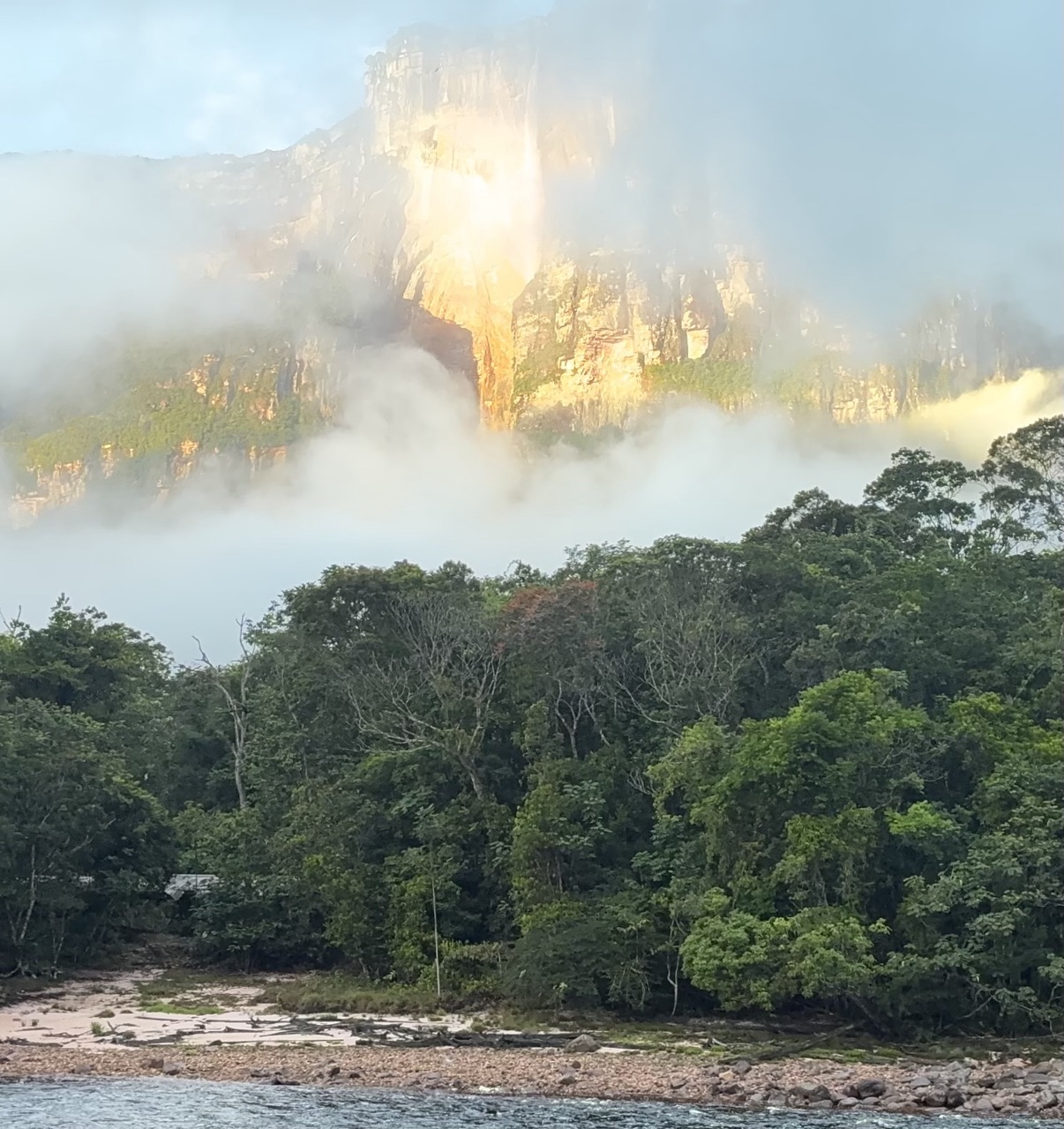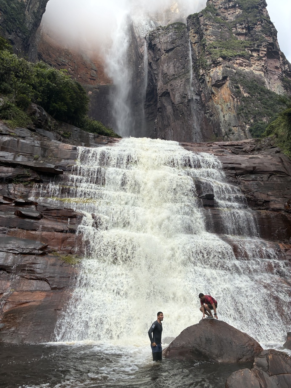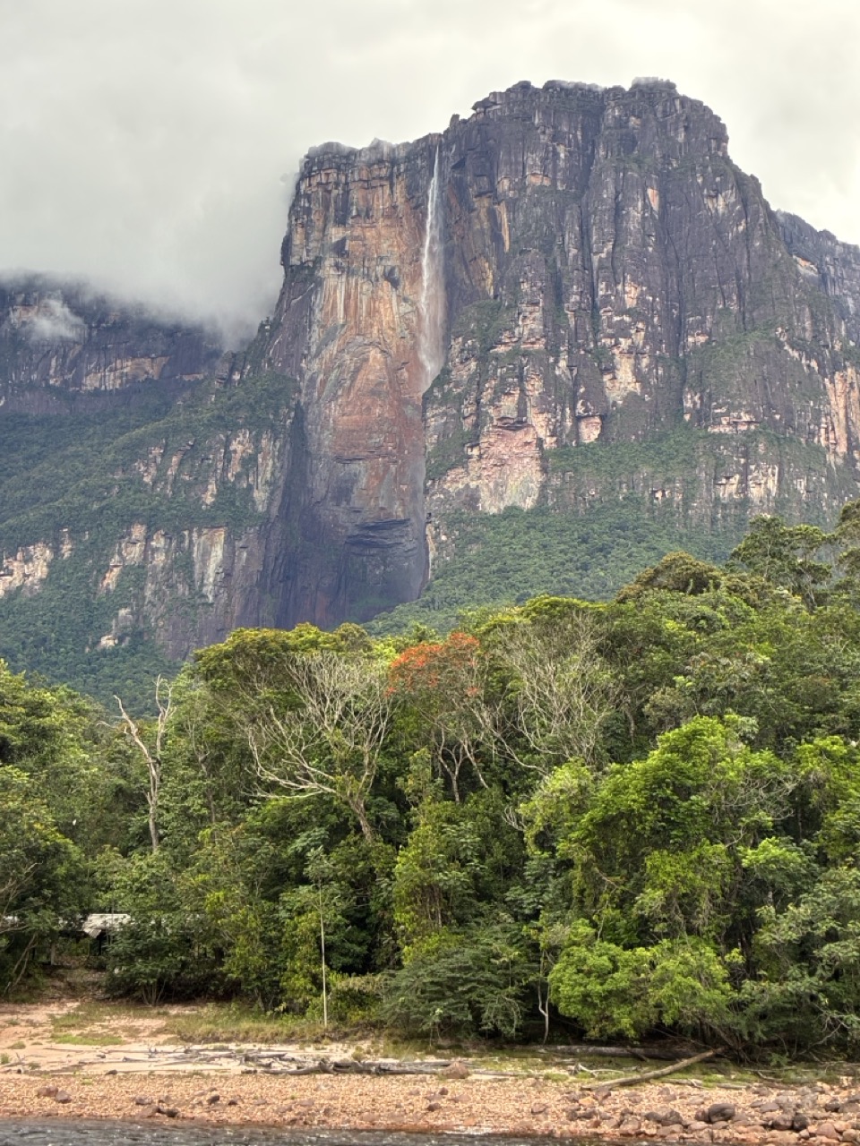 Up on top of Auyantepui (table top mountain) you could see Angels Falls. It was about 2kms away and to be honest it was so high that it was hard to get it into perspective. It is the highest waterfall in the world. It is 979 metres. But. I think it’s only 807 metres because that’s the distance of uninterrupted fall. The water starts at the top as water but less than halfway down it just becomes falling mist. It lands on some rocks and becomes water again and then heads over a more traditional looking waterfall into a pool and then resumes its journey as a river. And joins the one that I arrived on.