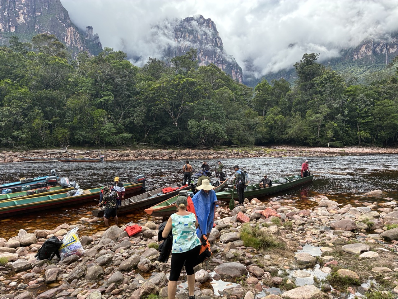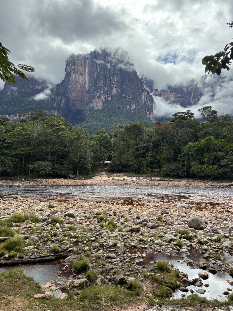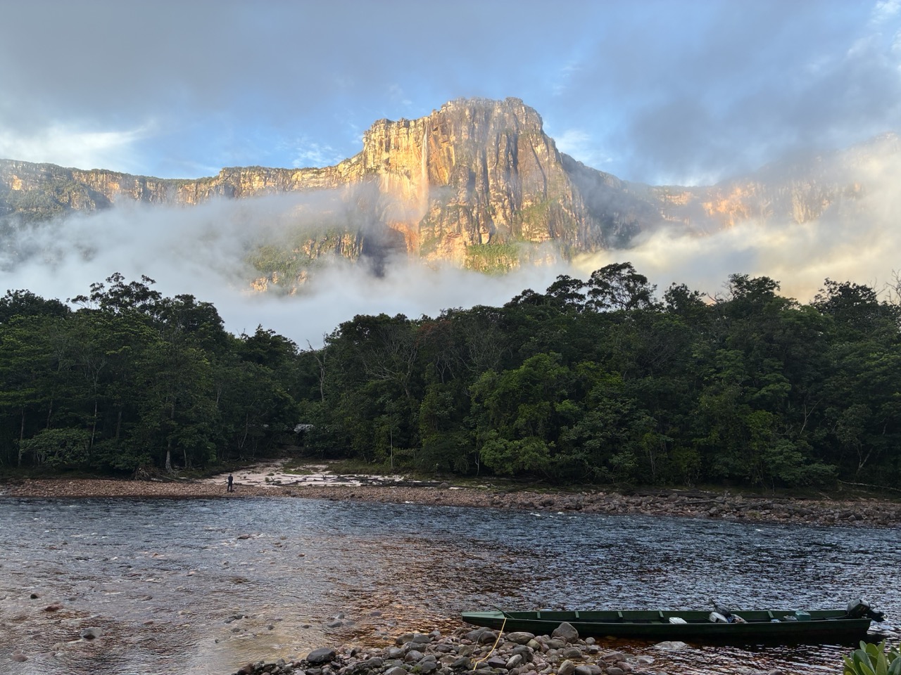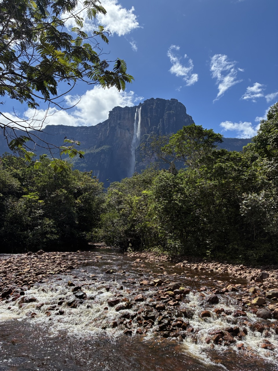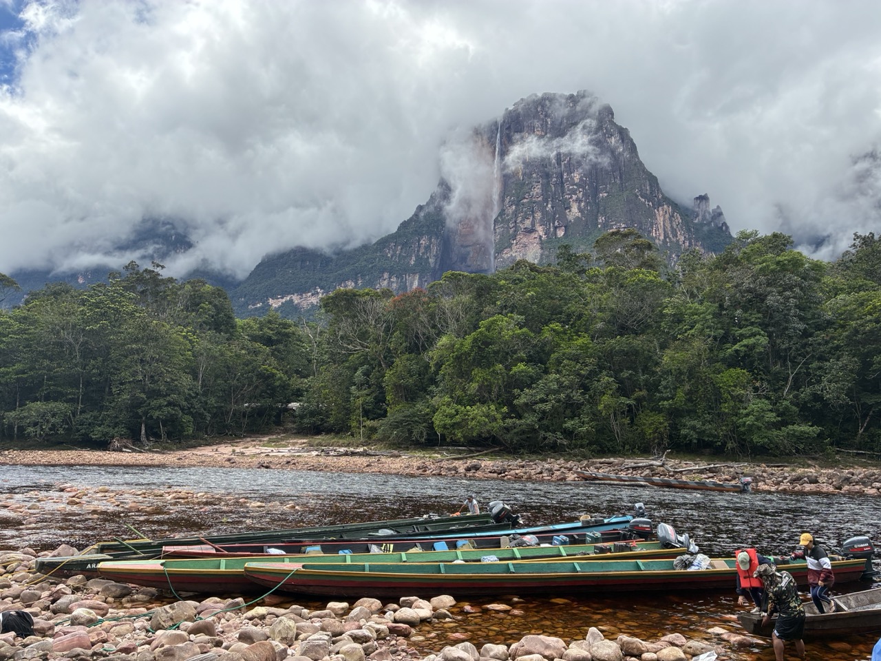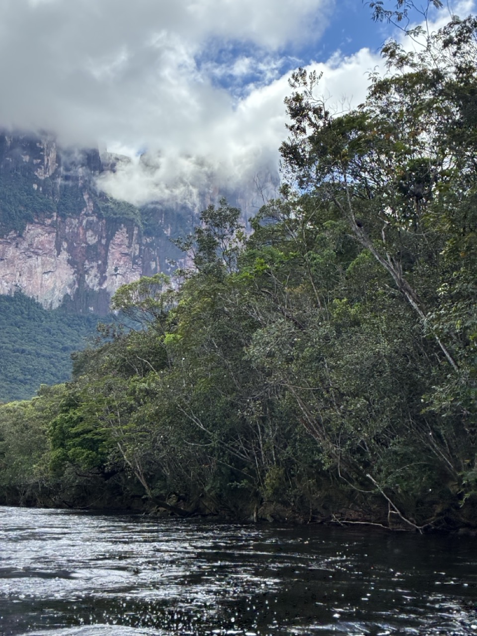 Up on top of Auyantepui (table top mountain) you could see Angels Falls. It was about 2kms away and to be honest it was so high that it was hard to get it into perspective. It is the highest waterfall in the world. It is 979 metres. But. I think it’s only 807 metres because that’s the distance of uninterrupted fall. The water starts at the top as water but less than halfway down it just becomes falling mist. It lands on some rocks and becomes water again and then heads over a more traditional looking waterfall into a pool and then resumes its journey as a river. And joins the one that I arrived on.