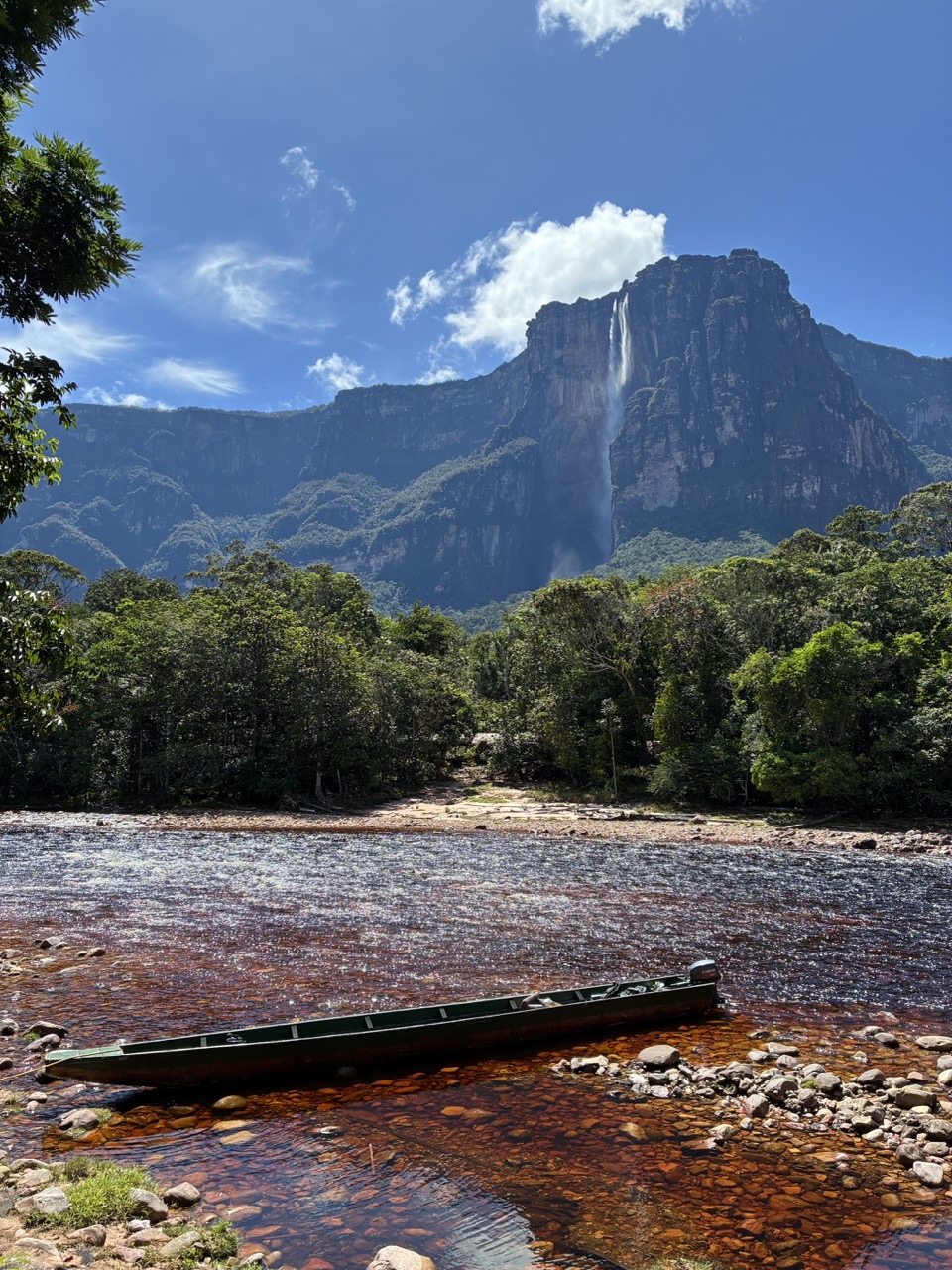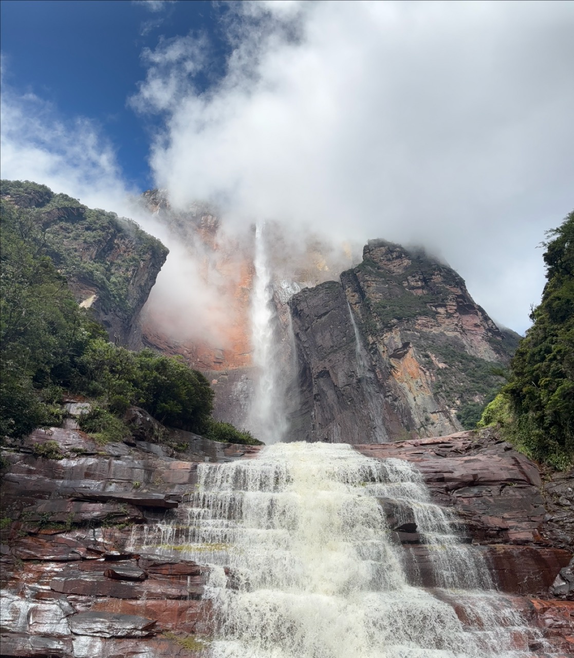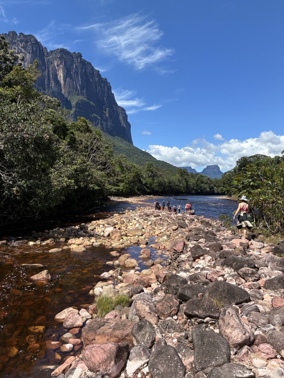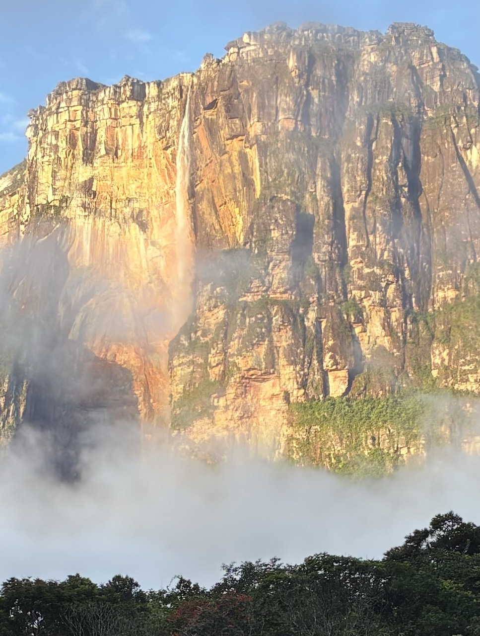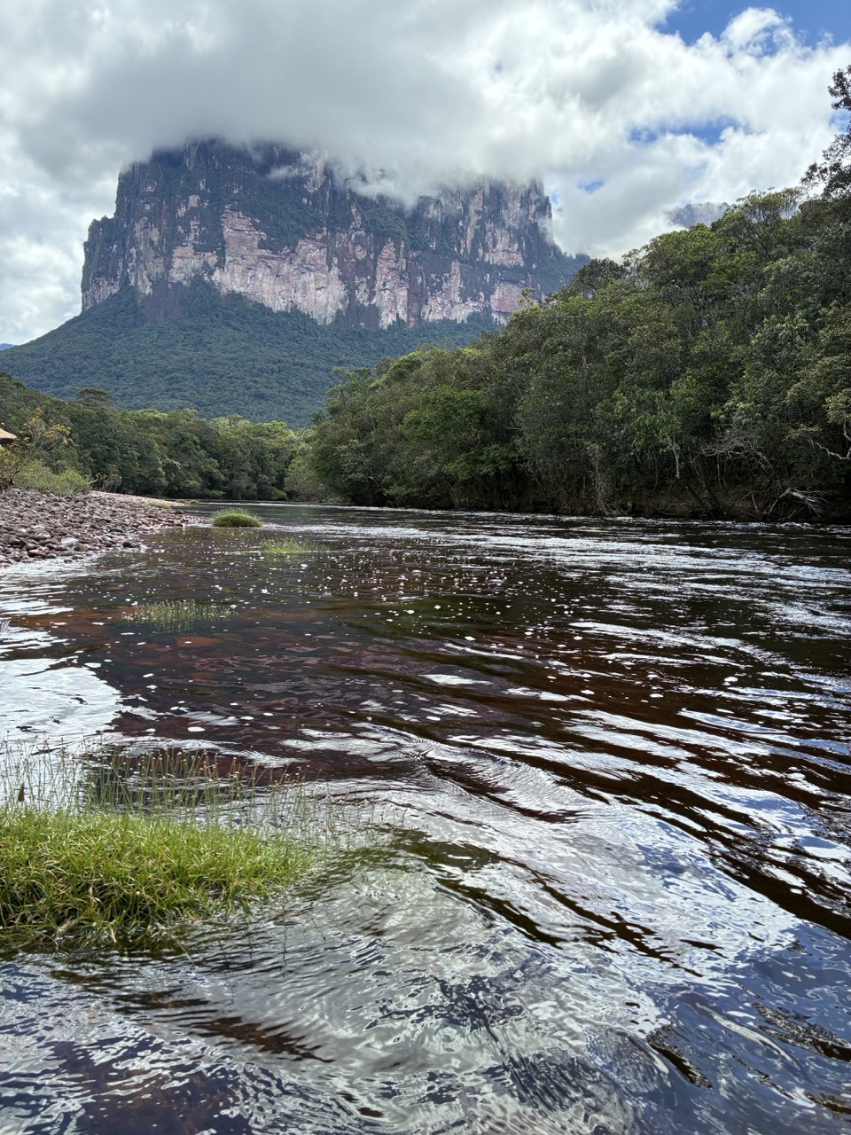 Up on top of Auyantepui (table top mountain) you could see Angels Falls. It was about 2kms away and to be honest it was so high that it was hard to get it into perspective. It is the highest waterfall in the world. It is 979 metres. But. I think it’s only 807 metres because that’s the distance of uninterrupted fall. The water starts at the top as water but less than halfway down it just becomes falling mist. It lands on some rocks and becomes water again and then heads over a more traditional looking waterfall into a pool and then resumes its journey as a river. And joins the one that I arrived on.