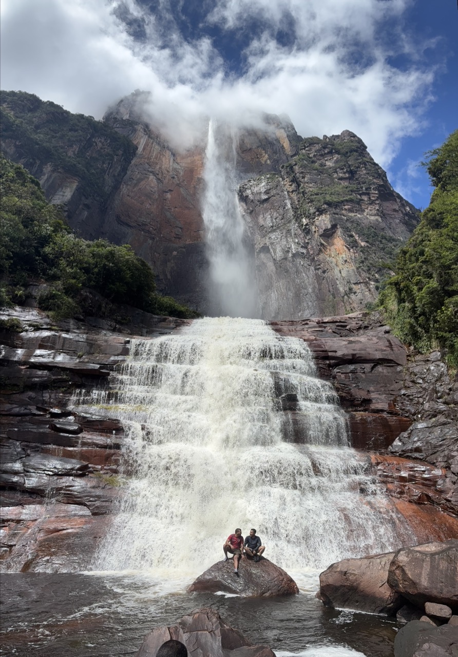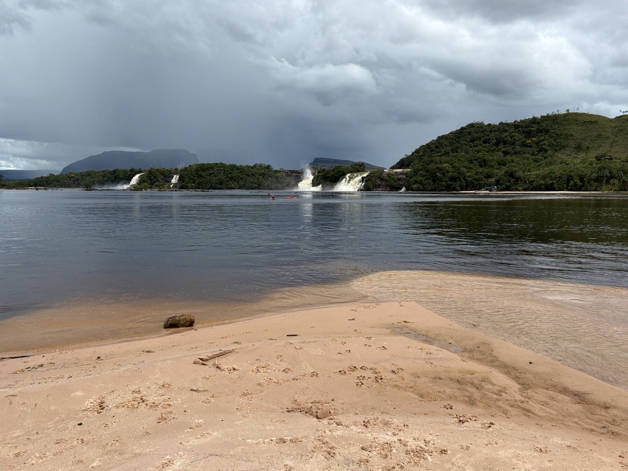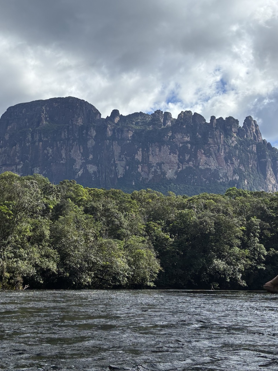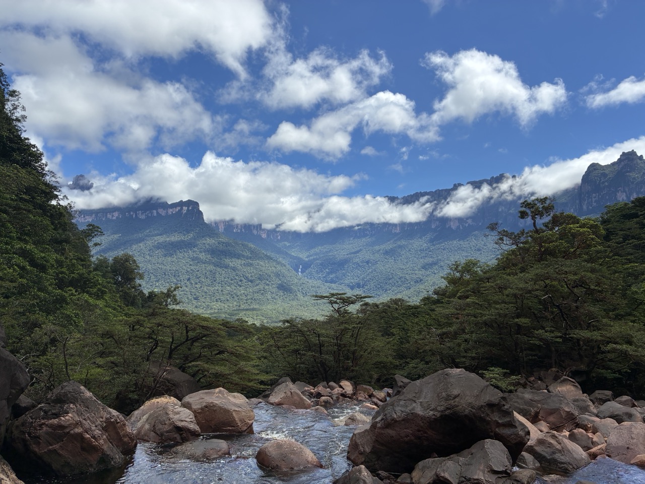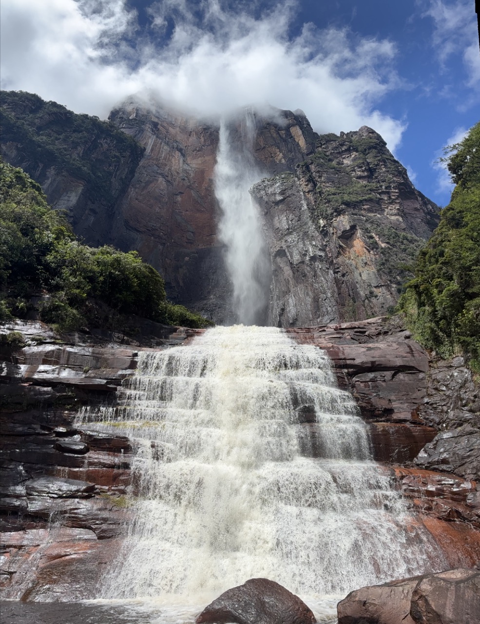 Up on top of Auyantepui (table top mountain) you could see Angels Falls. It was about 2kms away and to be honest it was so high that it was hard to get it into perspective. It is the highest waterfall in the world. It is 979 metres. But. I think it’s only 807 metres because that’s the distance of uninterrupted fall. The water starts at the top as water but less than halfway down it just becomes falling mist. It lands on some rocks and becomes water again and then heads over a more traditional looking waterfall into a pool and then resumes its journey as a river. And joins the one that I arrived on.