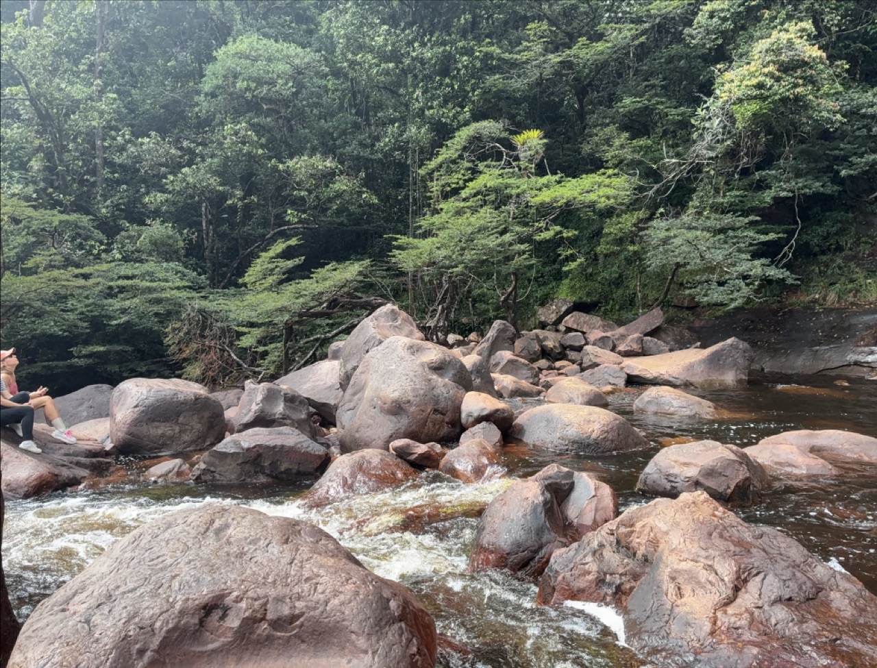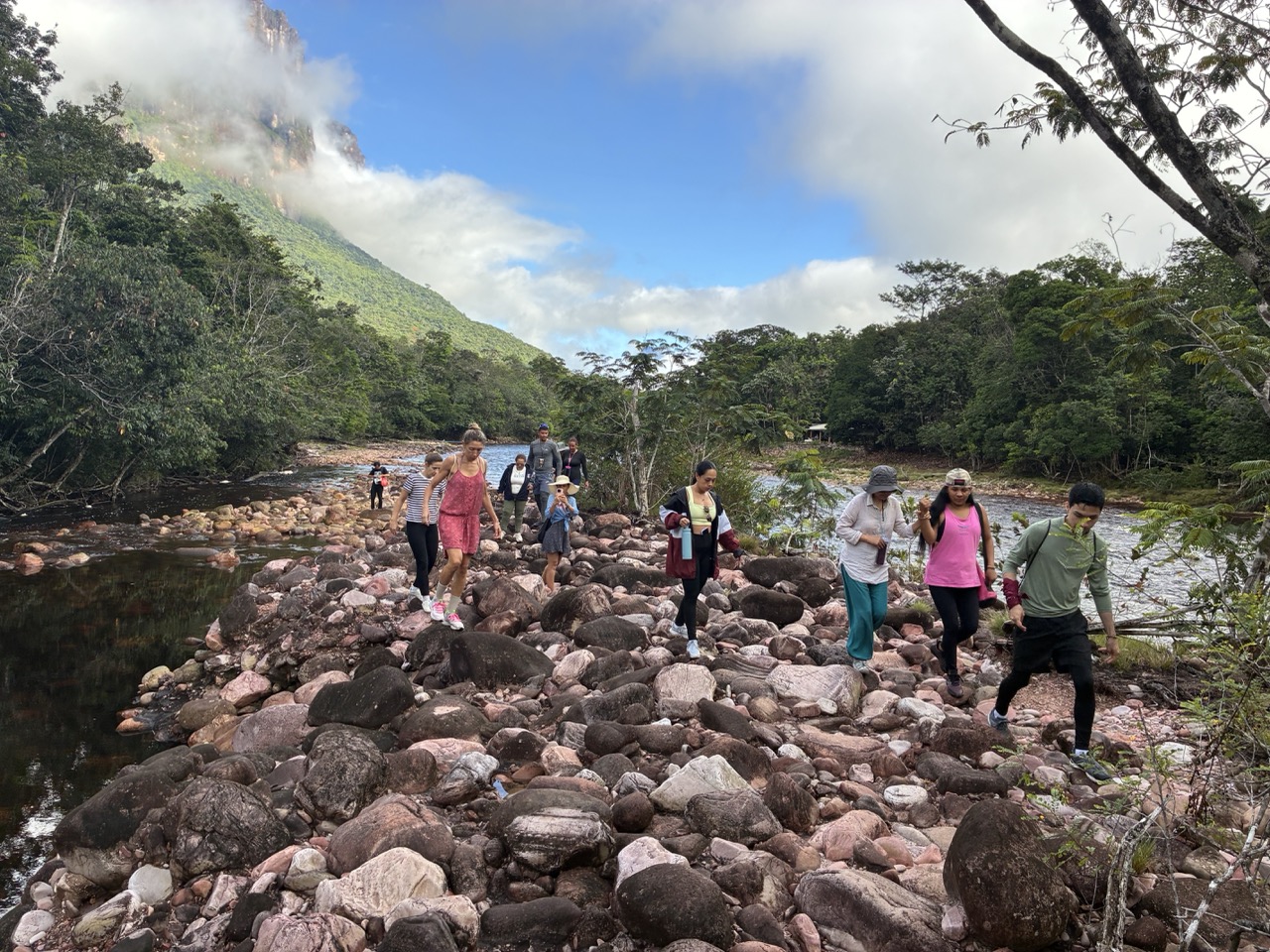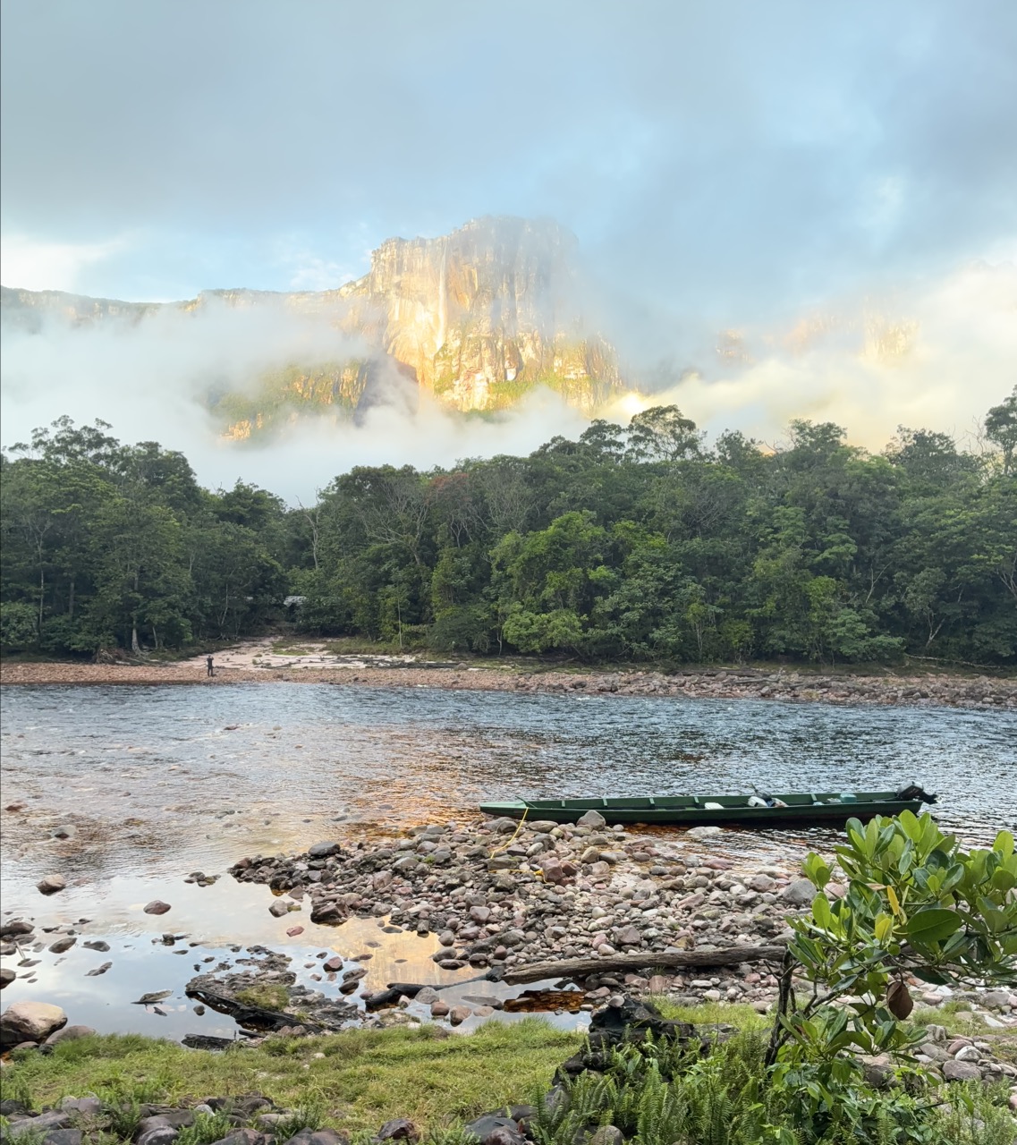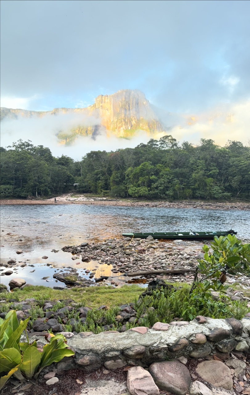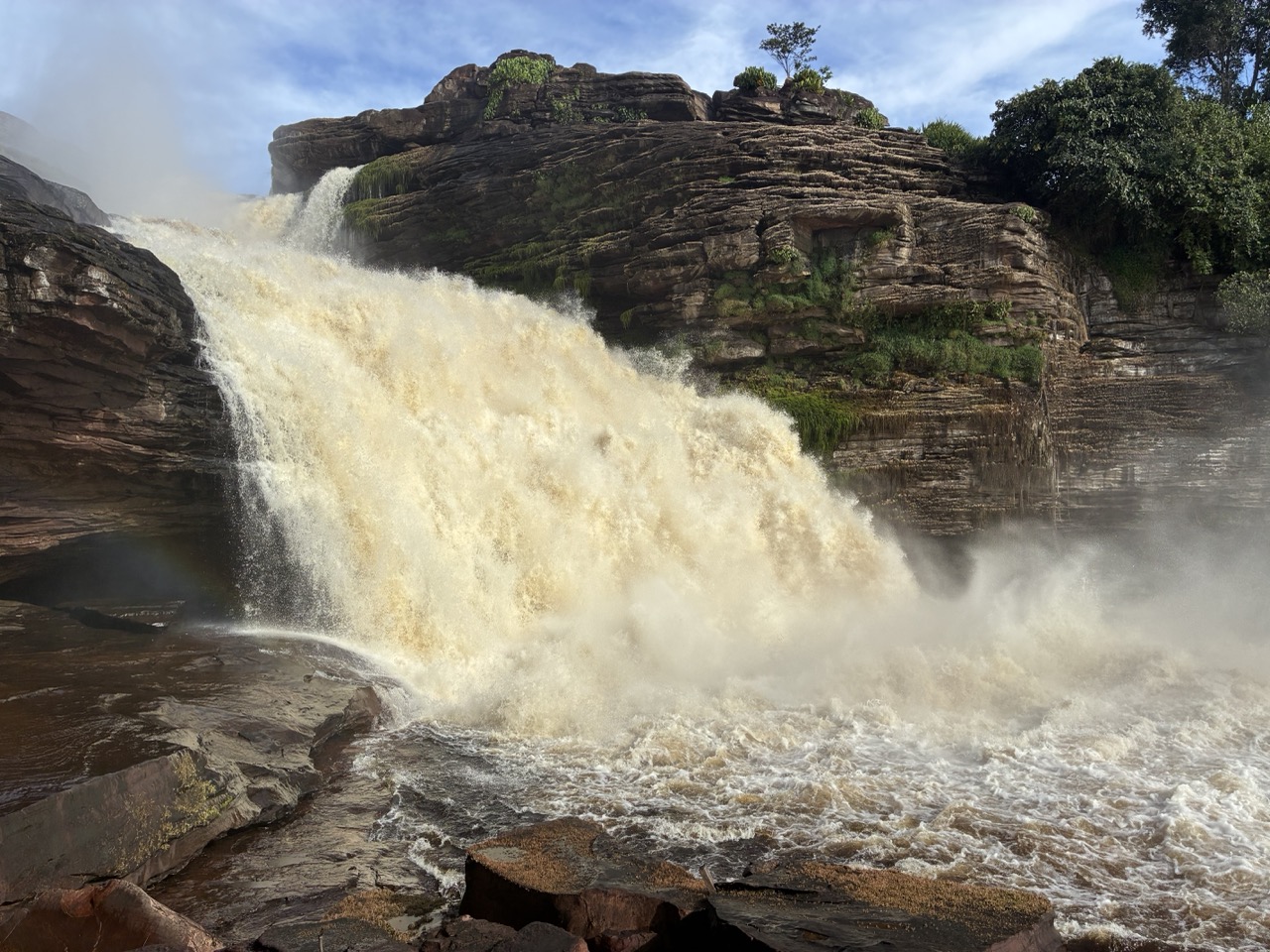 Up on top of Auyantepui (table top mountain) you could see Angels Falls. It was about 2kms away and to be honest it was so high that it was hard to get it into perspective. It is the highest waterfall in the world. It is 979 metres. But. I think it’s only 807 metres because that’s the distance of uninterrupted fall. The water starts at the top as water but less than halfway down it just becomes falling mist. It lands on some rocks and becomes water again and then heads over a more traditional looking waterfall into a pool and then resumes its journey as a river. And joins the one that I arrived on.