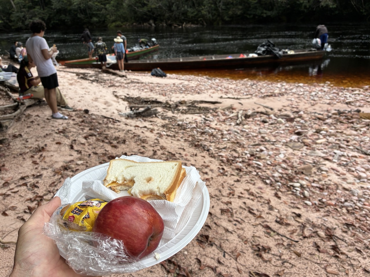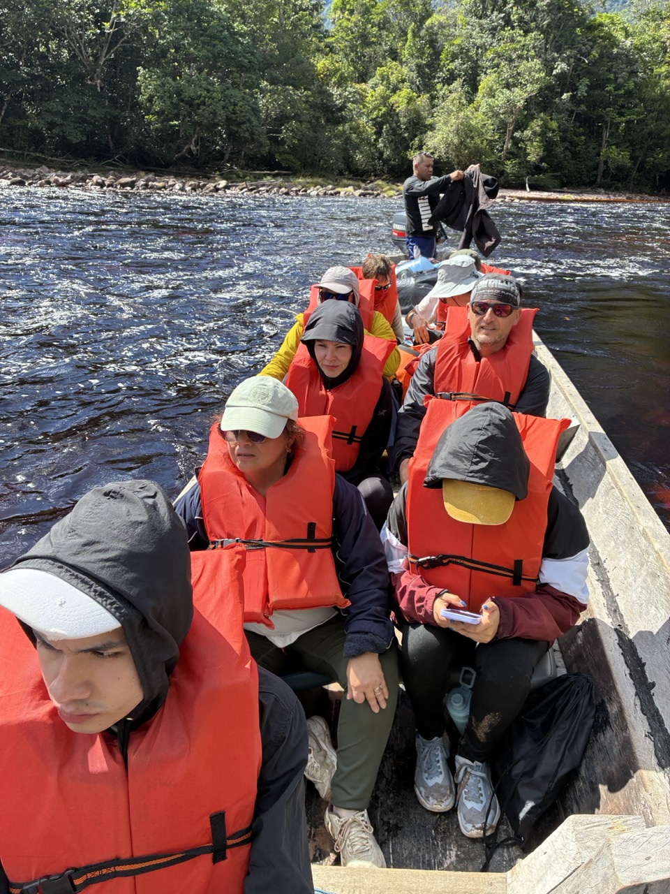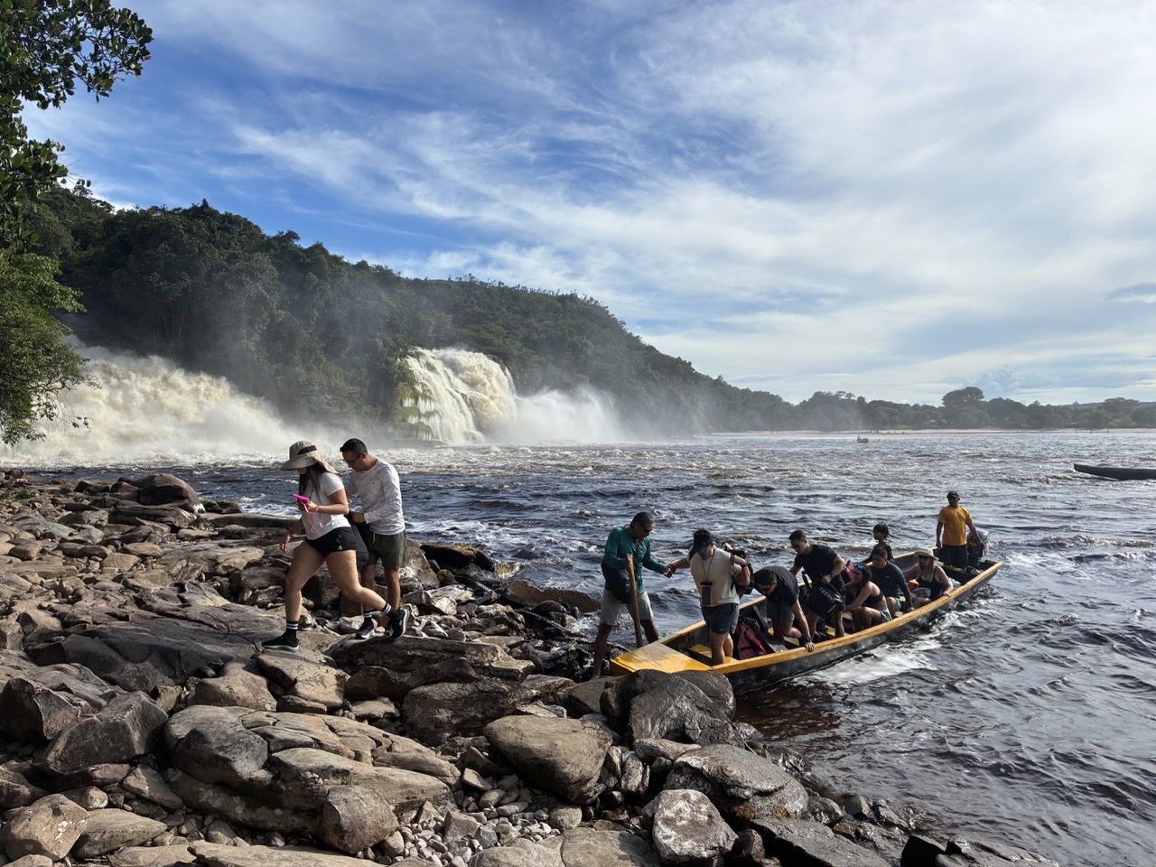 We had breakfast on the long table and then left in our respective groups to get in the boat to cross the river and begin our hike to the falls.