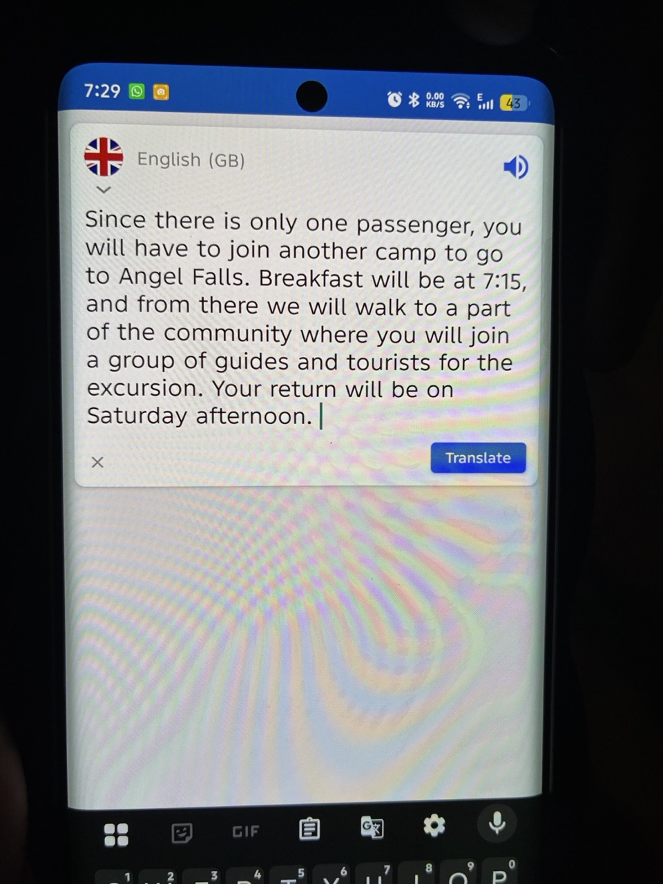 Next morning I was flying back to Porto Ordaz but the departure time changed so many times I just gave up and played with my phone and did sudokus. Eventually I was taken to the airport which was only 100 metres away and given a ticket. I caught up again with the Iranian lady who was waiting for her plane back to Caracas. Sadly, I was called suddenly to my plane as it was about to leave and in the rush I left my cap, sitting on the table. I don’t like caps or hats but I know I need to wear them now and I was slowly getting attached to this one. Hopefully I can replace it somewhere.