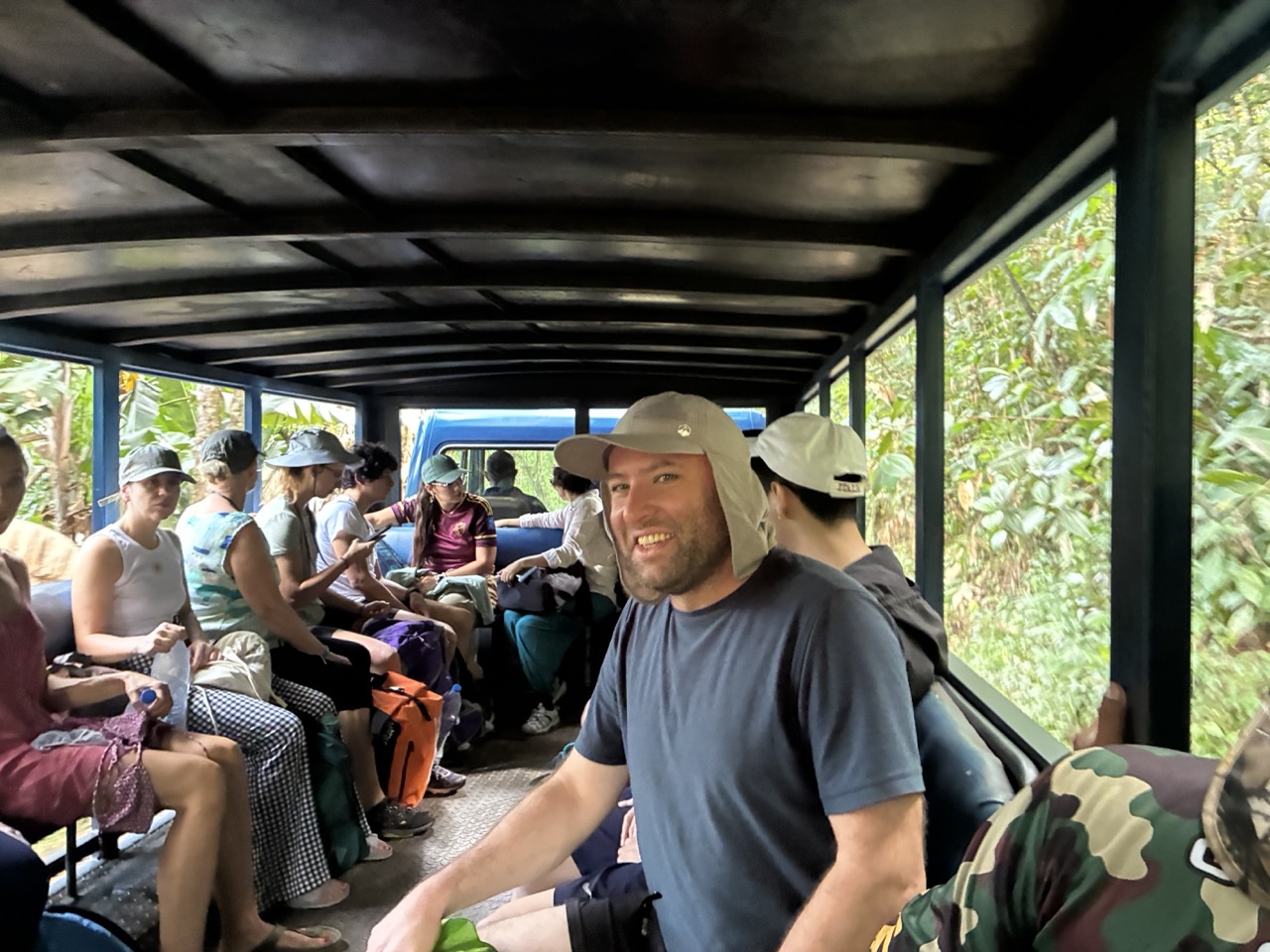 It seemed to be a cheaper backpacker level of accommodation. Then a truck turned up and we all piled in. About 18 of us. It was then about a 15 minute drive to where a couple of boats were waiting. The two boats were exactly like the ones from the day before but this time we all had a cushion. I had been told by someone at some stage that it’s a 4 hour trip and thought no more of it. The guys put everyone’s luggage at the back of the boat and covered it with plastic. All my gear was in my dry bag and so I kept it with me. I’ve carried the dry bag for the entire trip and so I was glad to finally have a good use for it. The boat was pretty loaded. No info or instructions. Off we went. Upstream. Downstream would have taken us over the waterfall we walked under yesterday.
