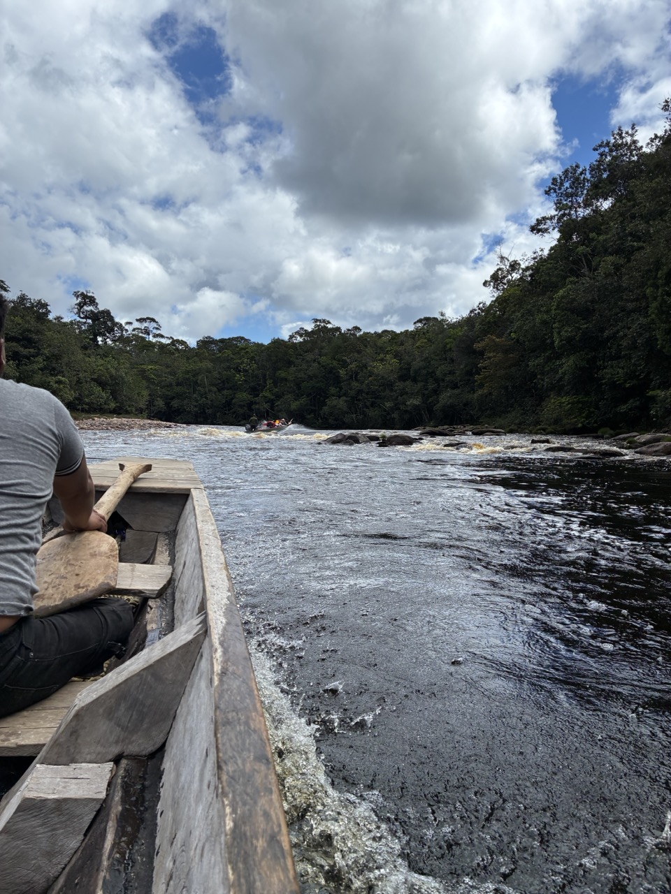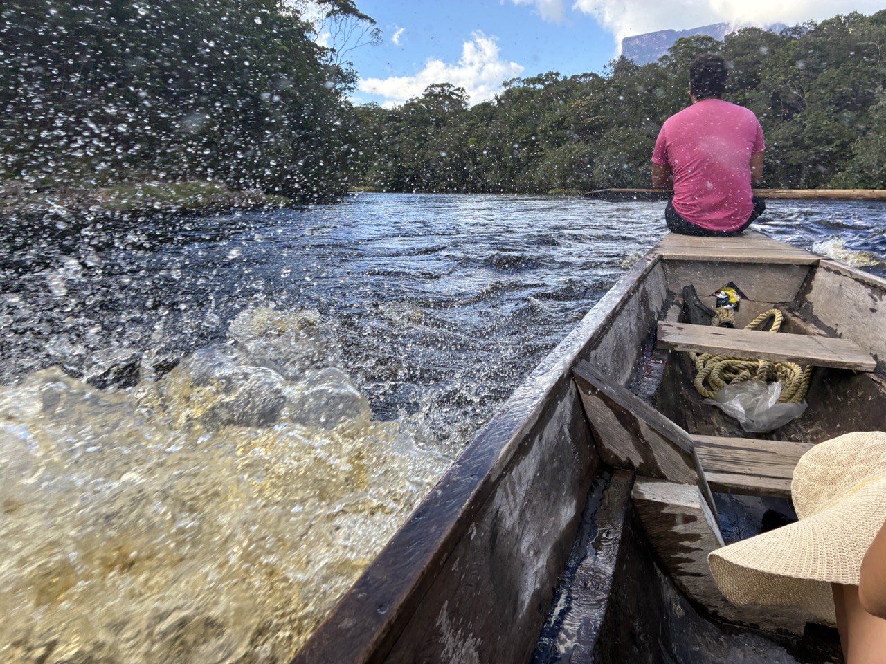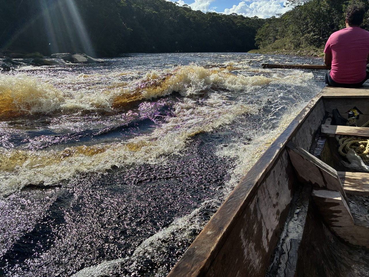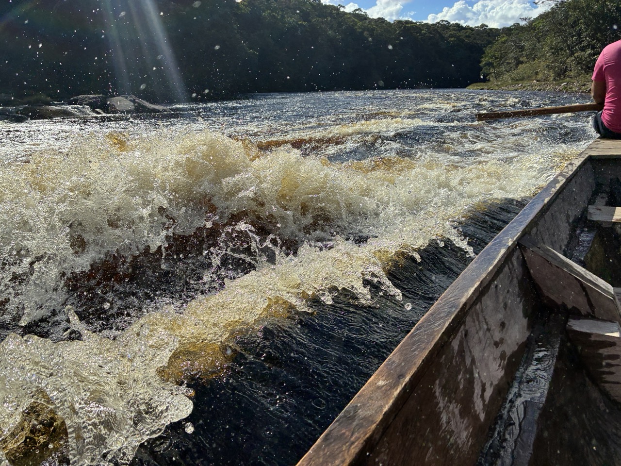 The Rio Carrao was a nice wide river and the little Yamaha 40 motors made good time for the first half an hour. We pulled into a small village and disembarked because there was a series of rapids and they wanted us out to take the boat through them. Turned out to be a kilometre walk via a local handcraft shop and past a church and a school. This was the longest of several walk arounds we had to do. There were also a few sets of rapids that we took on fully loaded. At one stop they said fat people in the back. Skinny people in the front because it was fast water and the needed the boat balanced. I was sat in the back row! I was a bit surprised at some of the rough water we went through. And how much of it I wore. Ha. If only I had known what was yet to come.
