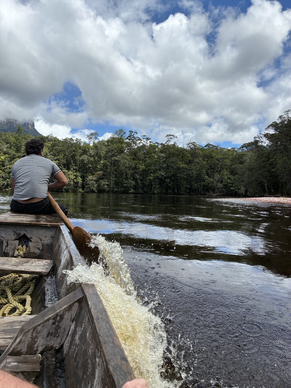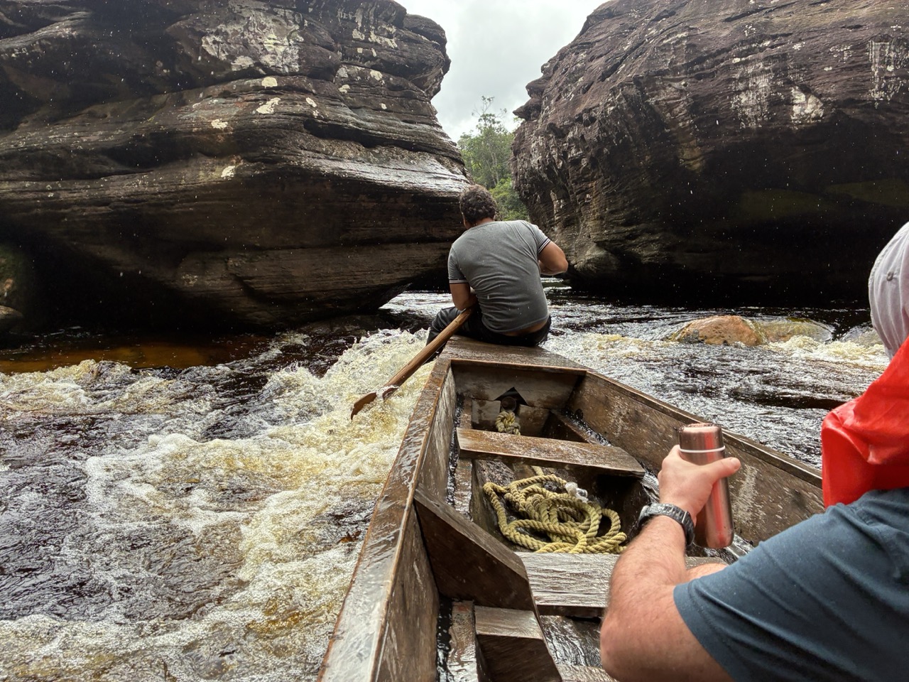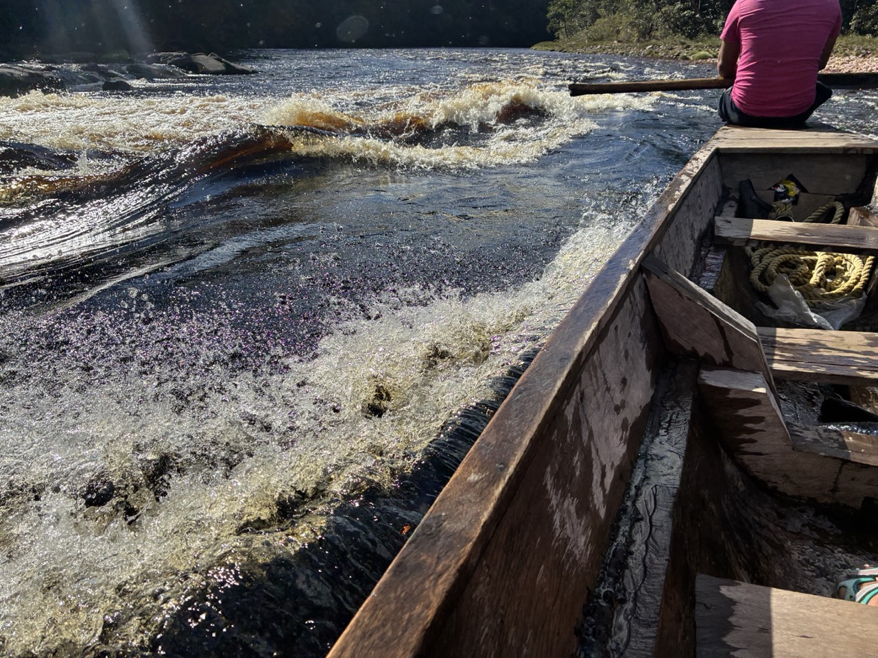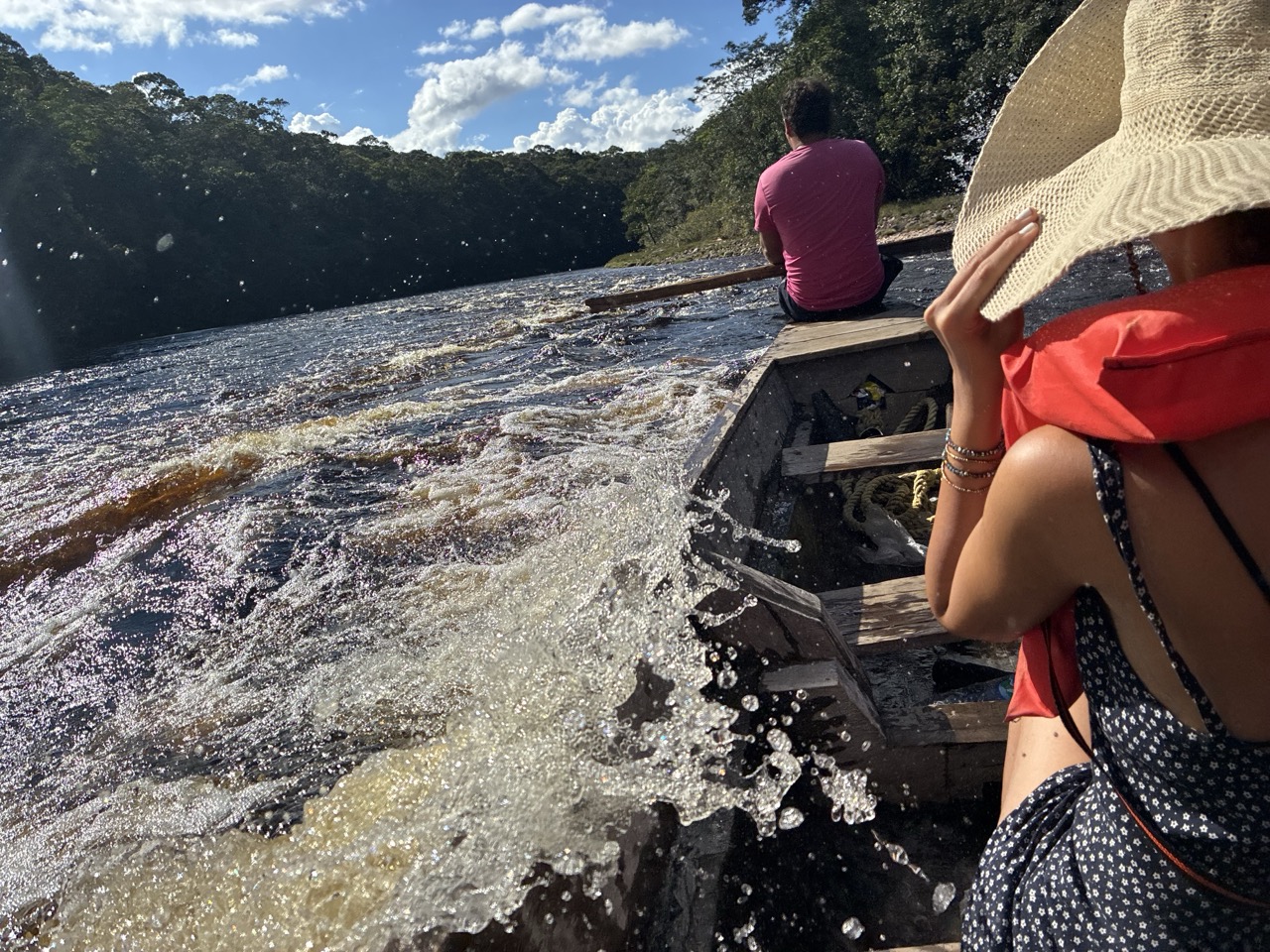The Rio Carrao was a nice wide river and the little Yamaha 40 motors made good time for the first half an hour. We pulled into a small village and disembarked because there was a series of rapids and they wanted us out to take the boat through them. Turned out to be a kilometre walk via a local handcraft shop and past a church and a school. This was the longest of several walk arounds we had to do. There were also a few sets of rapids that we took on fully loaded. At one stop they said fat people in the back. Skinny people in the front because it was fast water and the needed the boat balanced. I was sat in the back row! I was a bit surprised at some of the rough water we went through. And how much of it I wore. Ha. If only I had known what was yet to come.