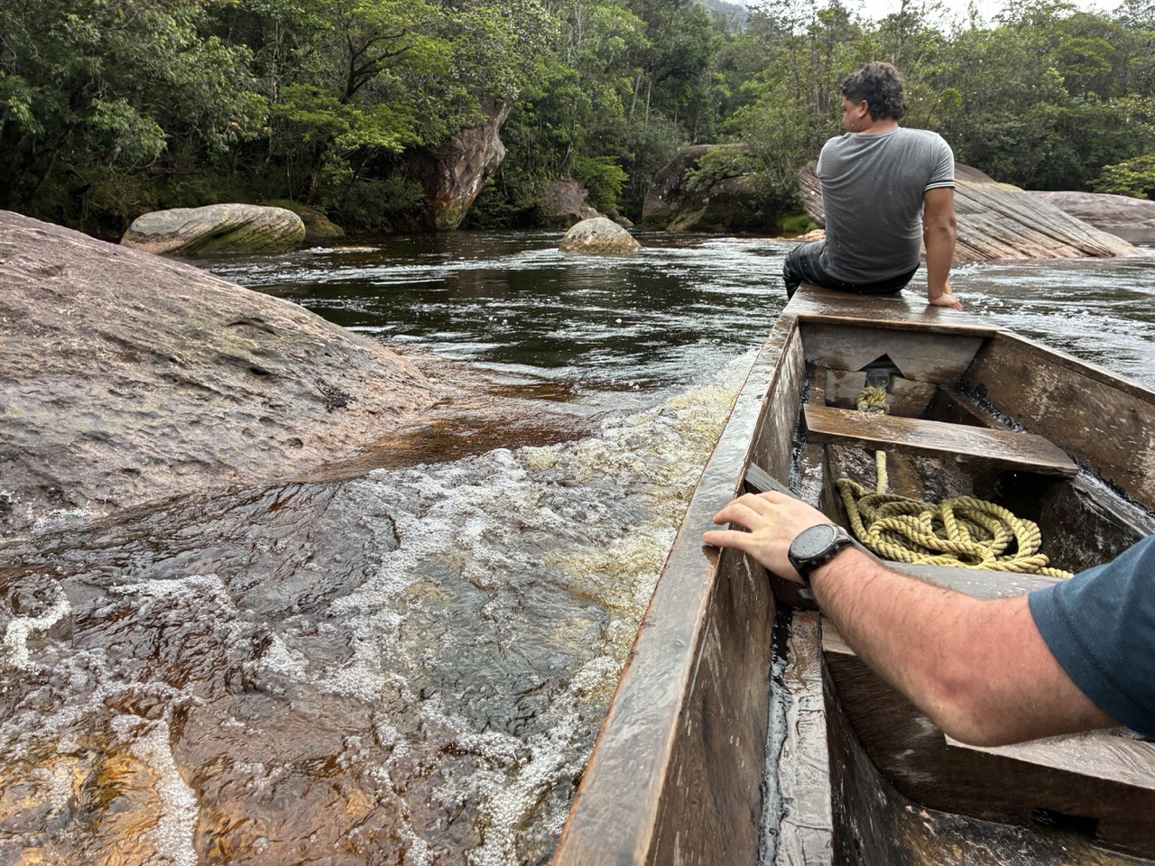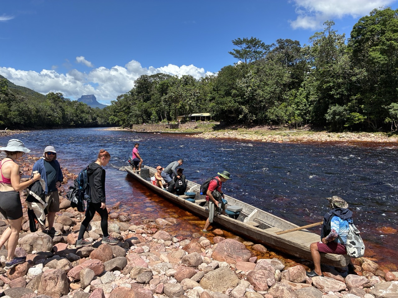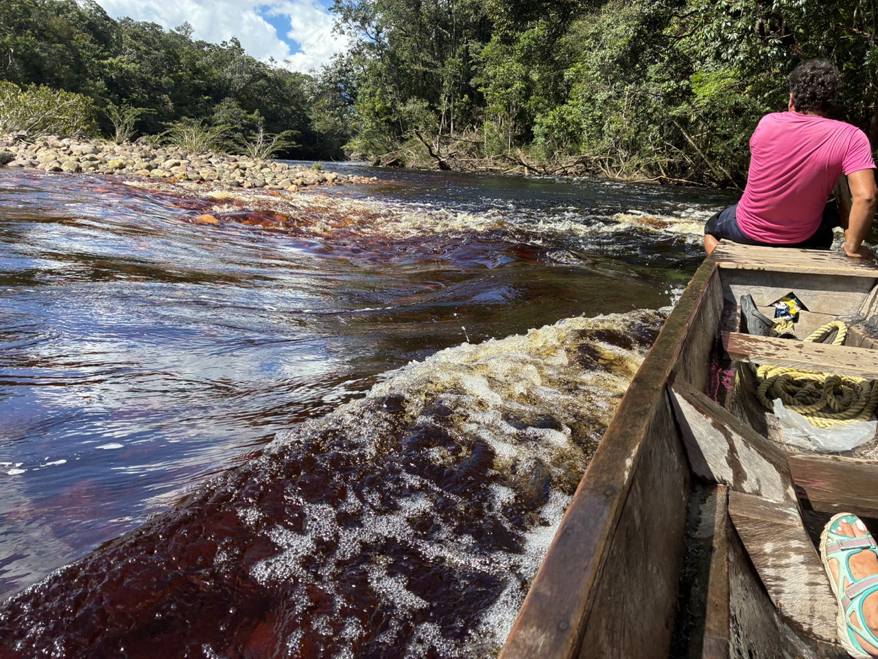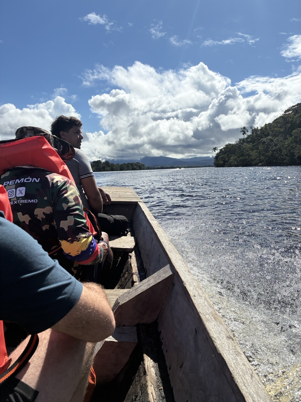 The Rio Carrao was a nice wide river and the little Yamaha 40 motors made good time for the first half an hour. We pulled into a small village and disembarked because there was a series of rapids and they wanted us out to take the boat through them. Turned out to be a kilometre walk via a local handcraft shop and past a church and a school. This was the longest of several walk arounds we had to do. There were also a few sets of rapids that we took on fully loaded. At one stop they said fat people in the back. Skinny people in the front because it was fast water and the needed the boat balanced. I was sat in the back row! I was a bit surprised at some of the rough water we went through. And how much of it I wore. Ha. If only I had known what was yet to come.
