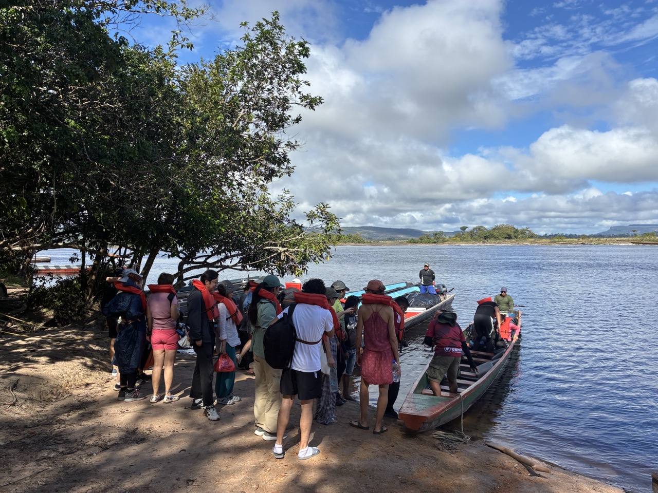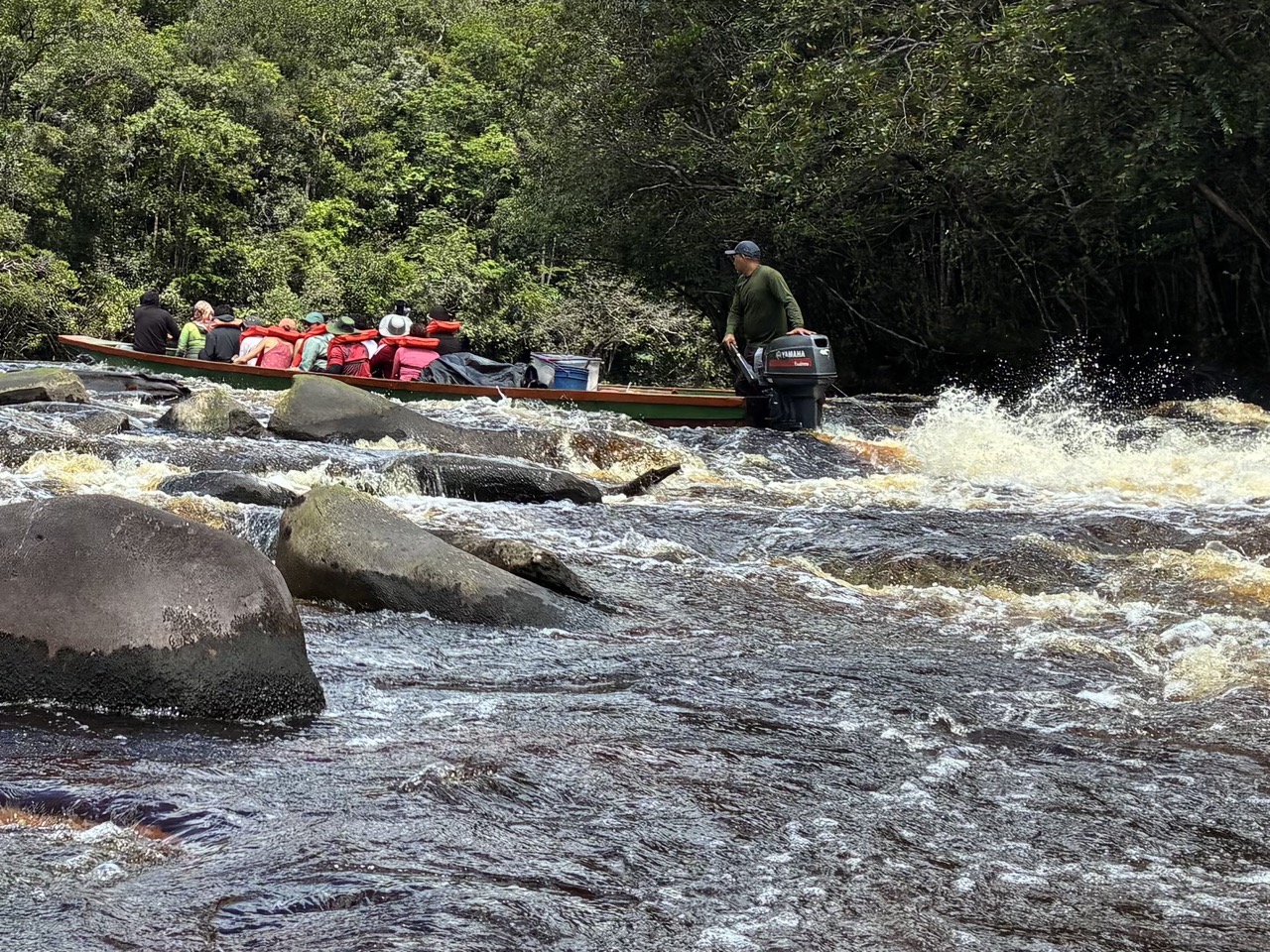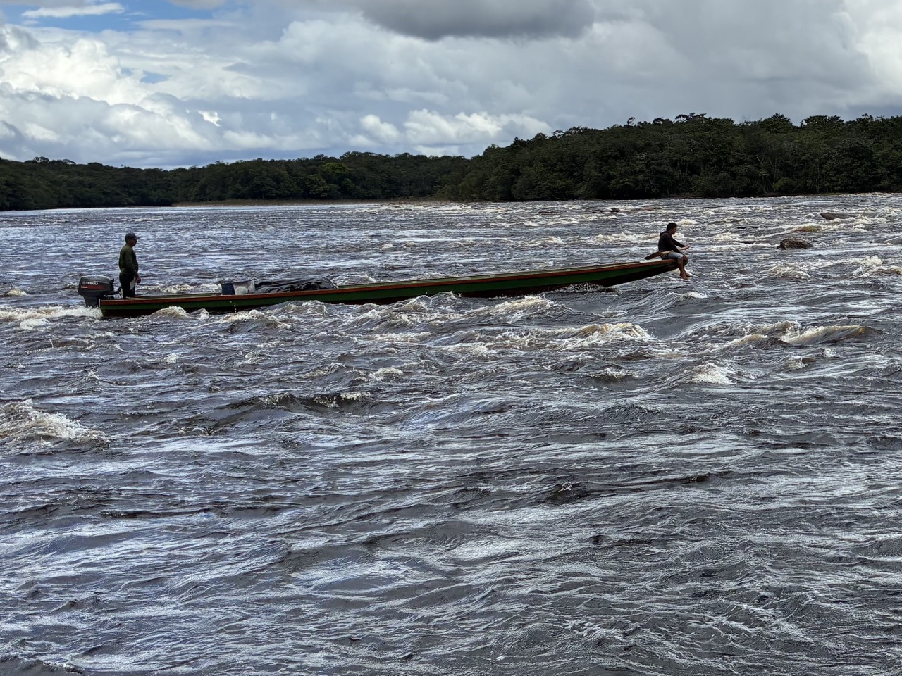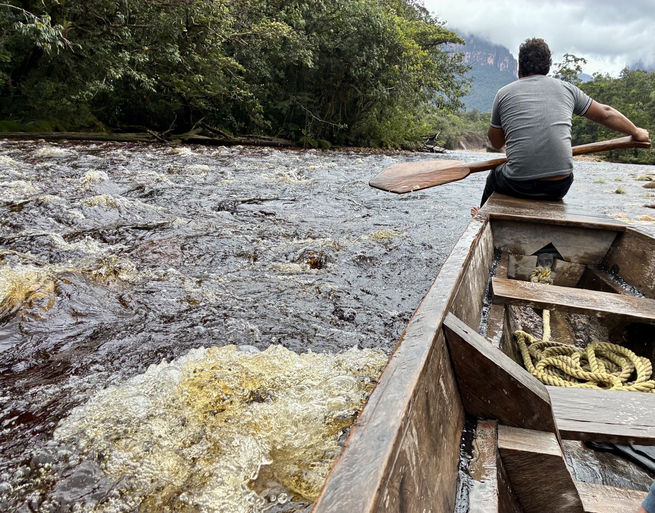 The Rio Carrao was a nice wide river and the little Yamaha 40 motors made good time for the first half an hour. We pulled into a small village and disembarked because there was a series of rapids and they wanted us out to take the boat through them. Turned out to be a kilometre walk via a local handcraft shop and past a church and a school. This was the longest of several walk arounds we had to do. There were also a few sets of rapids that we took on fully loaded. At one stop they said fat people in the back. Skinny people in the front because it was fast water and the needed the boat balanced. I was sat in the back row! I was a bit surprised at some of the rough water we went through. And how much of it I wore. Ha. If only I had known what was yet to come.