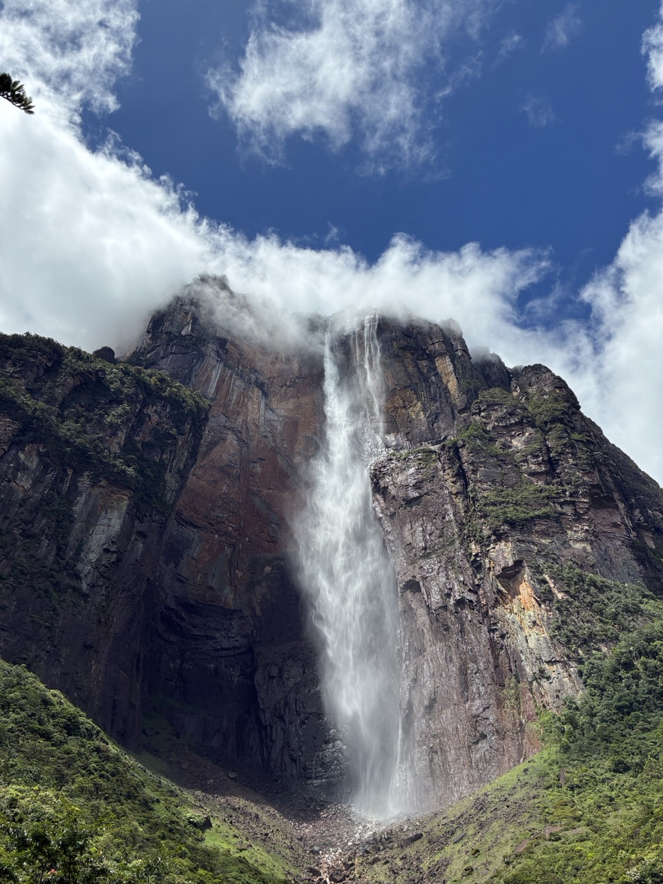 Up on top of Auyantepui (table top mountain) you could see Angels Falls. It was about 2kms away and to be honest it was so high that it was hard to get it into perspective. It is the highest waterfall in the world. It is 979 metres. But. I think it’s only 807 metres because that’s the distance of uninterrupted fall. The water starts at the top as water but less than halfway down it just becomes falling mist. It lands on some rocks and becomes water again and then heads over a more traditional looking waterfall into a pool and then resumes its journey as a river. And joins the one that I arrived on.