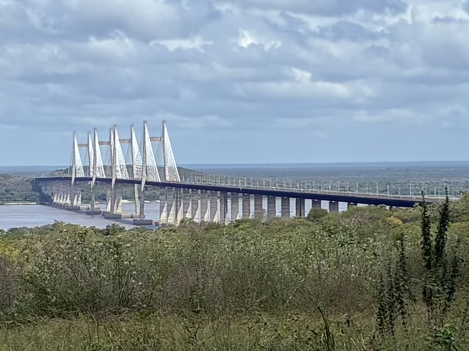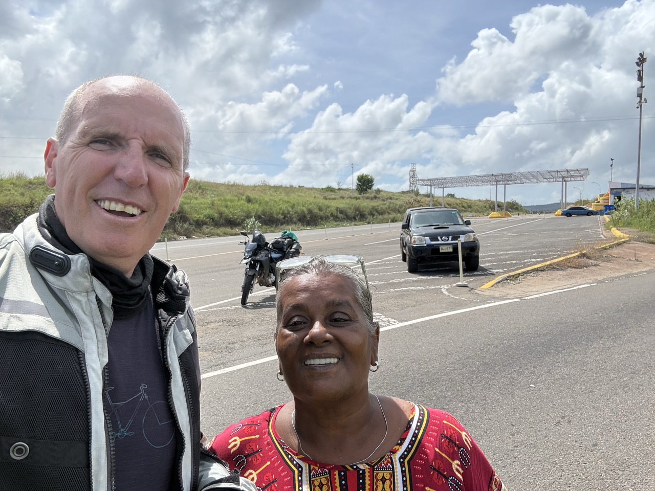So I was thinking about this as I rode the 10 kilometres past factories and industrial complexes that almost look abandoned. I also forgot to mention that Porrto Ordaz also have a huge hydro electric plant nearby which have also deteriorated for the same reasons as above and now they have power outages and poor water supply. Okay. Enough sad stuff. There are only two bridges that cross the Orinoco River. I had to cross one of them and stopped for a photo. Another lady also stopped. She is dutch but was born and now lives, back in Guyana. She had packed up her car and her 2 dogs and was off on an adventure exploring South America. How cool.