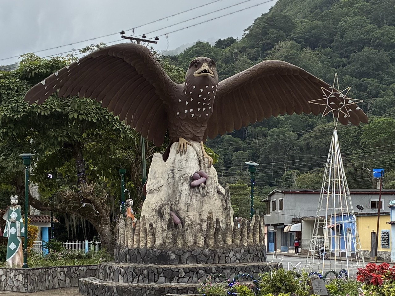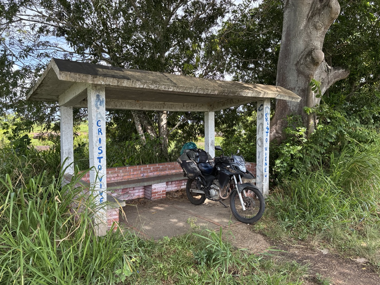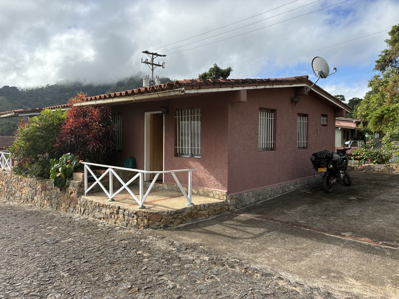 I think that I also forgot to mention that there is a song by Enya about the Orinoco River. Not that I am a music buff, but I know, and like the song. Orinoco Flow, which is sometimes called, Sail Away, Sail Away, Sail Away. And the bridge looks like it has sails. It’s a cool bridge for its age and like many things was built when the country was rich. The first section of road was familiar to me as I had gone this way on my car trip to the Orinoco Delta. My plan was to reach the town of Caripe which was 330kms away. It was threatening rain all day and I eventually found a nice little shelter and put on my rain gear. In the end I didn’t need it and arrived in town before dark. I had been recommended Pueblo Pequeno which had nice little cabins, and I could pay by credit card. I don’t have much cash left. And the owner spoke good english.