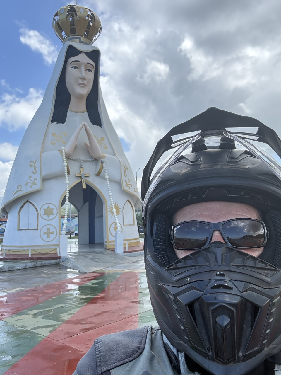 I was met there by the owners daughter who also spoke good english and wasn’t afraid to use it. She was lovely but after an hour I had to politely run away. It had been my first day on the bike for about 10 days and I was tired. Next morning I left early and hoped to make it to the coast. I needed fuel and it was available but there was a reasonable queue. I parked up opposite the Guacharo statue and then walked up the fuel pump just to clarify I could buy fuel. All good and he said I could come to the front of the line which was nice. I’m sure they would be nice to all the old Aussie bike riders that get fuel there. No one in the line seemed to care.