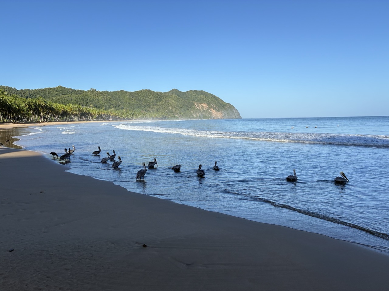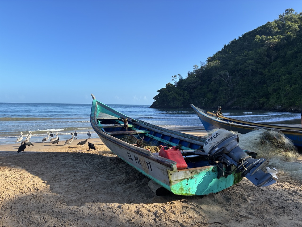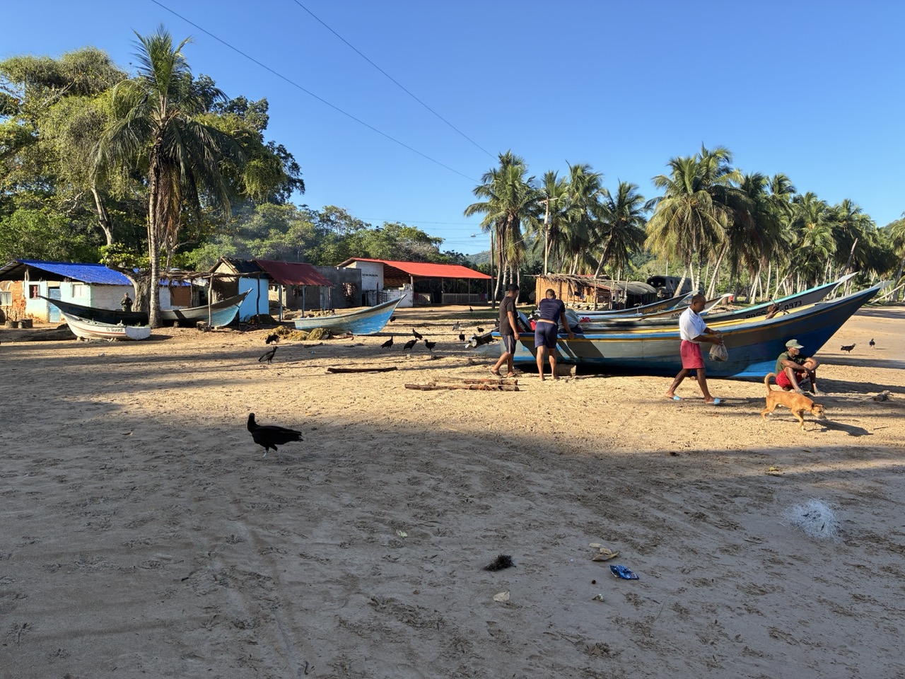 It was a small fishing village with no road and a sickly looking purple lagoon which I would hope was flushed out with big rains. There were several active fishing boats on the beach, along with a group of pelicans and another group of vultures. They were all well fed when the boats came in each morning.