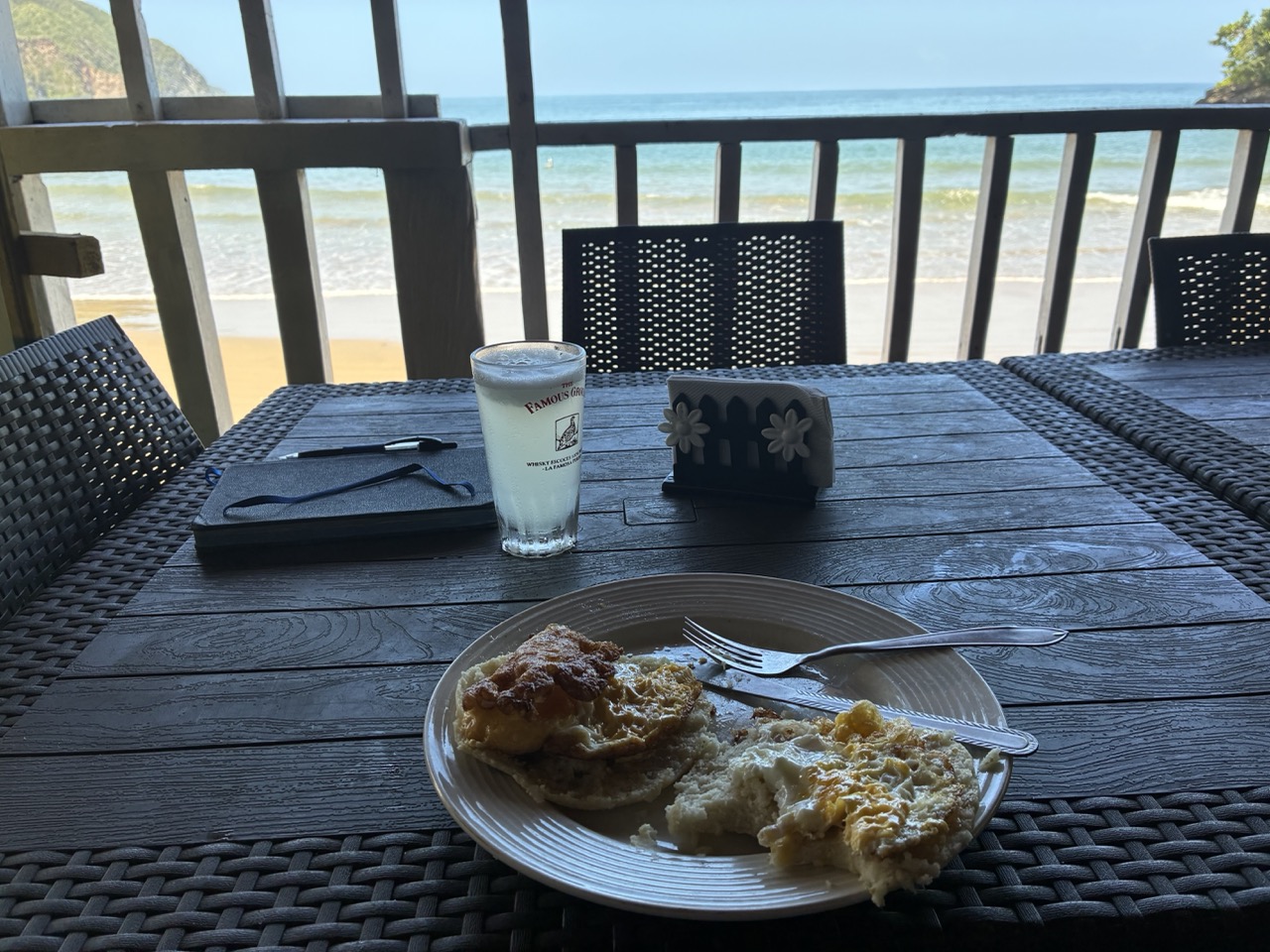 It turned out to be nice. Everything was run down and below par but acceptable. It was $15USD a night or $20USD for the deluxe room which had a beachfront balcony. This was the sort of place that I was holding on to my cash for. No cards. Sometimes no electricity or internet but a beautiful view. No Beer but freshly cooked fish for dinner and fresh limonadas. I also had an egg breakfast and he found me a two litre bottle of coke. I couldn’t buy any water but he gave me a couple of litres of boiled water each day. All up I spent $80USD for everything which was a good deal.