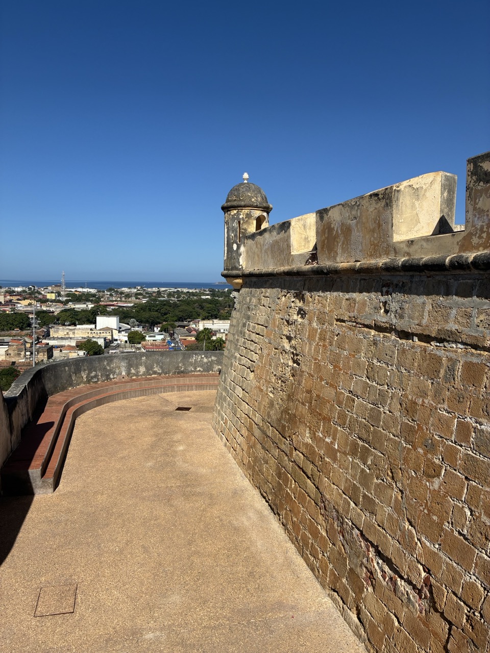After I had my ticket I wandered into town, through a market where I bought a cold coconut and then found an old castle and a church and a hill. And it was warm. I found myself back at the big shopping centre looking for a cap. They had a couple that would have been just okay but they were more expensive than Australian prices so I declined. That night I found a nice pizza place on google and went there for dinner. It was way too much for me but I took the rest of the pizza and the litre of pepsi with me and thought I’d find a homeless person on the street to give it to and then realised that you don’t see many homeless people in Venezuela. But the night security guard at the hotel was very happy to have it.