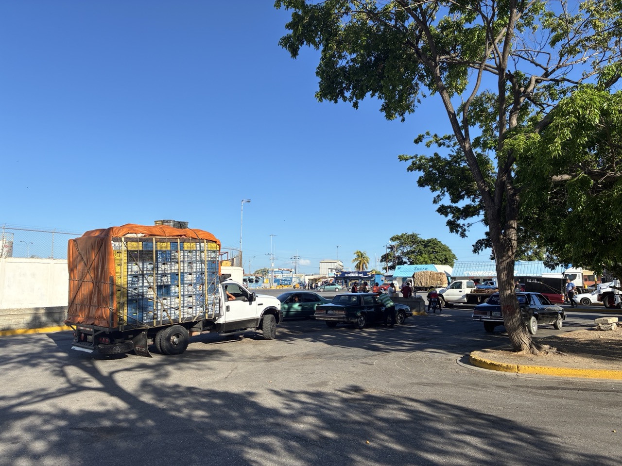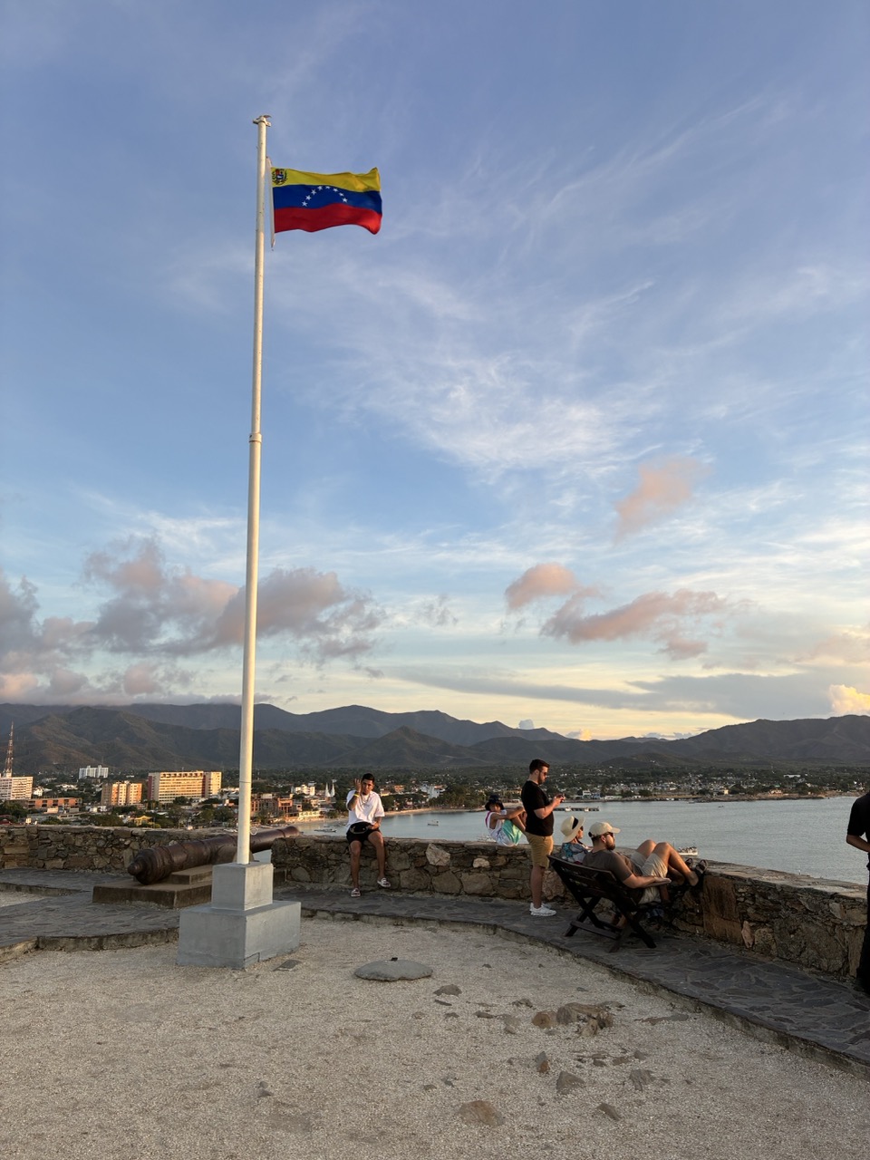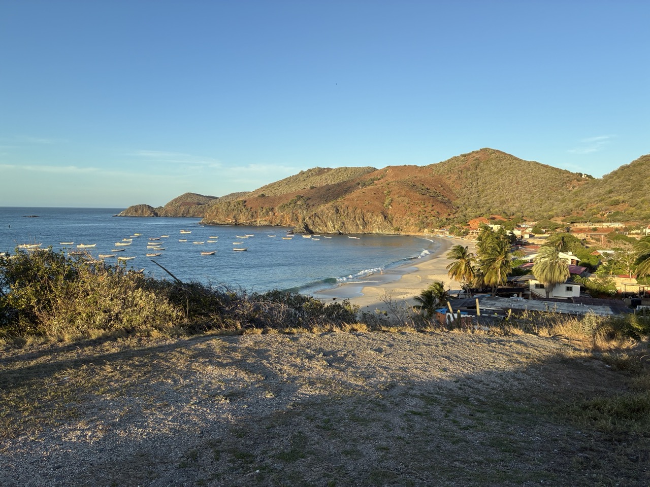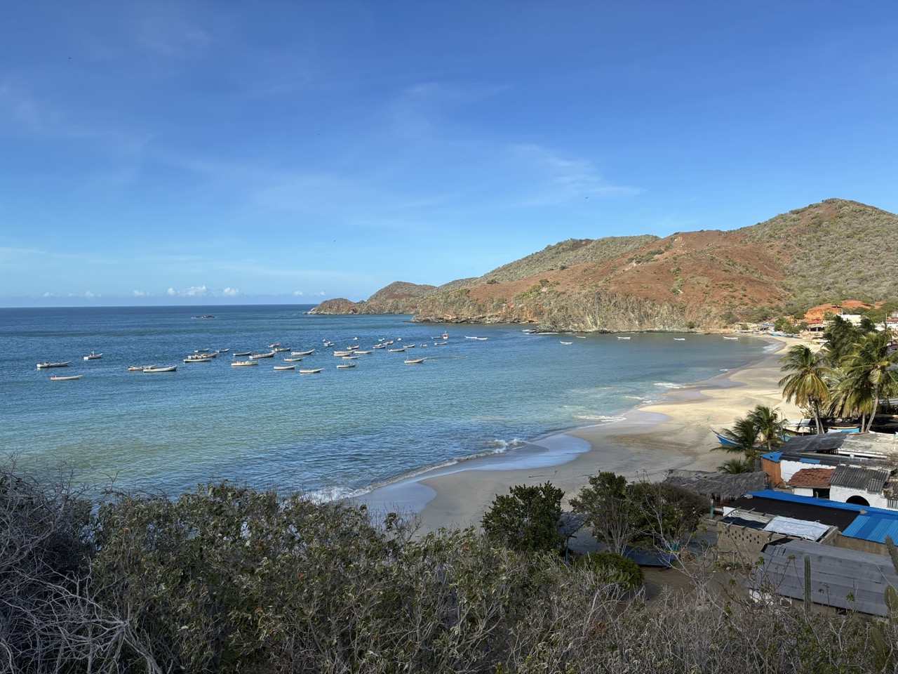 The ferry was very nice. I paid the base rate for the open covered seat area upstairs. I could have paid a bit more for aircon and fancier seat on the lower deck. My row of seats upstairs was perfect for me. The ferry left on time after momentarily putting the ramp down again to throw off two stowaway street dogs that had snuck on. The ride was nice and took about 3 hours. We passed a couple of bits of land which were a mix of mainland and islands. All part of Venezuela. It reminded me of the Greek Islands. But also of my time working in the Caribbean, strangely enough.