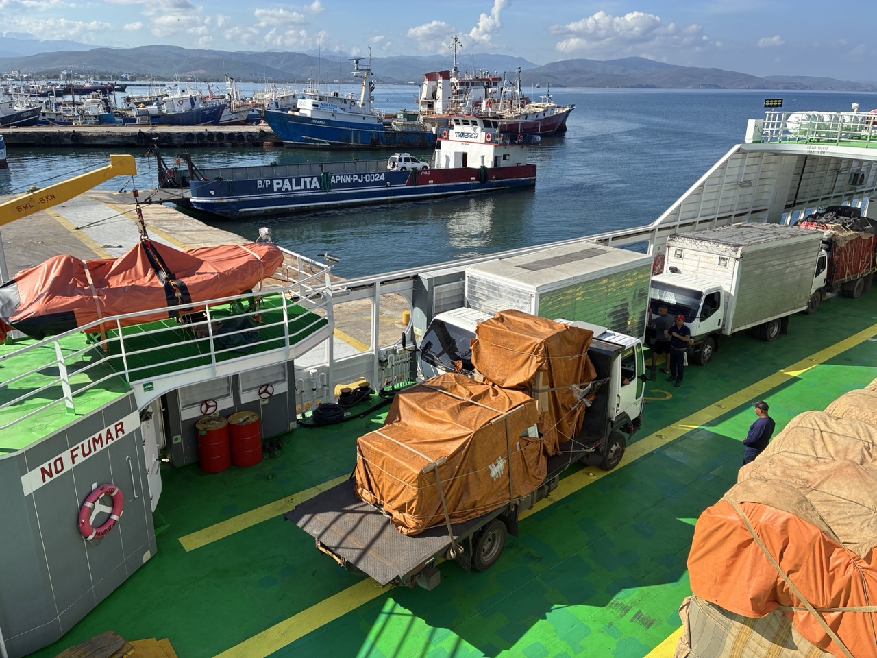 It had cost me nearly $200AUD for a return ticket for me and the bike from Cumana to Isla de Margarita. I got a senior’s discount, but the bike is young and it paid full price. It seemed a lot of money to go to a place which I didn’t really have much desire to go to. But people said it was great and I’ll probably never be around this way again. I rode the short distance to the terminal and despite having my ticket already, I was shunted around a bit to get more little tickets and get them stamped. This was all done to music as there was a truck driving around in the car park with huge speakers and a couple of generators. They don’t advertise anything. I don’t get it. It must be just a competition to see who has the biggest one.