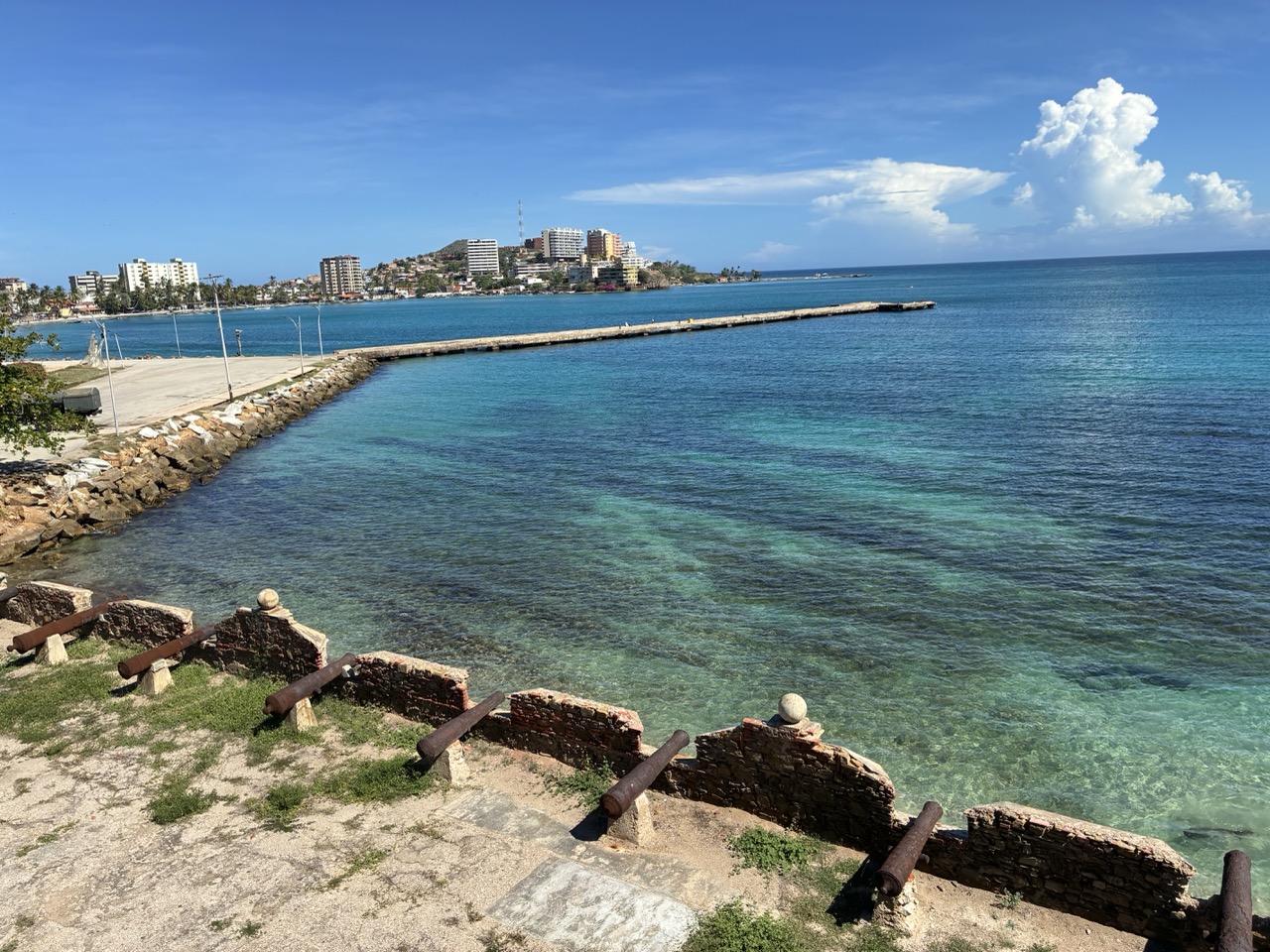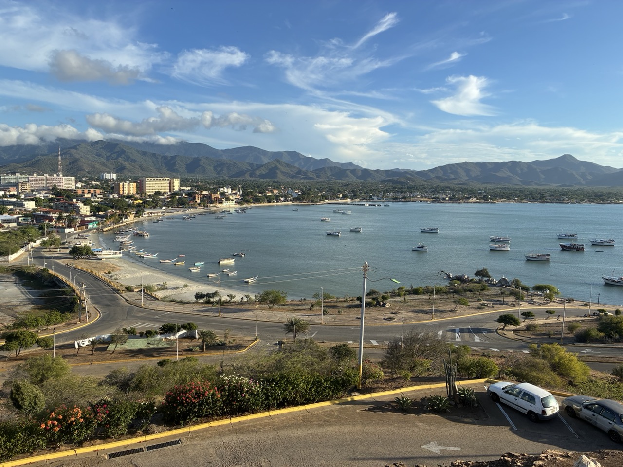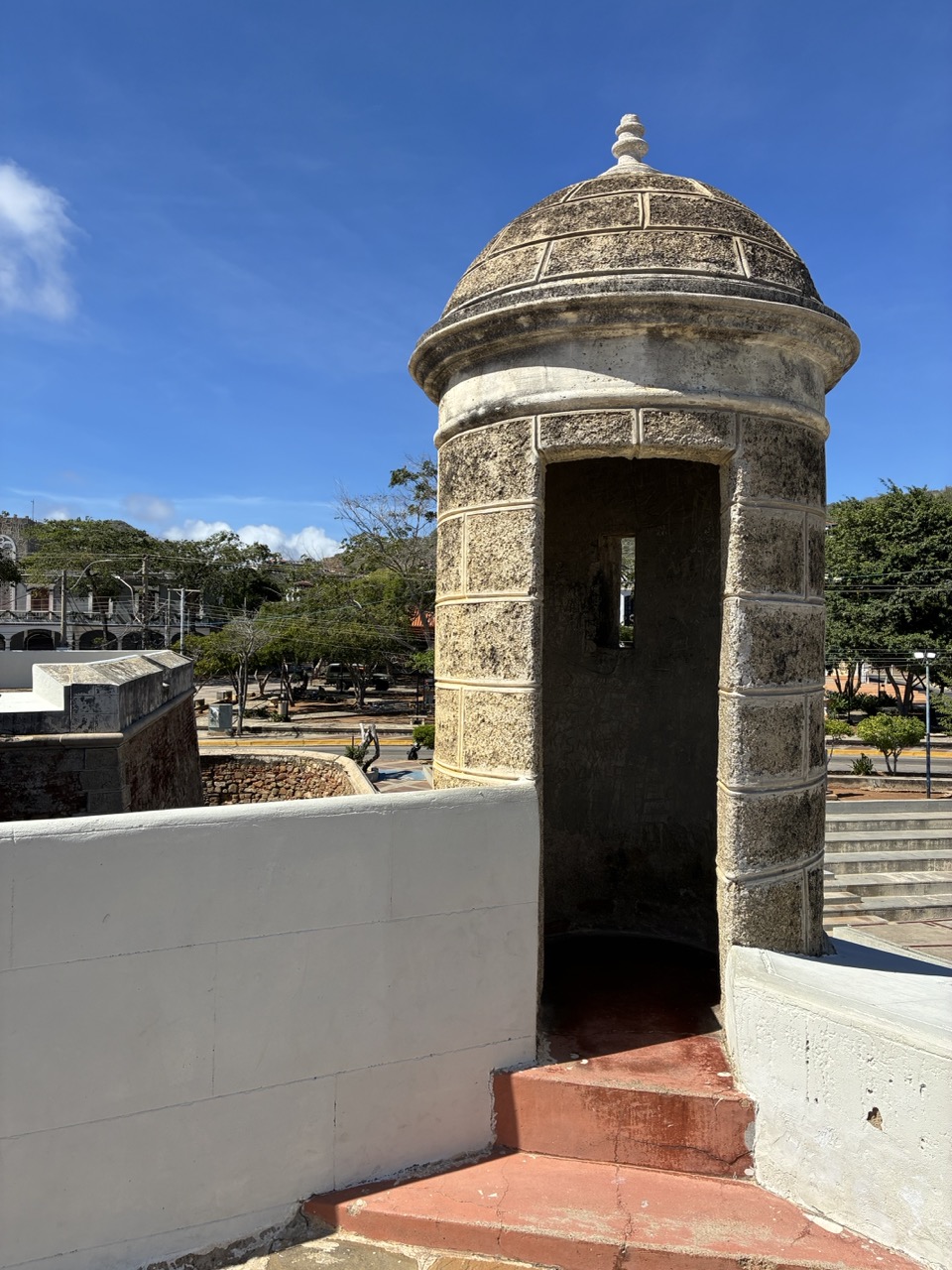 I had been given the name of a local guy via the WhatsApp group and I was a bit reluctant because it can be hard work being shown around by a person who only speaks Spanish. But I sent him a brief message with a question about any highlights to see and he got back to me and it turned out he was pretty fluent in English. He suggested a castle on the hill to the north of the island which I went to. It was totally crowded with all types of people in different government and military uniforms. It was some sort of event. With loud music. It was interesting but too crowded and noisy so I headed home the long way around the island.