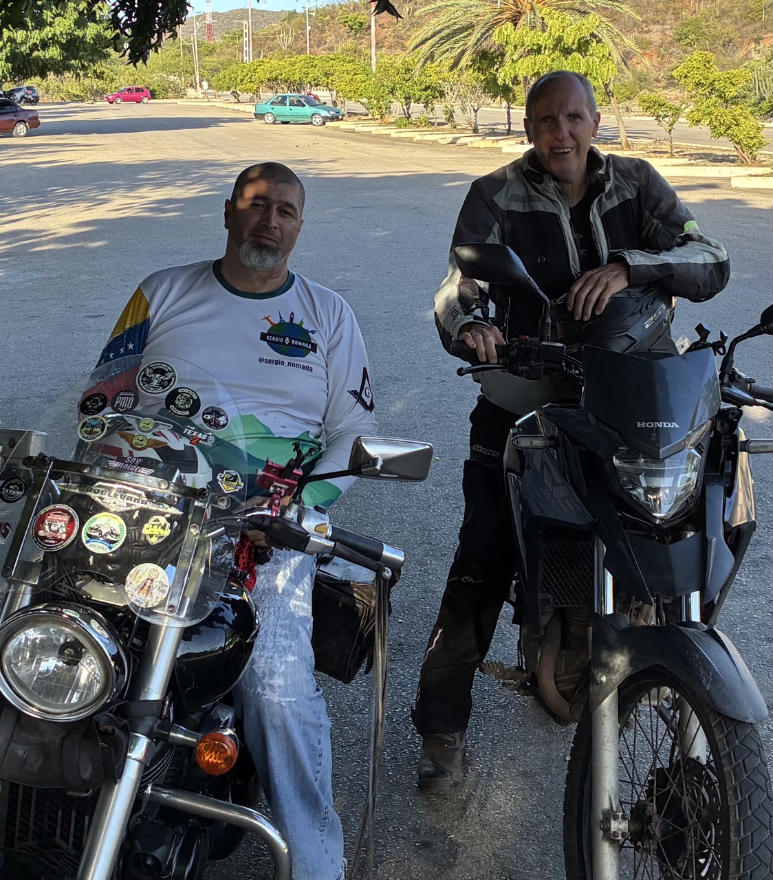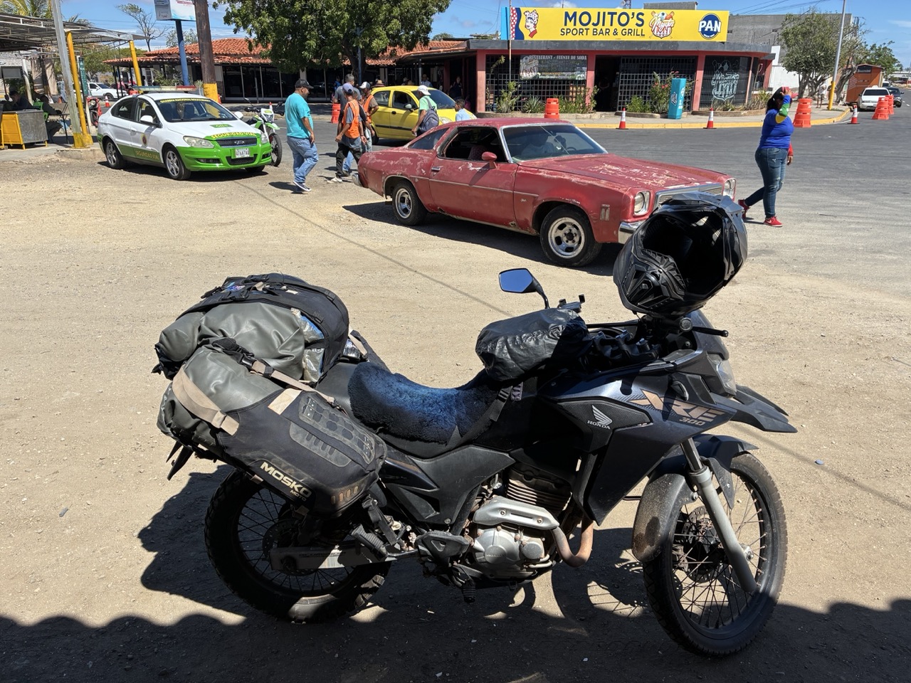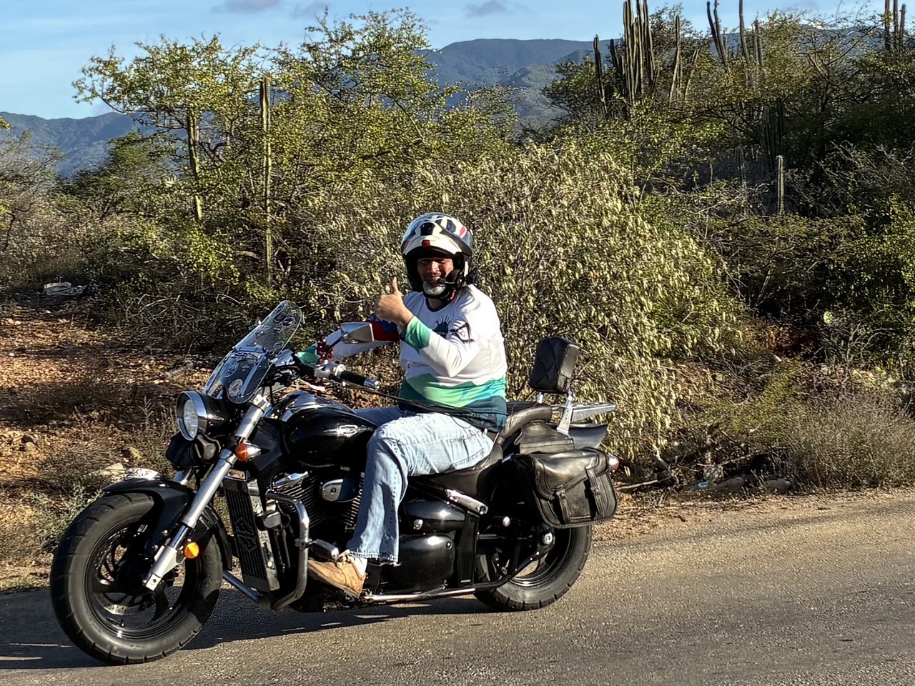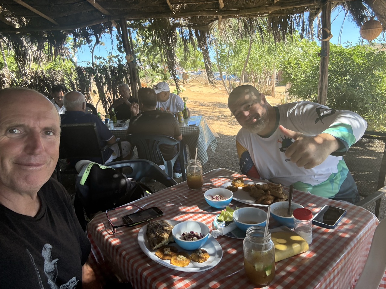 Next day I had planned to meet up with the local guy. I met him in the town of Porlamar which was a 20 minute ride from my place. He was great. His bike was at the mechanics and so he borrowed a mates big Harley looking thing. He looked the part. He took me to a nearby fish restaurant. It was once an unknown fish shack right on the ocean, in front of an old abandoned building, but it was becoming more popular, and I’m sure that will change the feel and the prices. We had a nice fish lunch which I happily paid for.