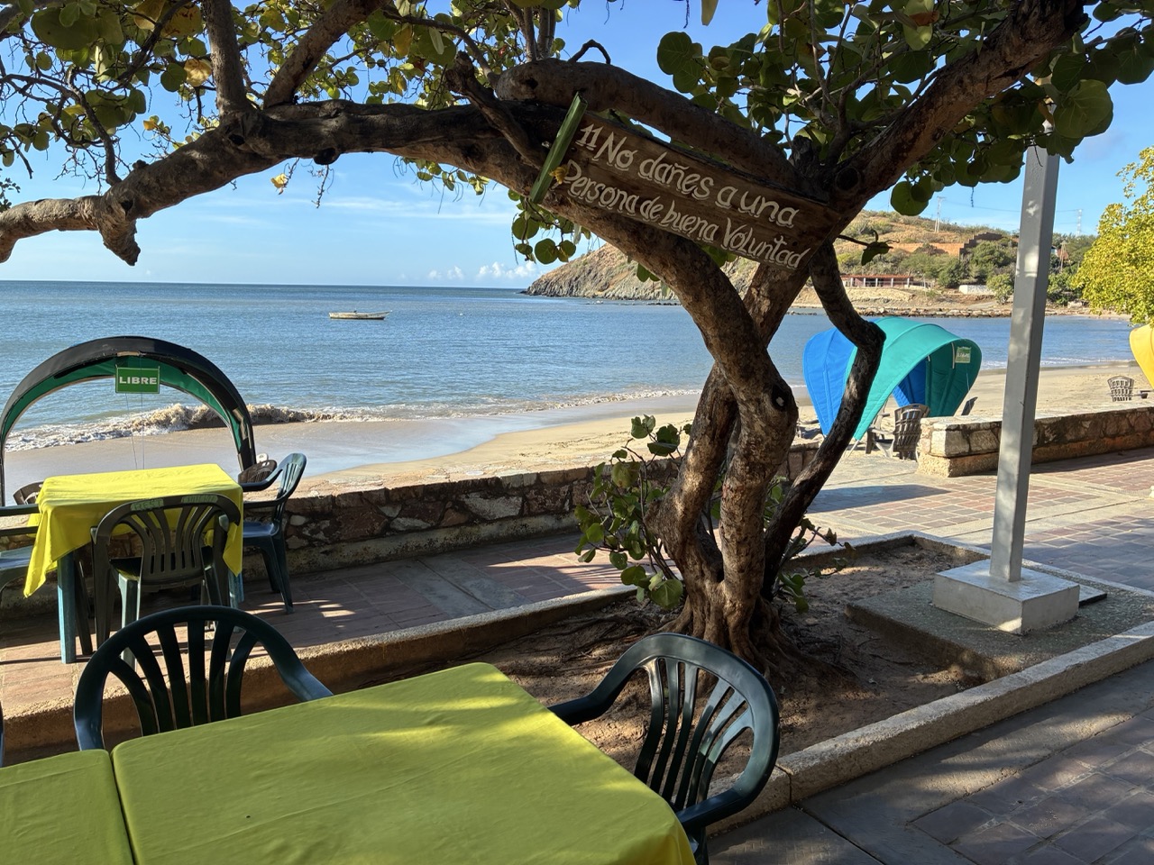When we docked, I had to check into immigration again. I must look dodgy. They were nice and took me inside the office rather than deal with me through the small hole in the window in the front of the building. And aircon. And cold water. After the bureaucracy part which took about 10 minutes, I was free to go. At random I had chosen an area not far from the port which actually turned out to be 25 minutes away. I think I grossly underestimated the size of the island. The place I chose was called El Yaque and I went to a place I thought sounded nice. It wasn’t. Crappy little room with no window and a bunk bed. And they wanted $25USD in cash. That was disappointing. There was another place that was nearby that had looked nice but the reviews said it was hard to pay or to be able to contact the owner.