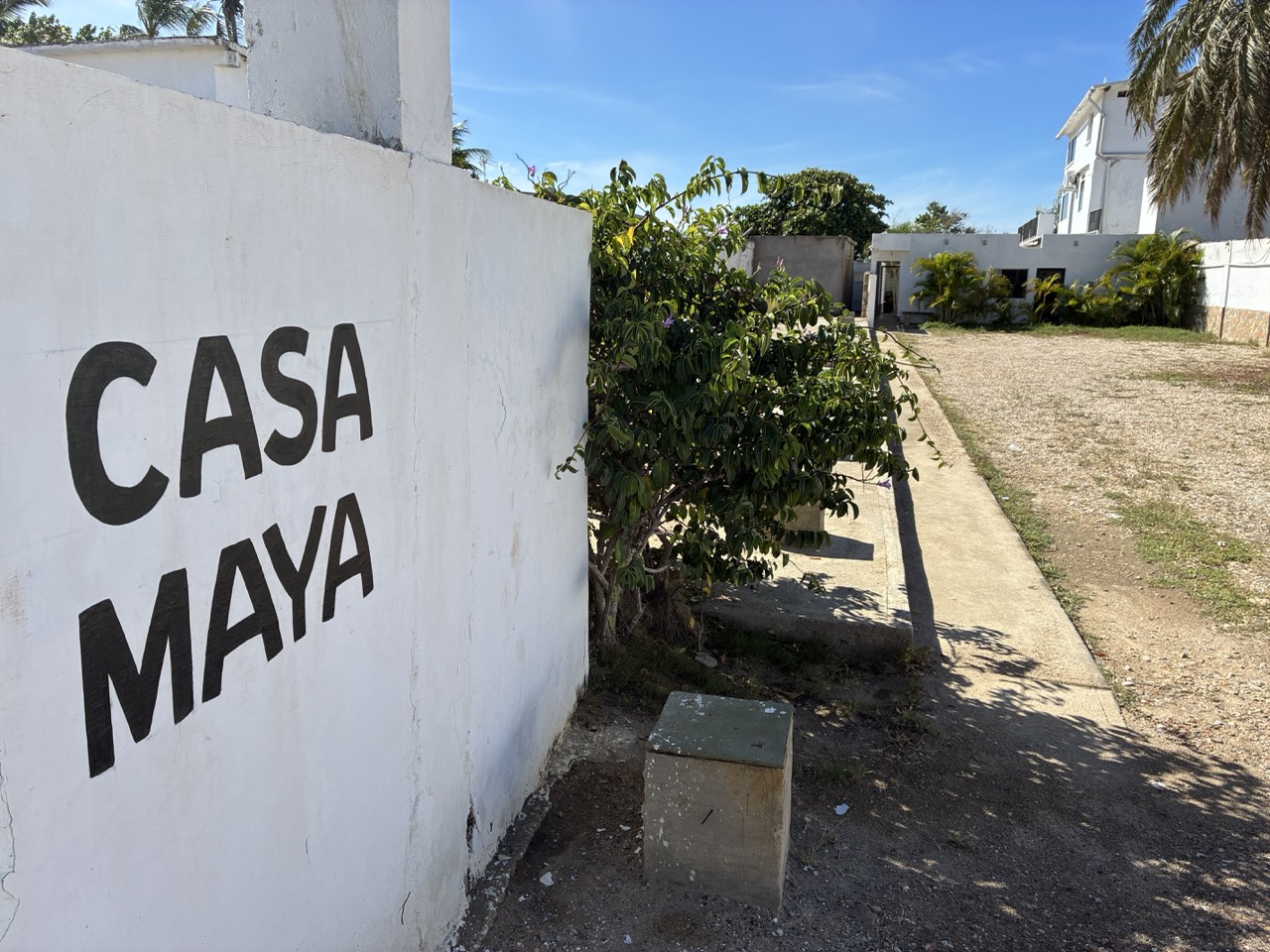 I went there and it was called Casa Maya. Turned out to be a gem. At first they tried to show me a boring room downstairs but booking dot com was offering me an upgrade for $30USD a night. So they said that I had to book it through the app. Which I did and they assured me that I could pay with my card. I made the booking and then I couldn’t pay. Seriously. They seemed calm and said to try another thing. Which also didn’t work. And third time lucky I was able to pay with my card through PayPal for some weird reason. All good with me. The place was right on the beach and at the edge of a small town and had parking for my motorbike after I squeezed through the narrow hallway to get into the back yard.